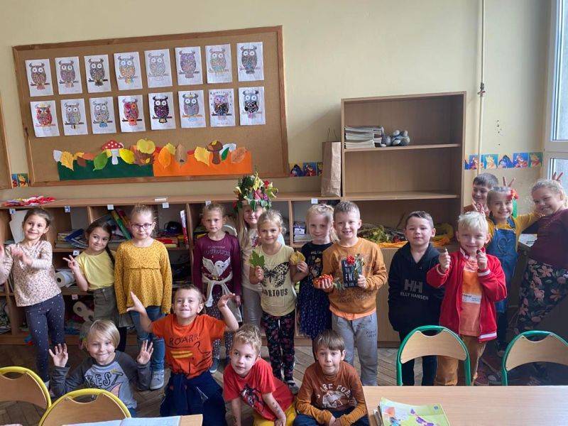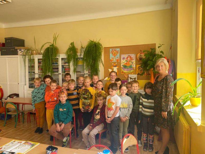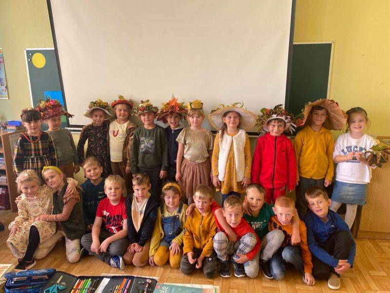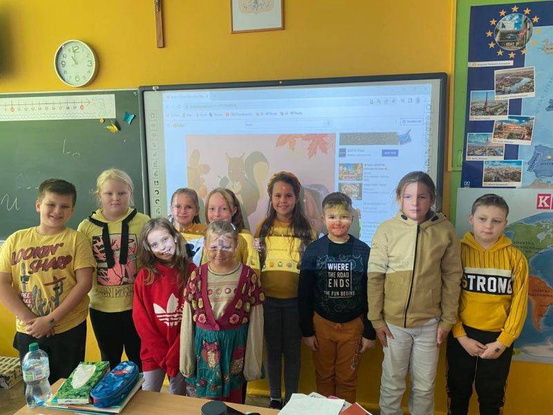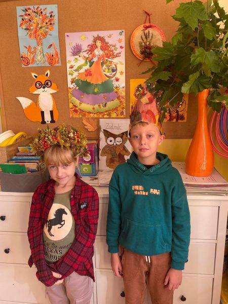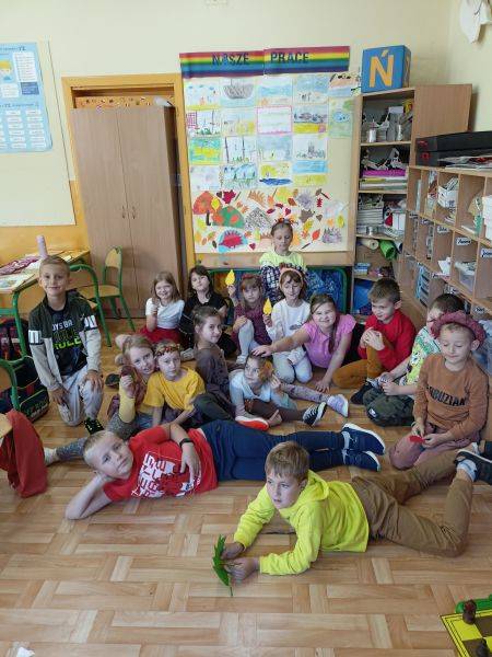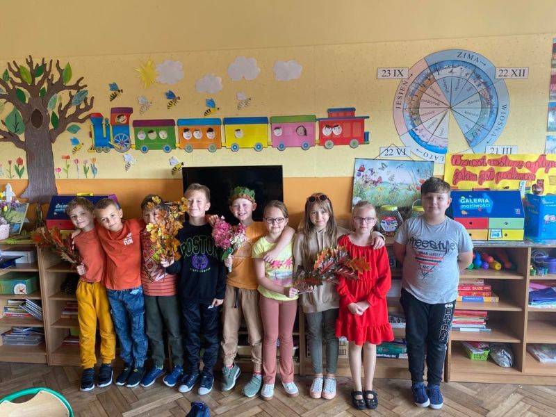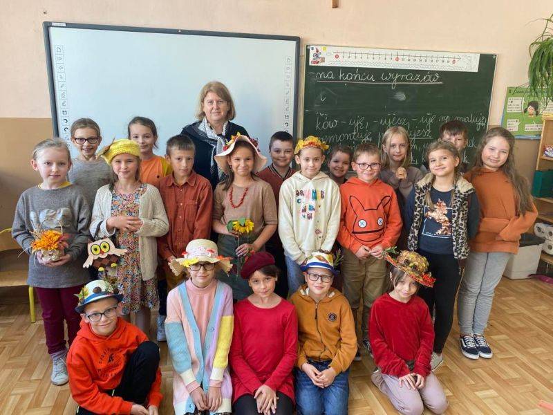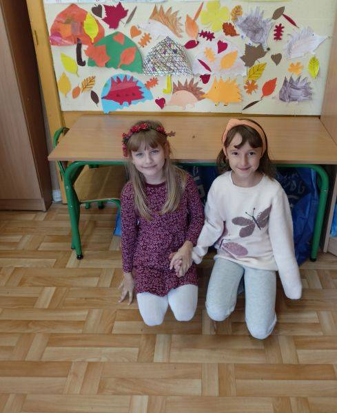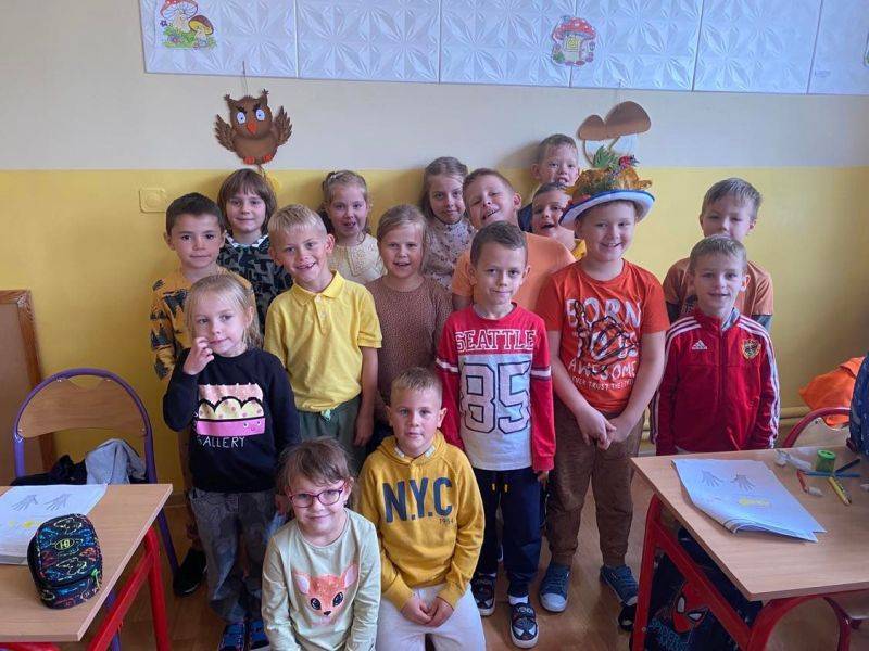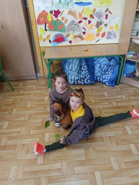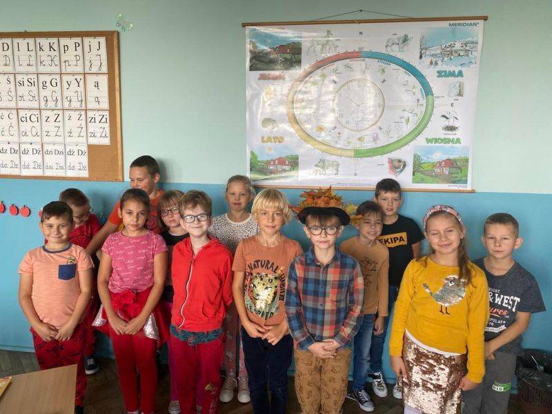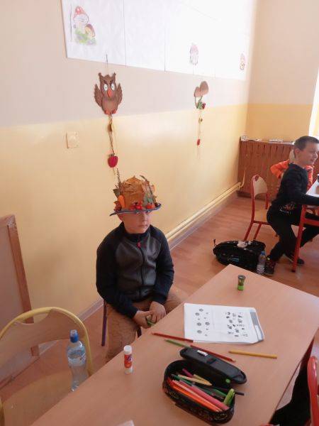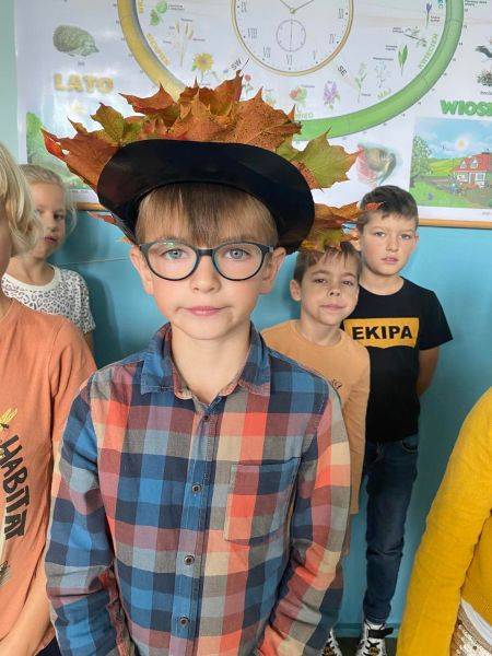 Tego dnia królowały kolory: żółty, złoty, pomarańczowy, czerwony i brązowy. Oprócz strojów w tych barwach uczniowie przygotowali piękne jesienne nakrycia głowy ozdobione, liśćmi, kasztanami, żołędziami i jarzębiną. W klasach powstały jesienne dekoracje.