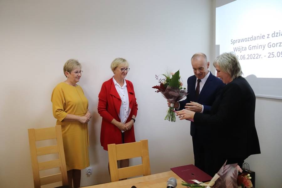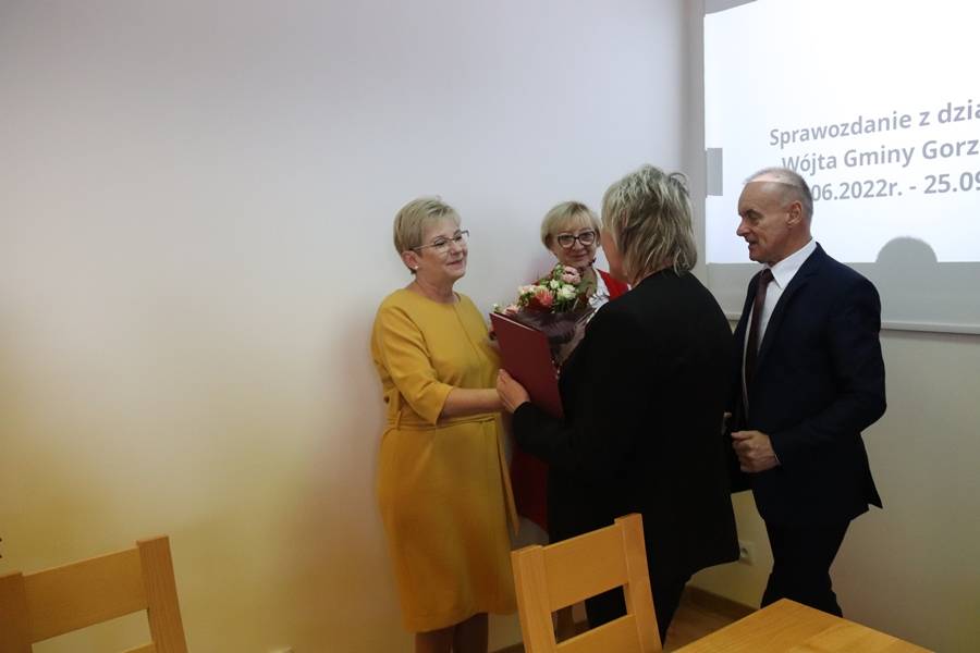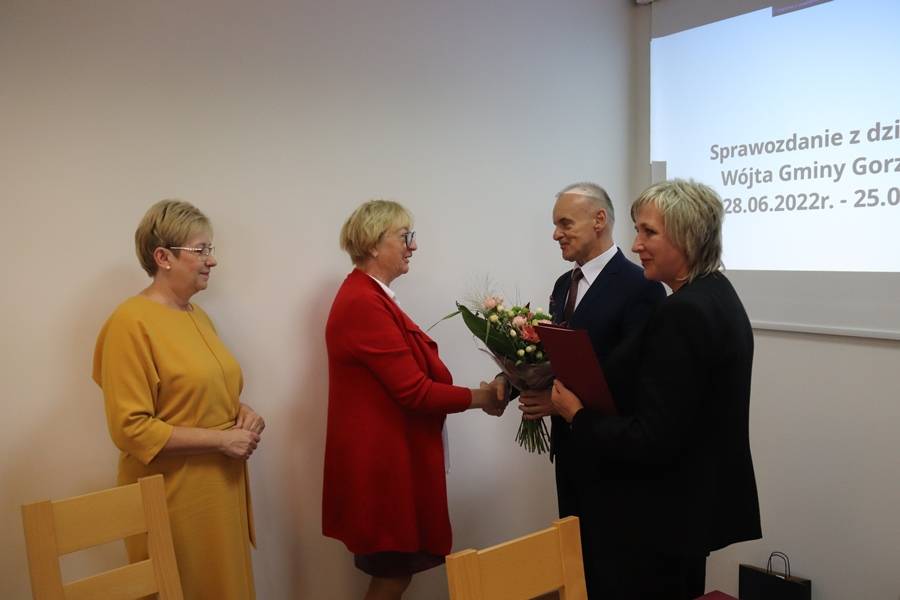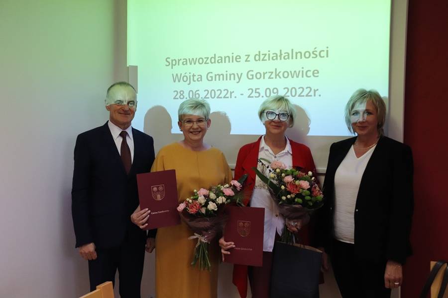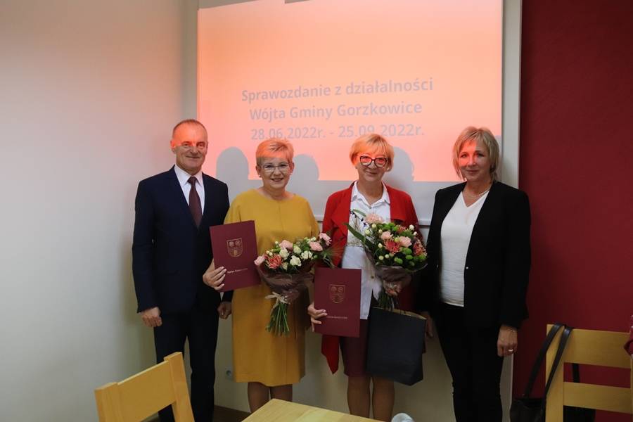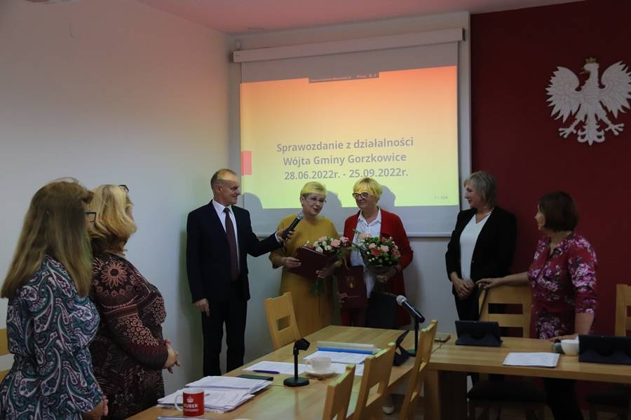 Podczas dzisiejszej sesji wójt gminy Gorzkowice Pan Alojzy Włodarczyk podziękował Pani Halinie Krakowiak za wieloletnią współpracę oraz osiągnięcia w pracy pedagogicznej, wychowawczej i organizacyjnej. Życzenia również otrzymała Pani Emilia Sobczyk, która zakończyła pracę zawodową na stanowisku Dyrektora Szkoły Podstawowej w Gościnnej i odeszła na zasłużoną emeryturę. Życzymy Paniom zdrowia, pomyślności w życiu osobistym i zawodowym oraz wytrwałości w dążeniu do zamierzonych celów i pełnej satysfakcji z podejmowanych działań.