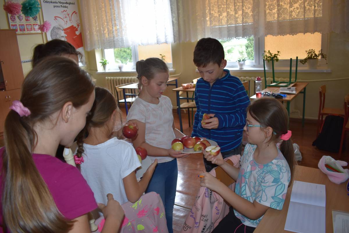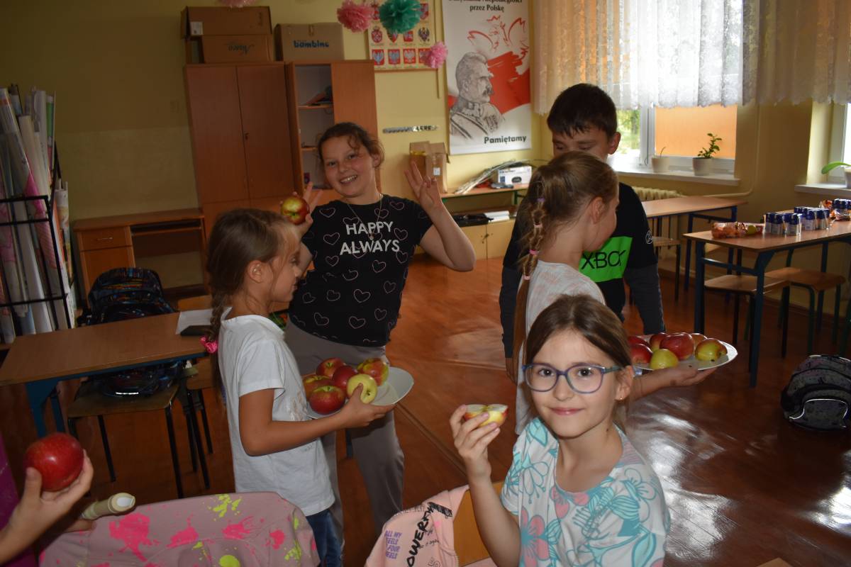 Dnia 28 września 2022 r. obchodziliśmy w SP Krzemieniewice "Światowy Dzień Jabłka". Była to akcja prozdrowotna, której celem było zachęcanie uczniów do spożywania jabłek jako źródło witamin oraz wyrabianie nawyku zdrowego odżywiania.