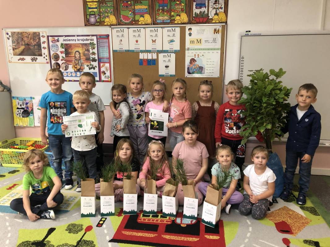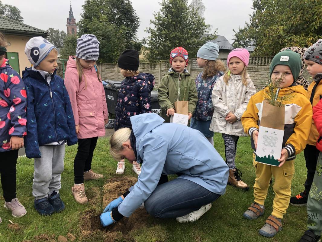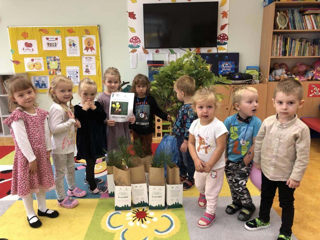 Lasy i drzewa zapewniają nam tlen, oczyszczają powietrze, wpływają korzystnie na klimat i na samopoczucie nas wszystkich. Są domem dla wielu gatunków roślin, grzybów i zwierząt. Dostarczają najbardziej ekologiczny surowiec, drewno, tworzący domy również dla nas. Polscy leśnicy każdego roku sadzą 500 milionów drzew. Mimo, że czasem wysiłek wielu pokoleń niszczą klęski żywiołowe, sadzenie trwa i lasów w Polsce przybywa. Zajmują one już blisko jedną trzecią powierzchni naszego kraju. Drzewa są jednak potrzebne wszędzie tam, gdzie żyjemy i przebywamy, nie tylko w lesie, dlatego nasze przedszkole wzięło udział w ogólnopolskiej akcji #sadziMY z prezydentem, zainicjonowanej przez Prezydenta Rzeczpospolitej Polskiej Andrzeja Dudę i Pierwszą Damę Agatę Kornhauser-Dudę.