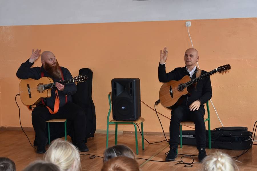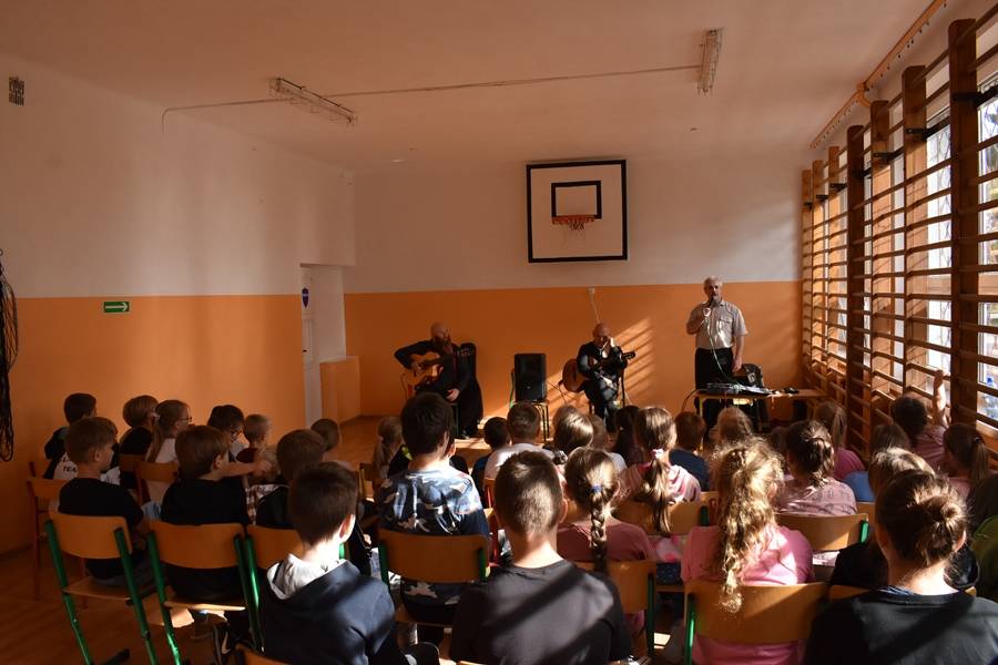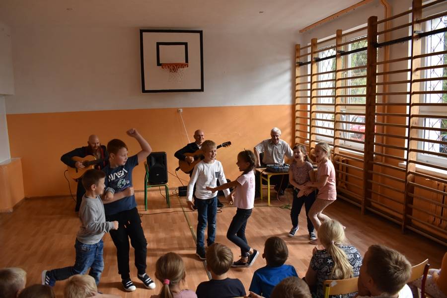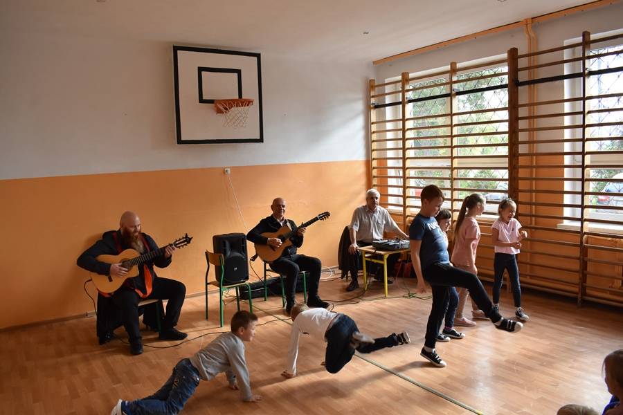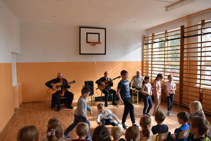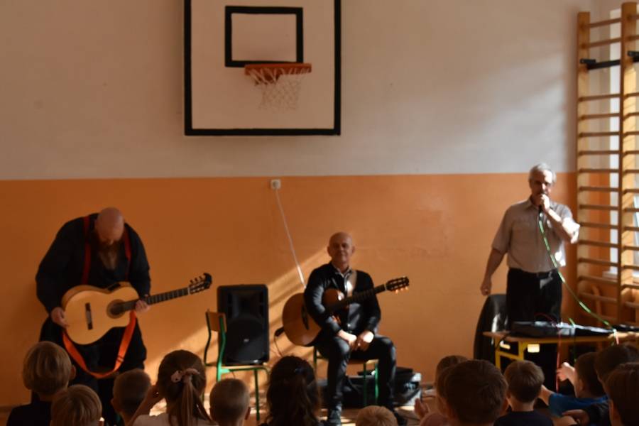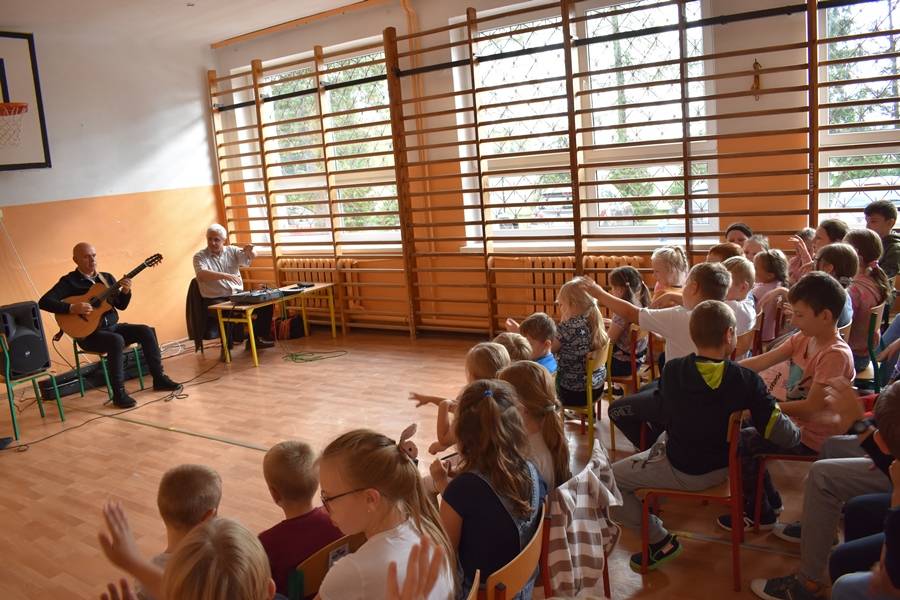 Choć wakacje już się dawno skończyły, to w czwartkowy ranek, 29 września, uczniowie Szkoły Podstawowej w Krzemieniewicach mogli jeszcze, choć na chwilę, przenieść się do ojczyzny corridy i paso doble. Stało się to za sprawą muzyków - Jarosława Czajczyńskiego oraz Michała Izydorczyka, którzy zaprezentowali piękne utwory inspirowane kulturą hiszpańską.