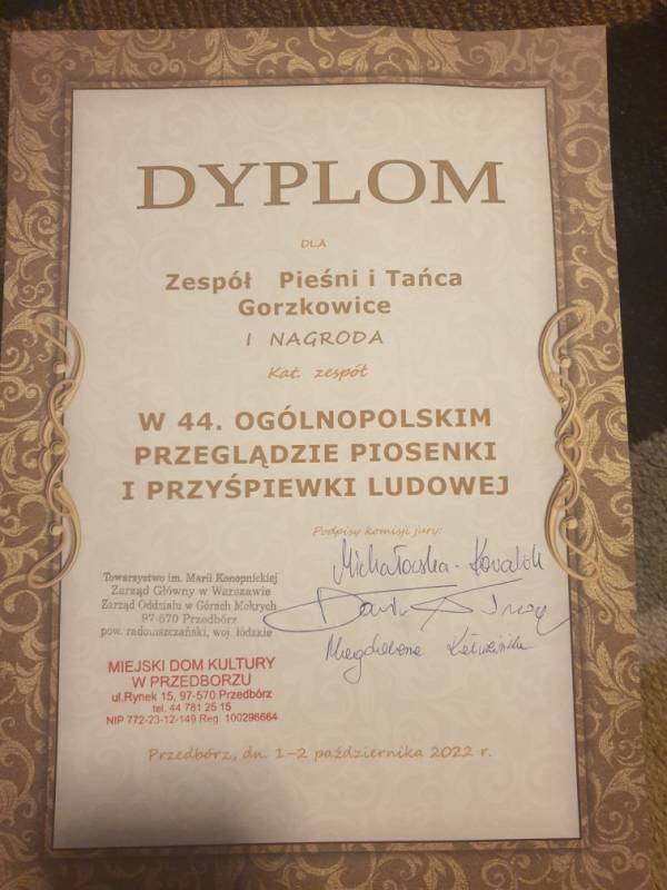 - 1 miejsce na 44 Ogólnopolskim Przeglądzie Piosenki i Przyśpiewki Ludowej - Przedbórz 2022