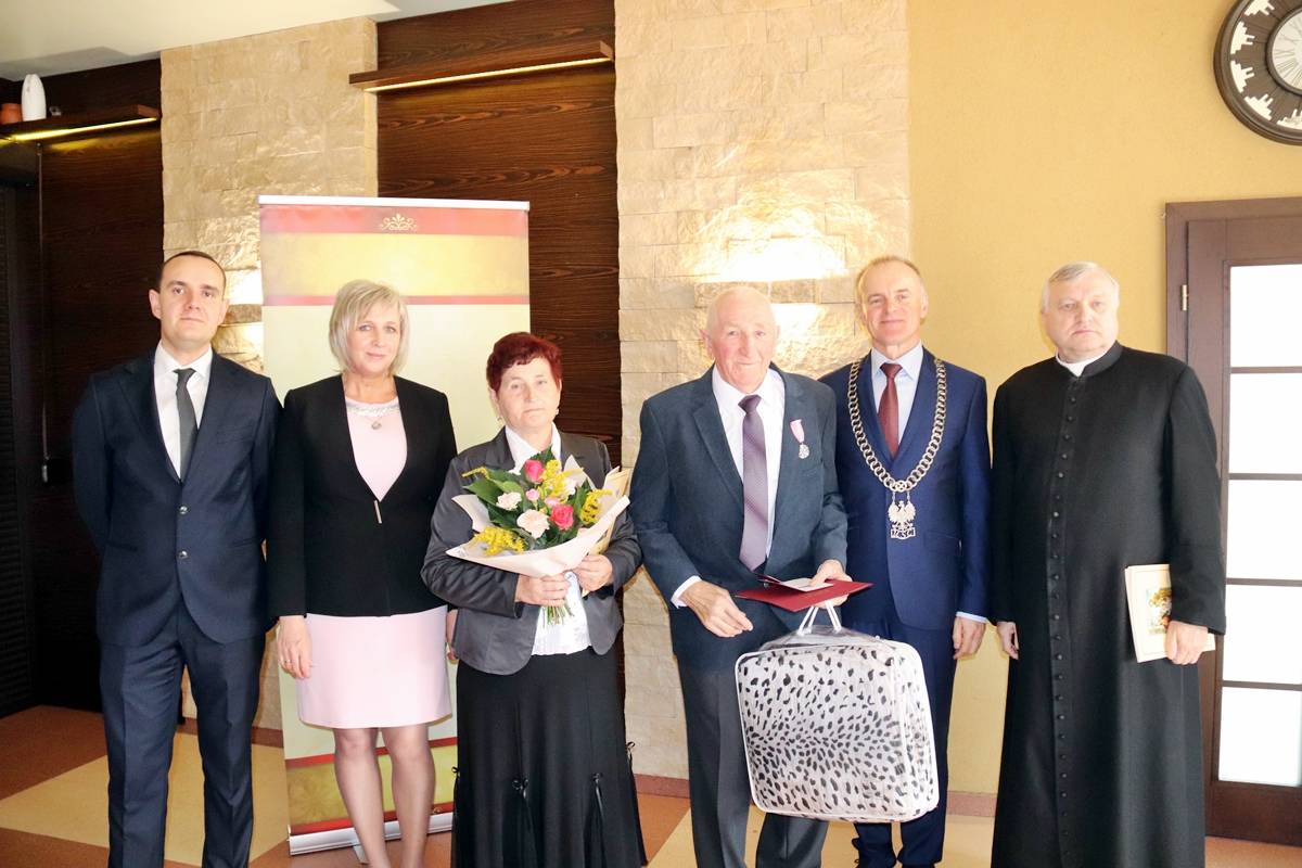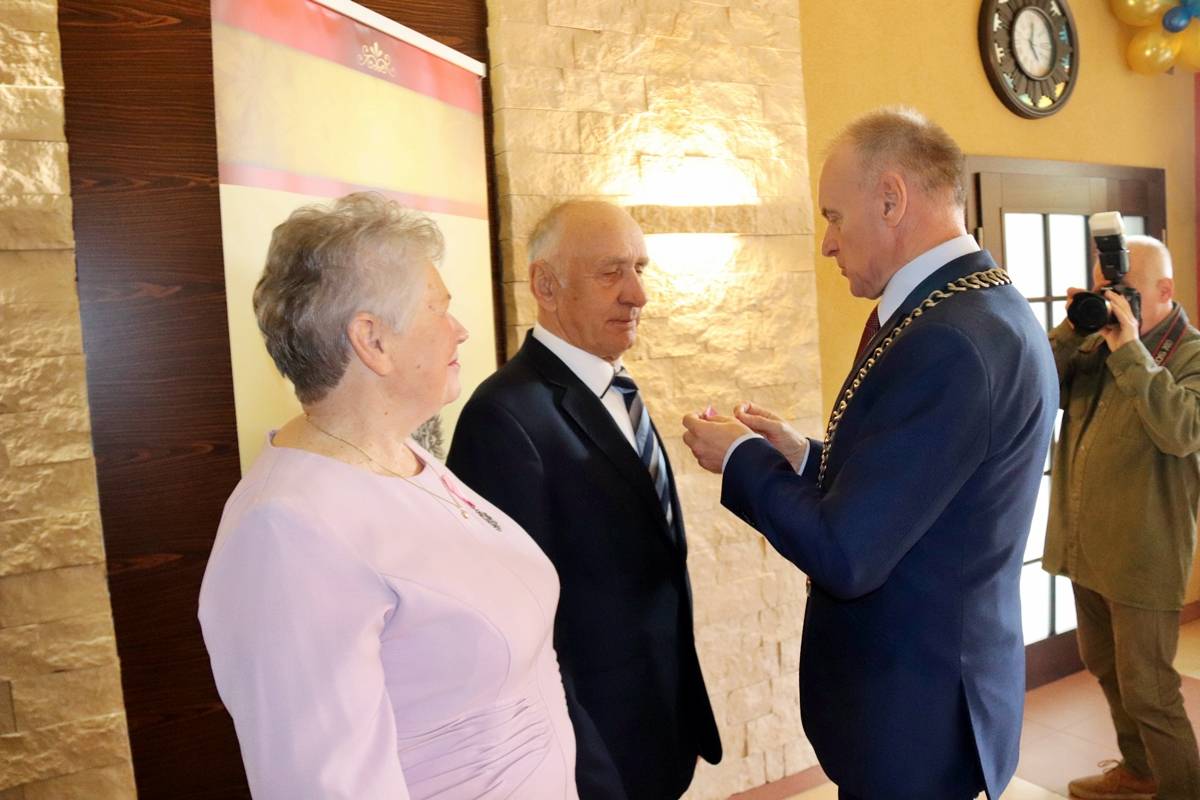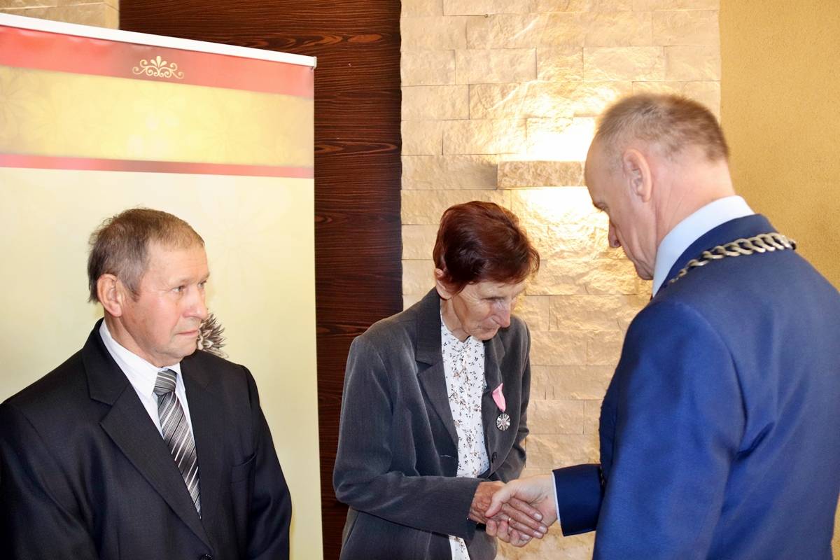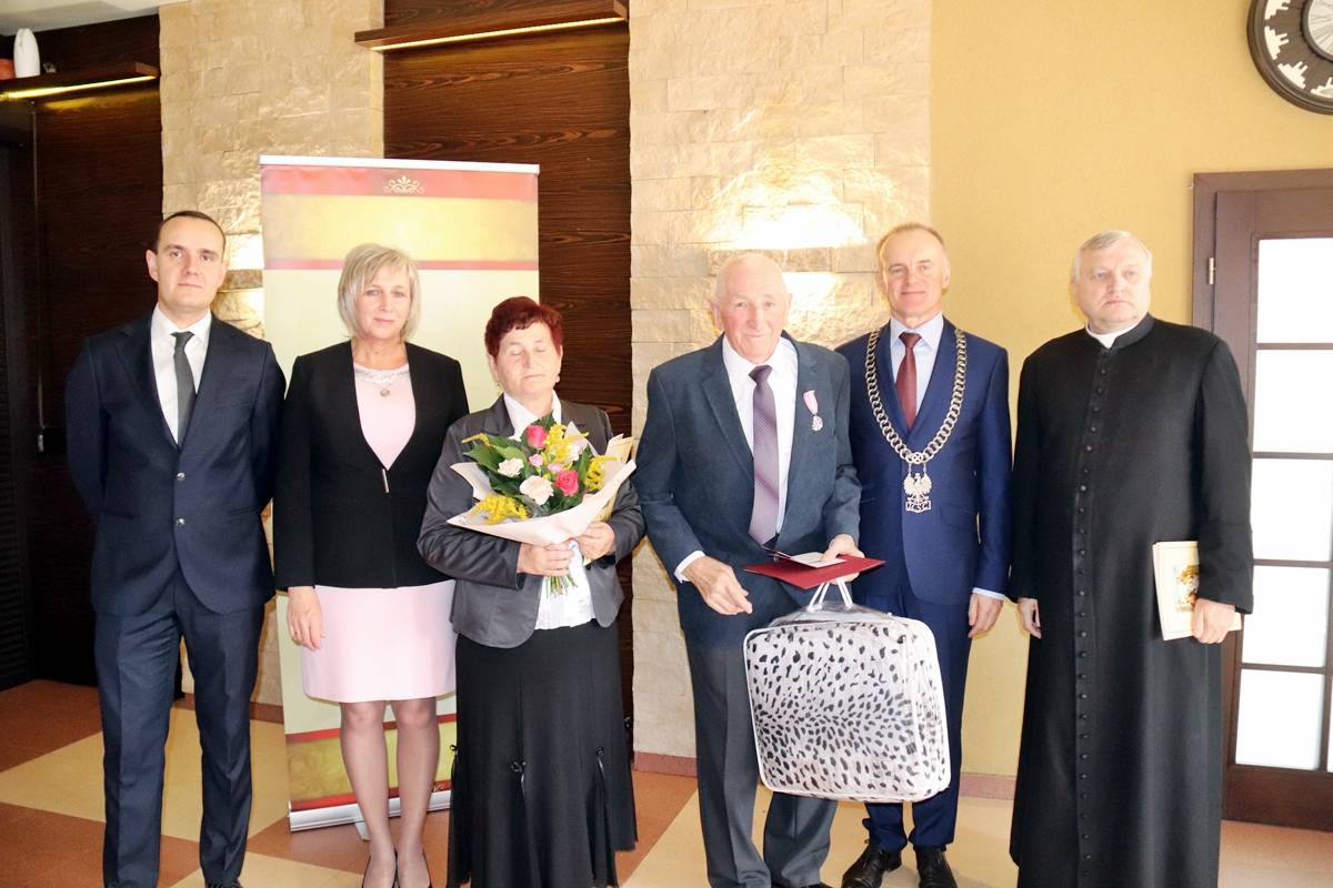 Podczas uroczystości, Pan Wójt wręczył Szanownym Jubilatom Medale za Długoletnie Pożycie Małżeńskie, przyznane przez Prezydenta Rzeczypospolitej Polskiej, w dowód społecznego uznania dla trwałości małżeństw z terenu naszej gminy, złożył najlepsze życzenia zdrowia, szczęścia oraz wszelkiej pomyślności, a także wyraził słowa uznania za piękny przykład dla młodego pokolenia.