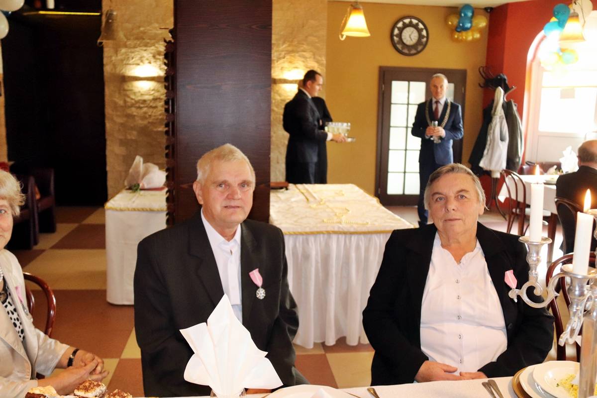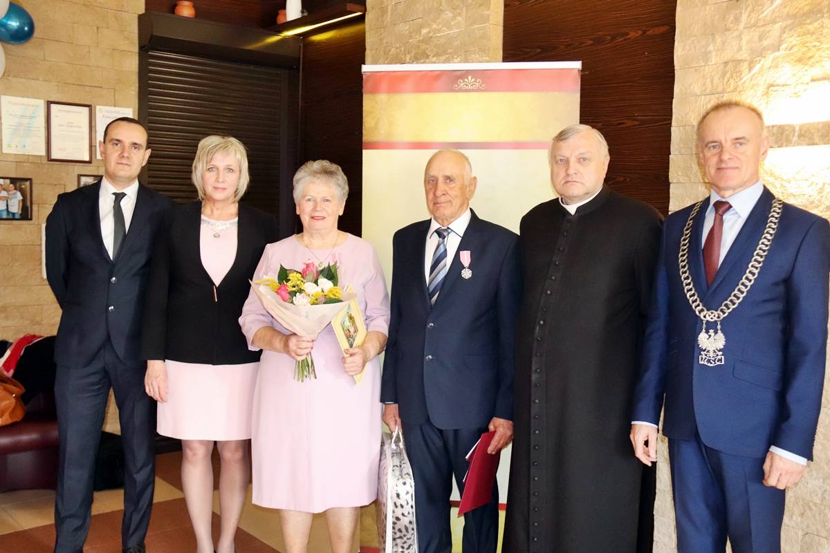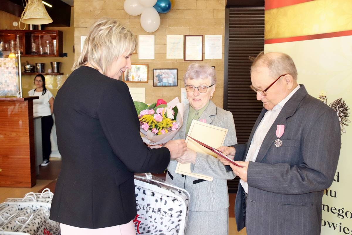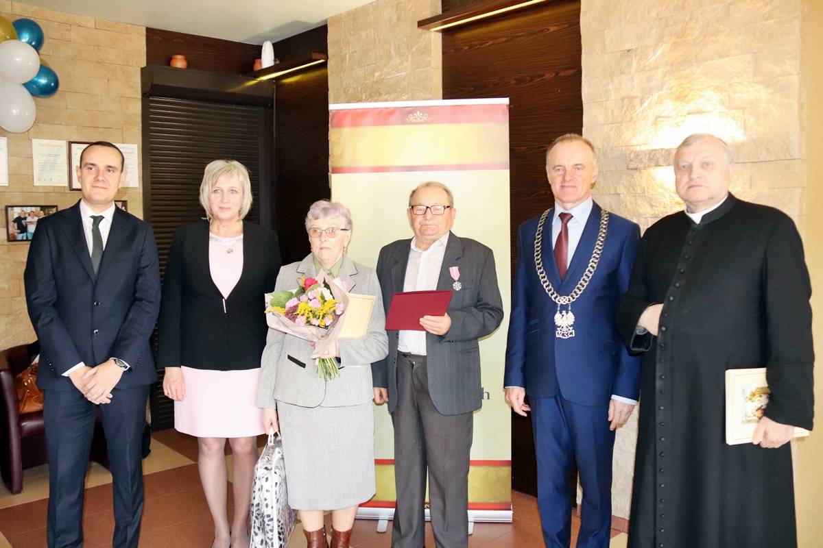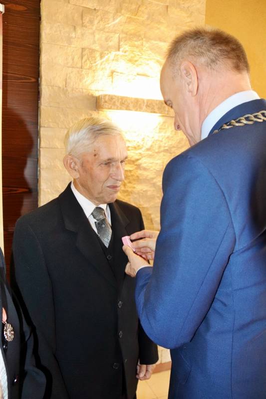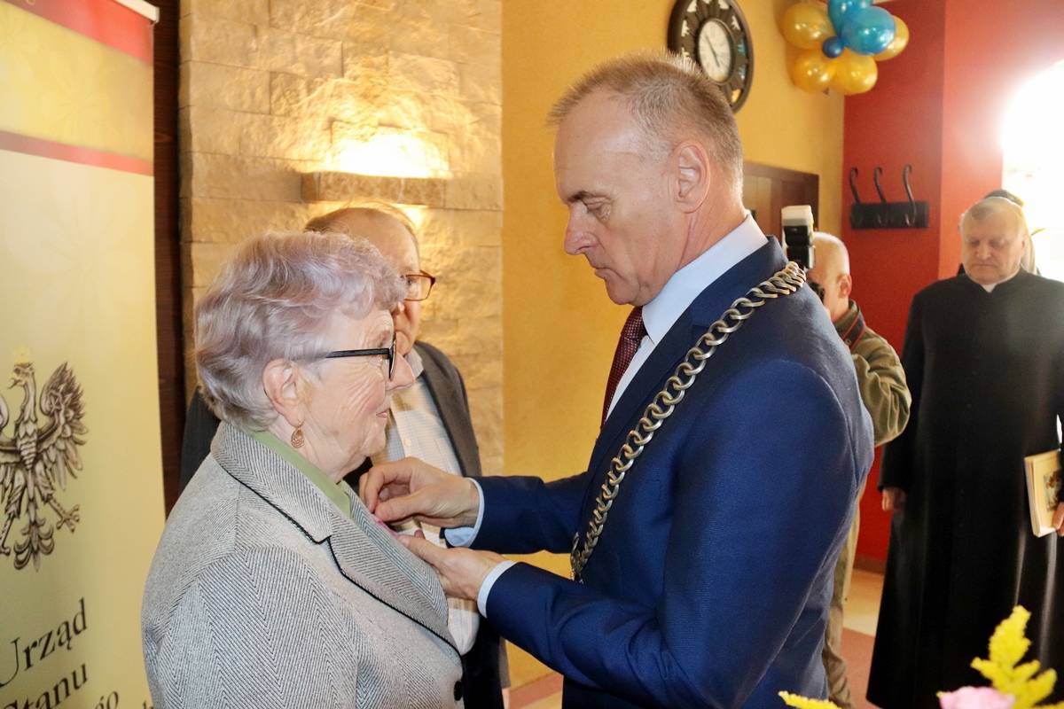 Podczas uroczystości, Pan Wójt wręczył Szanownym Jubilatom Medale za Długoletnie Pożycie Małżeńskie, przyznane przez Prezydenta Rzeczypospolitej Polskiej, w dowód społecznego uznania dla trwałości małżeństw z terenu naszej gminy, złożył najlepsze życzenia zdrowia, szczęścia oraz wszelkiej pomyślności, a także wyraził słowa uznania za piękny przykład dla młodego pokolenia.