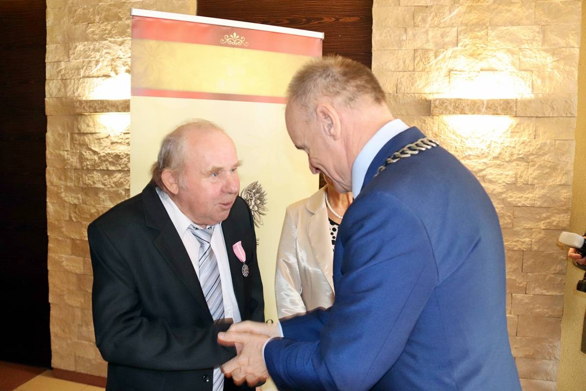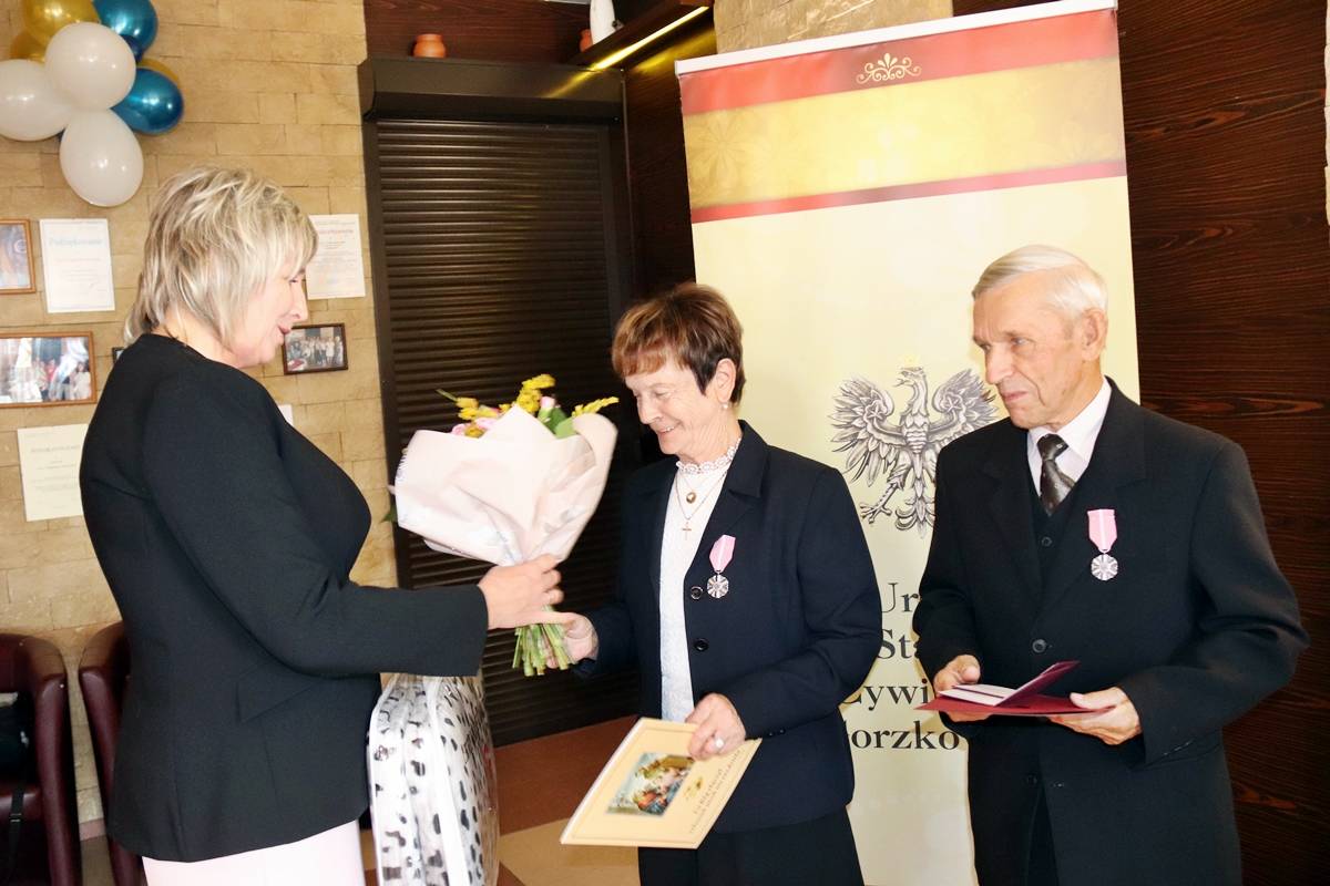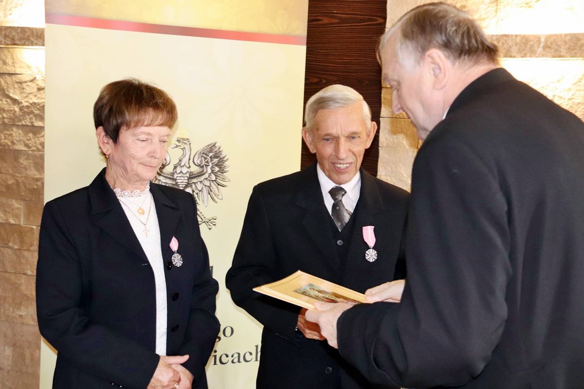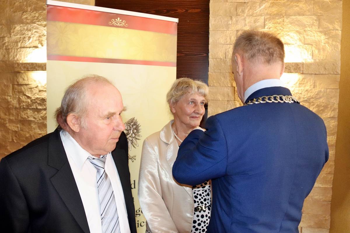 Podczas uroczystości, Pan Wójt wręczył Szanownym Jubilatom Medale za Długoletnie Pożycie Małżeńskie, przyznane przez Prezydenta Rzeczypospolitej Polskiej, w dowód społecznego uznania dla trwałości małżeństw z terenu naszej gminy, złożył najlepsze życzenia zdrowia, szczęścia oraz wszelkiej pomyślności, a także wyraził słowa uznania za piękny przykład dla młodego pokolenia.