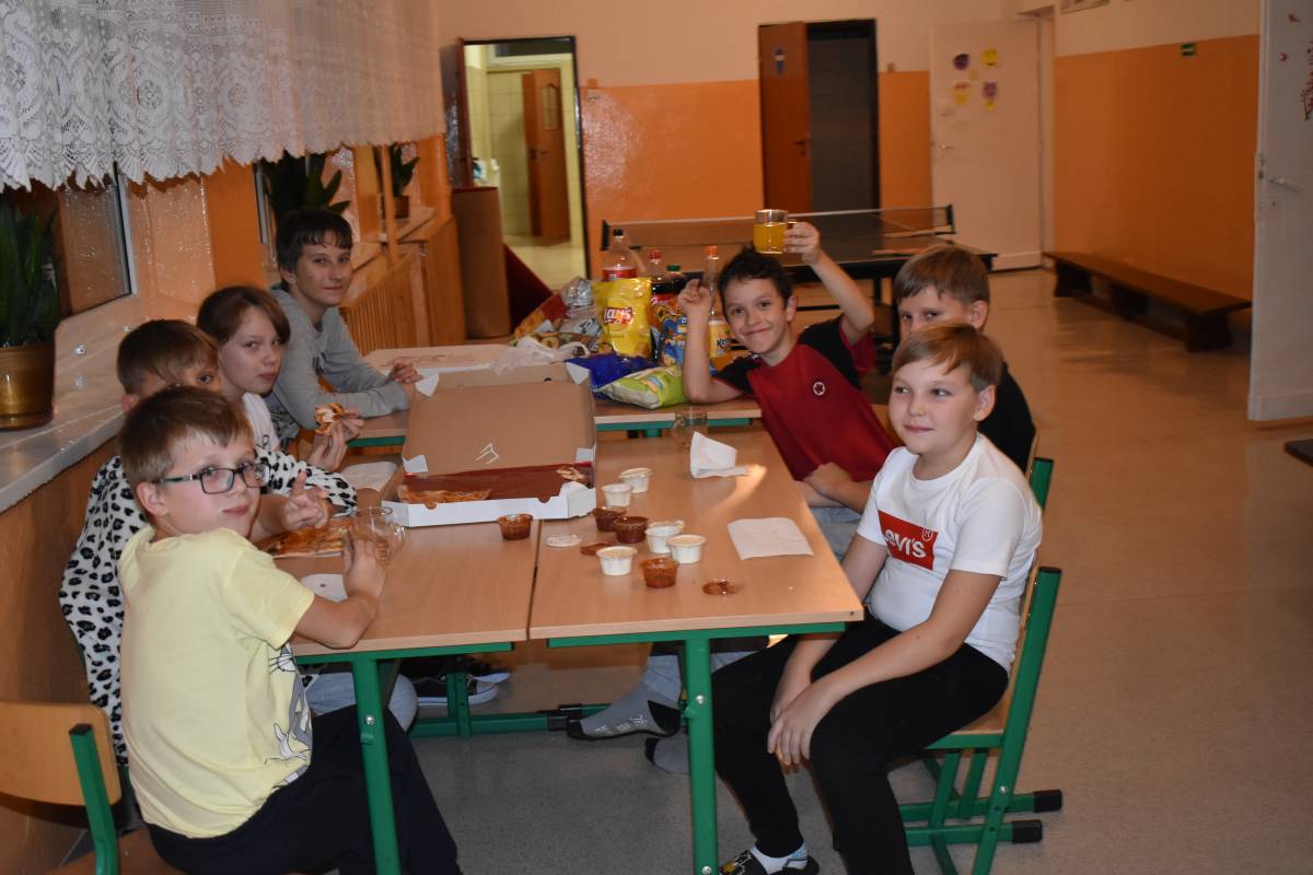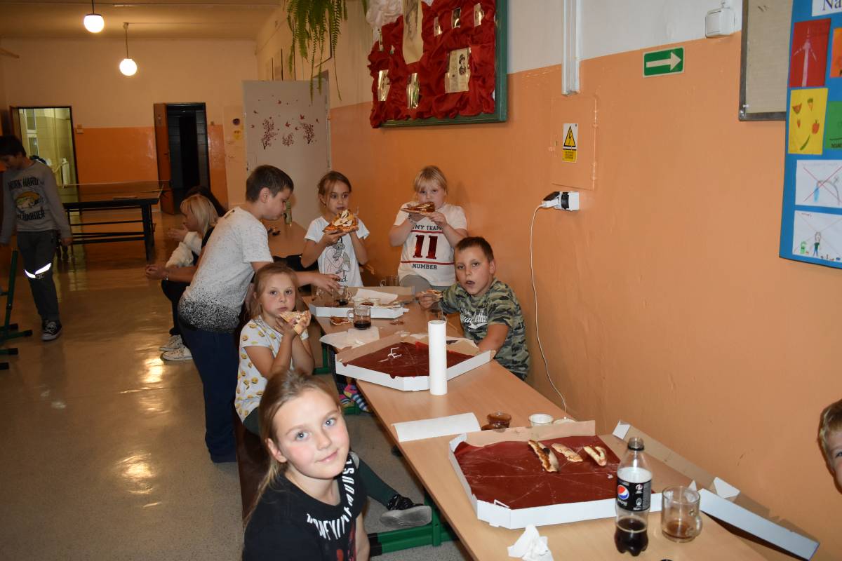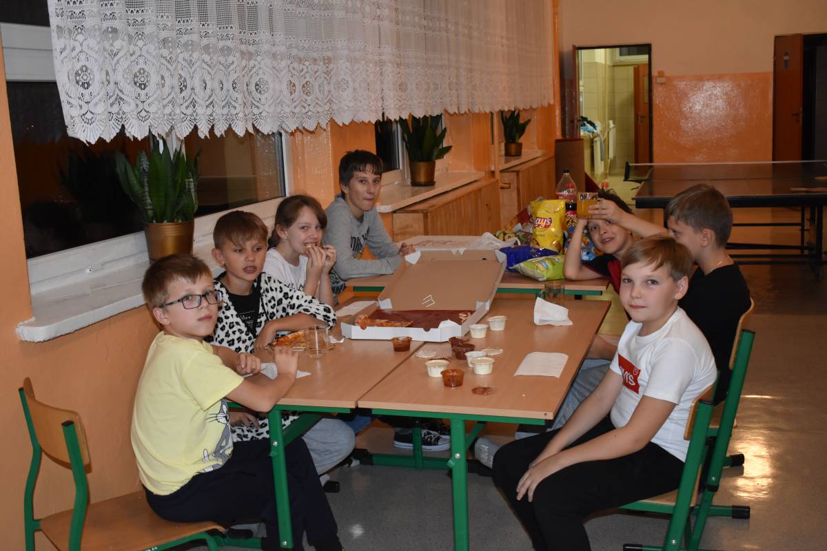 Nie zabrakło wzruszeń i śmiechu do łez. Miłym akcentem nocy filmowej była pyszna pizza oraz słodkie przekąski. Spotkanie sprzyjało również integracji oraz wzmocnieniu więzi koleżeńskich. Rankiem następnego dnia, pełni pozytywnych emocji i niezapomnianych wrażeń estetycznych uczniowie opuścili budynek szkoły pod opieką rodziców.