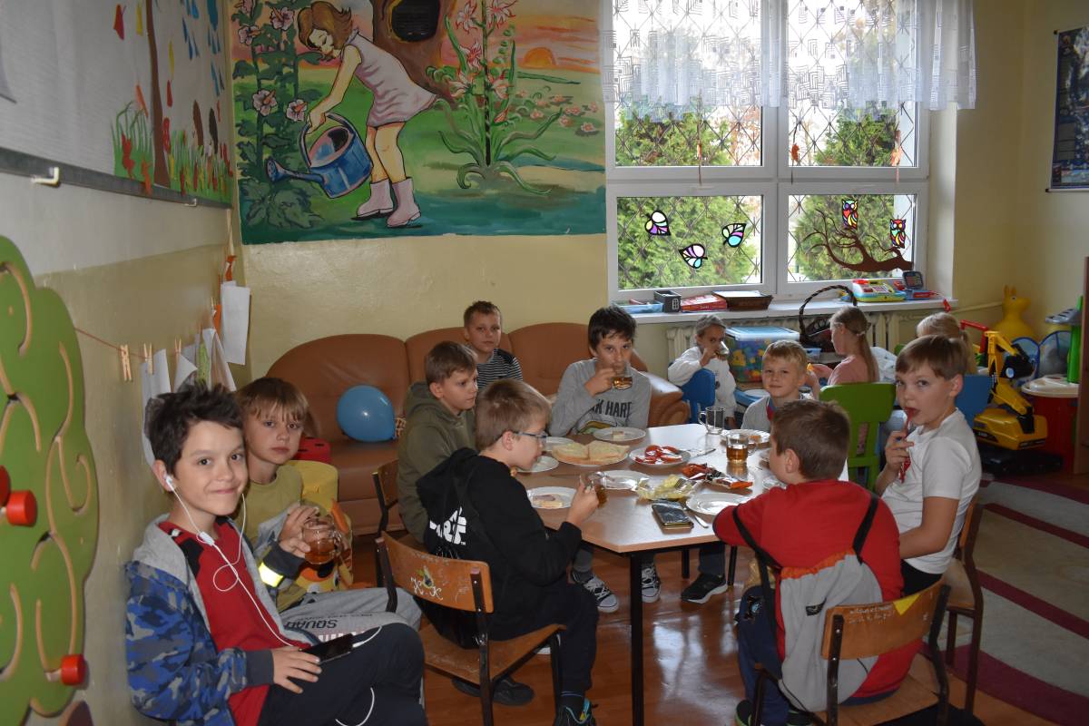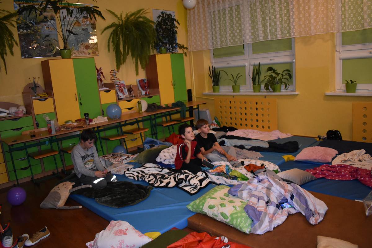 7 października 2022 r. o godz. 19.30 uczniowie klasy II i V Szkoły Podstawowej w Krzemieniewicach przybyli do budynku szkoły, by pod opieką nauczycieli uczestniczyć w nocnym maratonie filmowym.