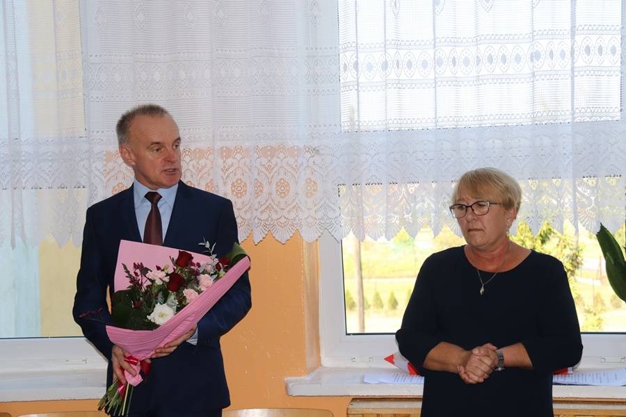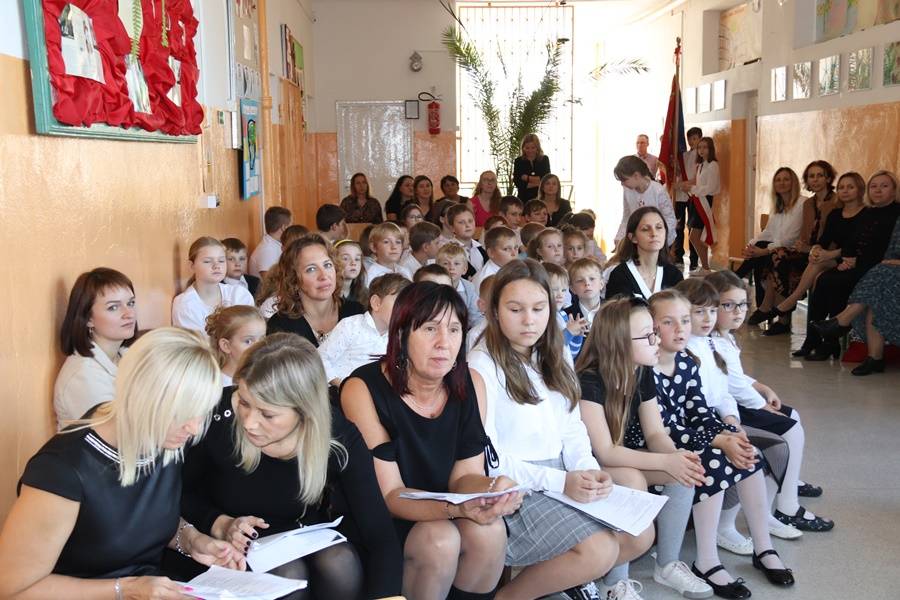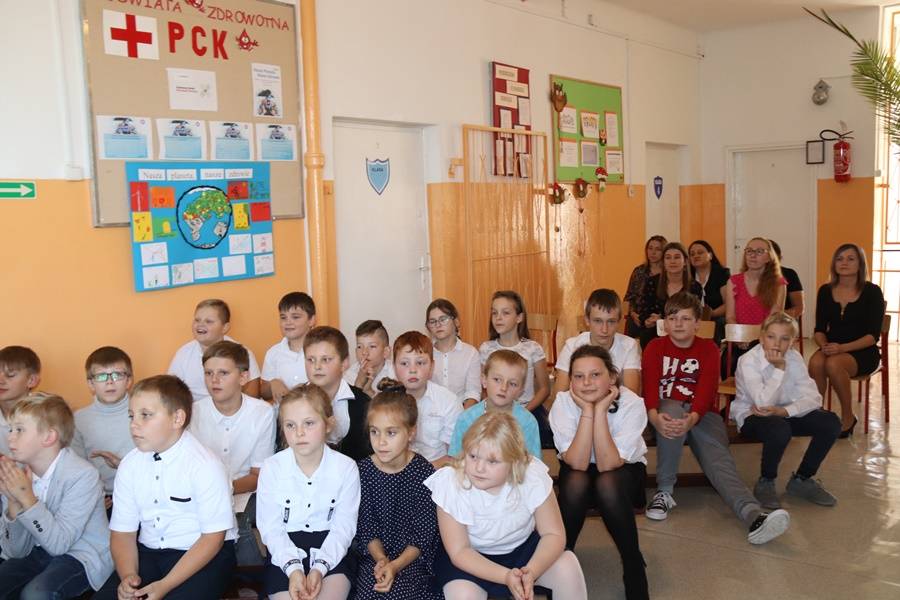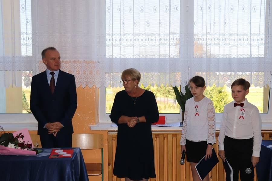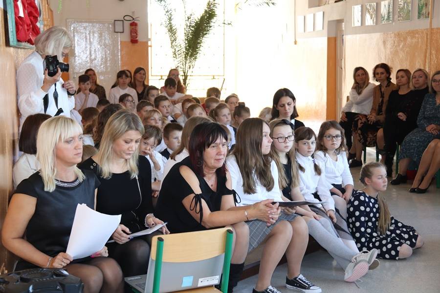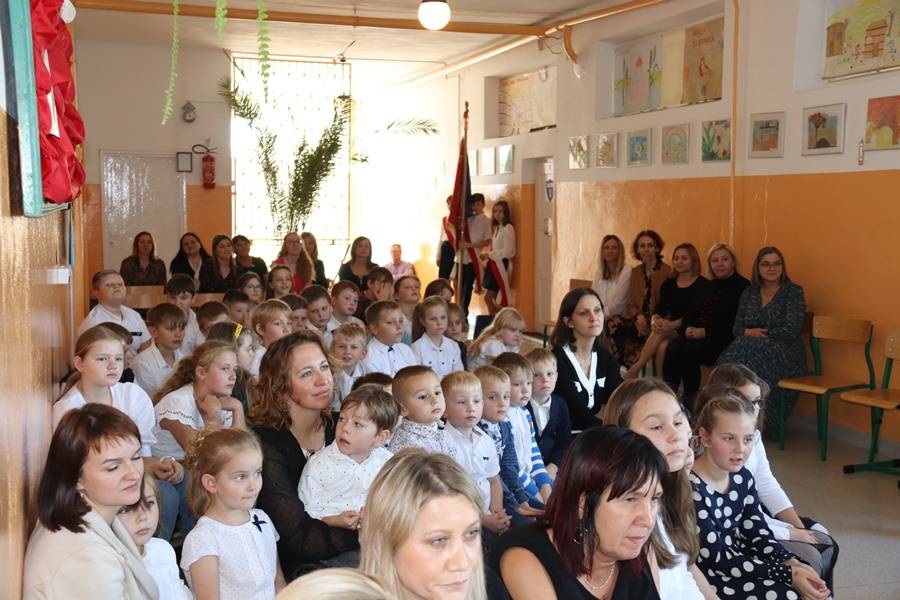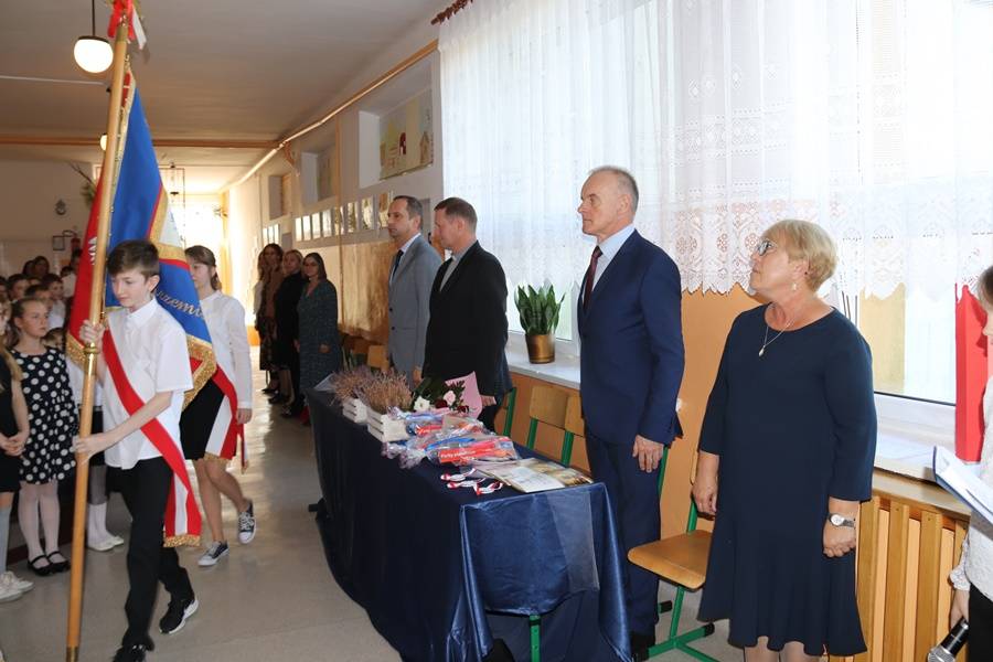 Na uroczystość przybyli zaproszeni goście: Wójt Gminy Gorzkowice Pan Alojzy Włodarczyk, Dyrektor Administracji Placówek Oświatowych Pan Daniel Słowik, emerytowani pracownicy szkoły i oczywiście rodzice. Wszystkich zebranych powitała Dyrektor Szkoły Pani Elżbieta Włodarczyk.
