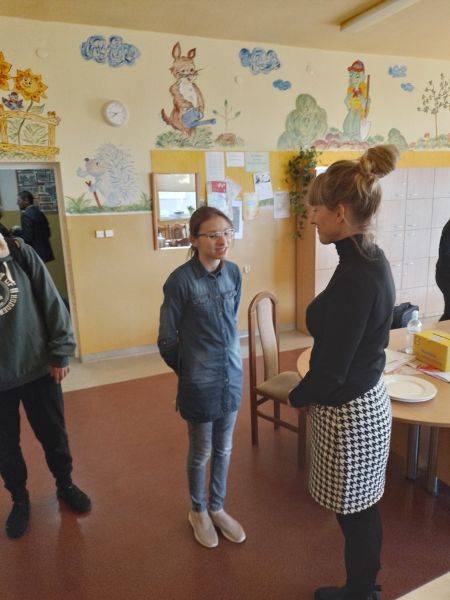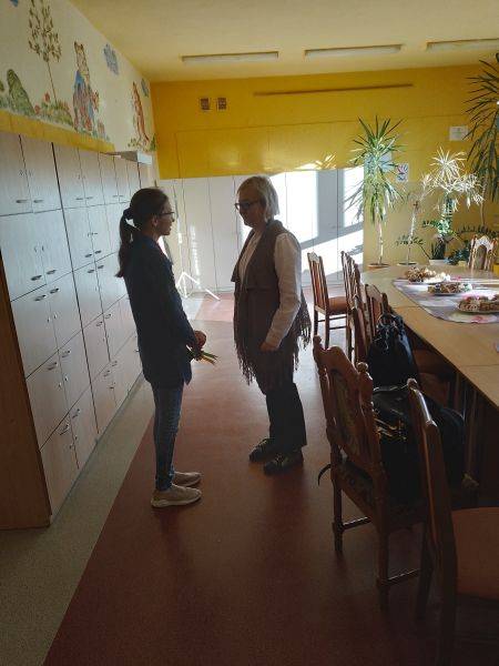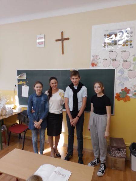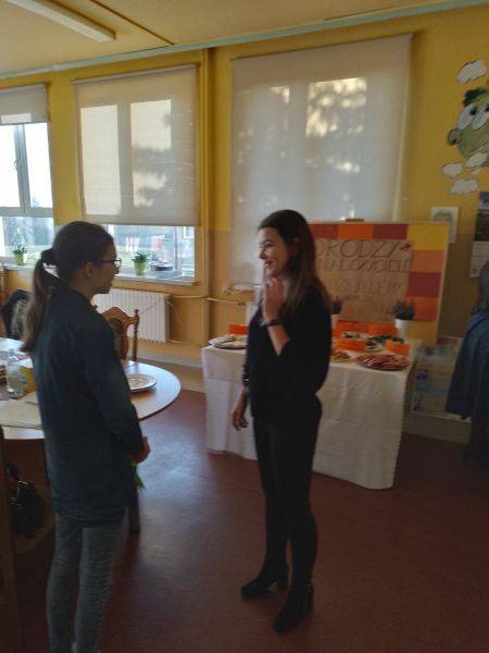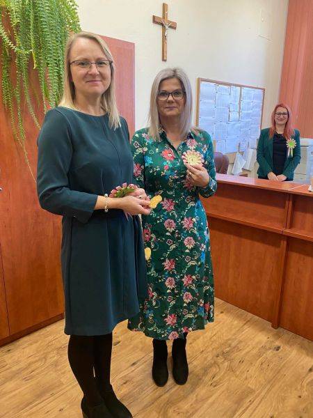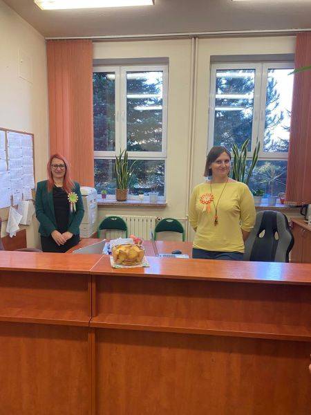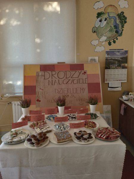 Członkowie Samorządu Uczniowskiego w przeddzień Dnia Edukacji Narodowej witali swoich nauczycieli w drzwiach szkoły. Każdy z nich usłyszał życzenia i otrzymał własnoręcznie wykonany kotylion oraz zaproszenie na słodki poczęstunek przygotowany w pokoju nauczycielskim przez uczniów i Radę Rodziców. Reprezentacja Samorządu Uczniowskiego składała także najserdeczniejsze życzenia pracownikom obsługi, którzy również zostali obdarowani słodkościami. Miło nam było odwiedzić w tym dniu Wójta Gminy Gorzkowice Pana Alojzego Włodarczyka składając na jego ręce symboliczny bukiet kwiatów. Dzień upłynął wszystkim w miłej atmosferze.