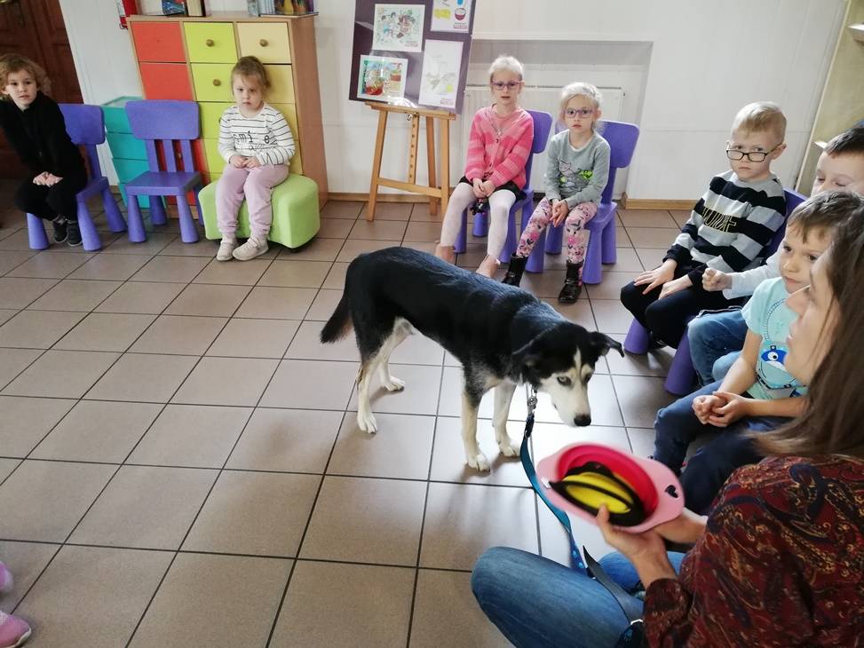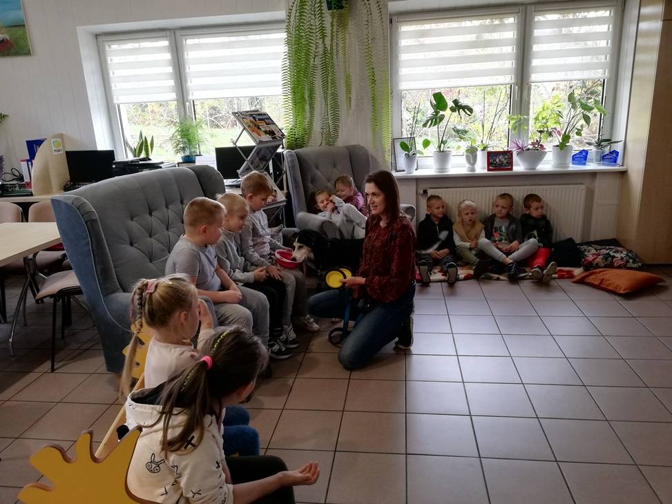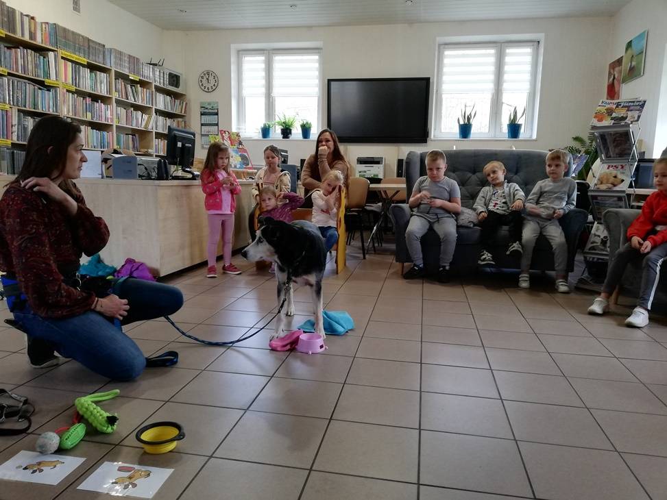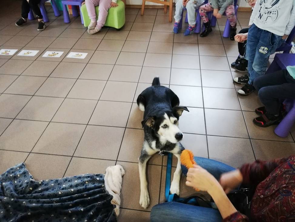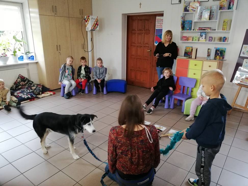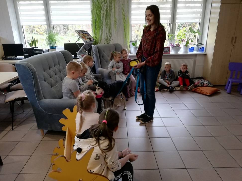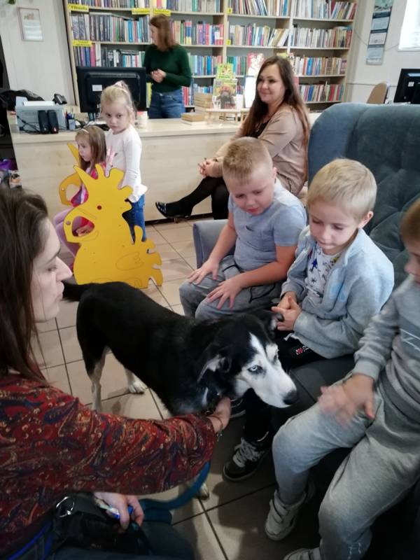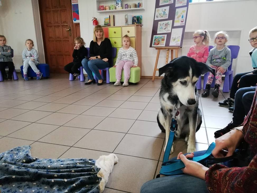 W środę, w bibliotece w Gorzkowicach odbyło się niezwykle, edukacyjne spotkanie, które przygotowałyśmy dla przedszkolaków z Przedszkola Samorządowego w Gorzkowicach. Dzieci spędziły czas z Whisperem, adoptowanym mieszańcem w typie Alaskan Husky, który kocha spotkania z ludźmi, zna wiele sztuczek, uwielbia ciągnąć rower i bawić się z najmłodszymi. Zajęcia przeprowadziła Małgorzata Krzemińska - pedagog edukacji wczesnoszkolnej i przedszkolnej, logopeda, terapeuta ręki, dogoterapeuta, przewodnik i trener psów pracujących w dogoterapii. Na początku każde dziecko mogło się przywitać z pieskiem i dać mu smakołyk, później nadszedł czas na zabawę. Przedszkolaki uczyły się przede wszystkim , jak należy prawidłowo opiekować się psami, jak postępować ze zwierzętami w różnych, trudnych sytuacjach oraz poznały zasady bezpiecznego kontaktu i zabawy z ulubionymi czworonogami.