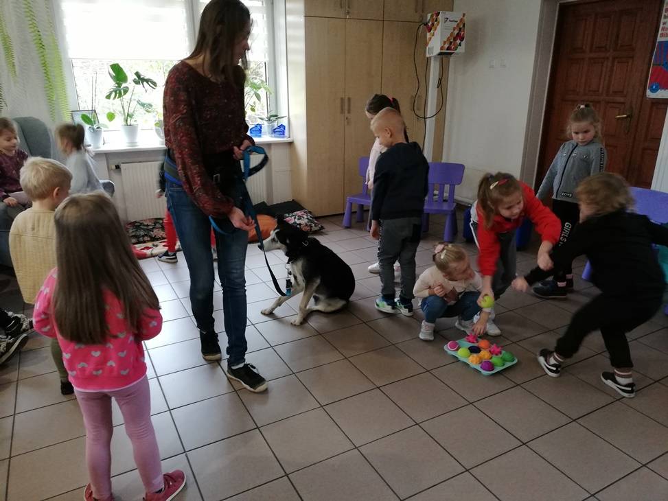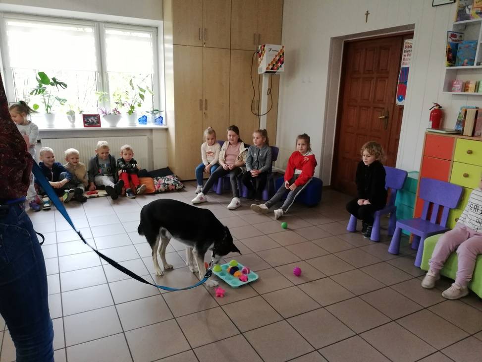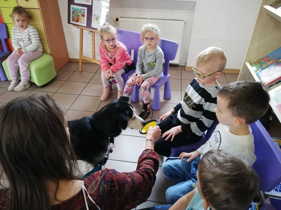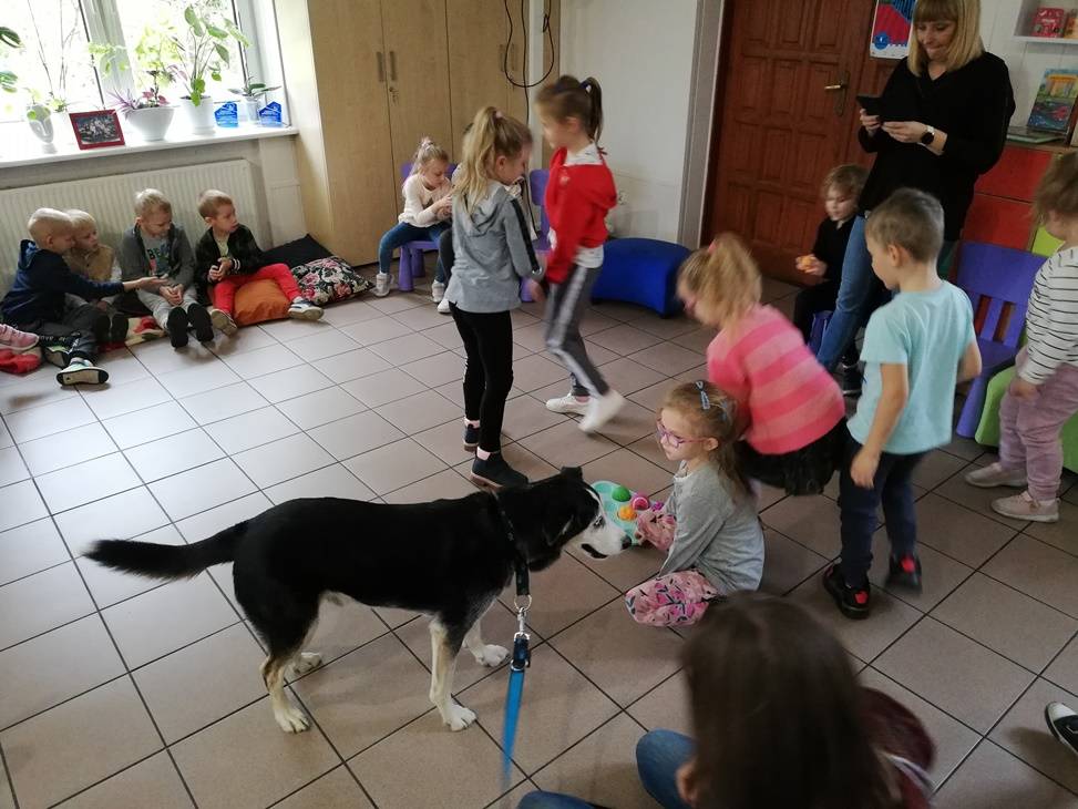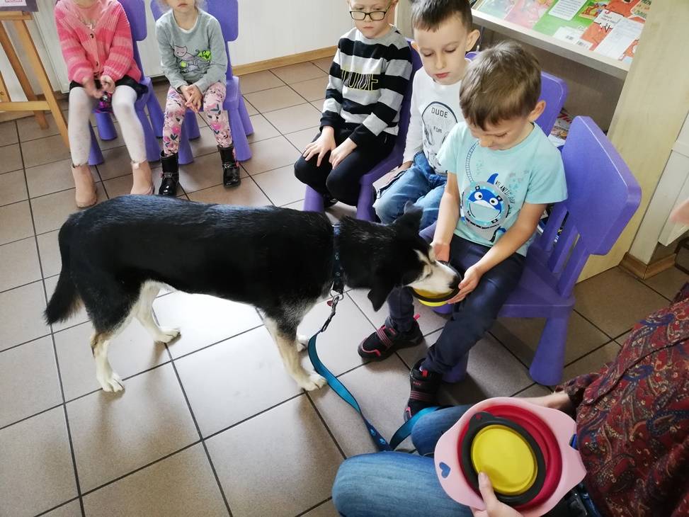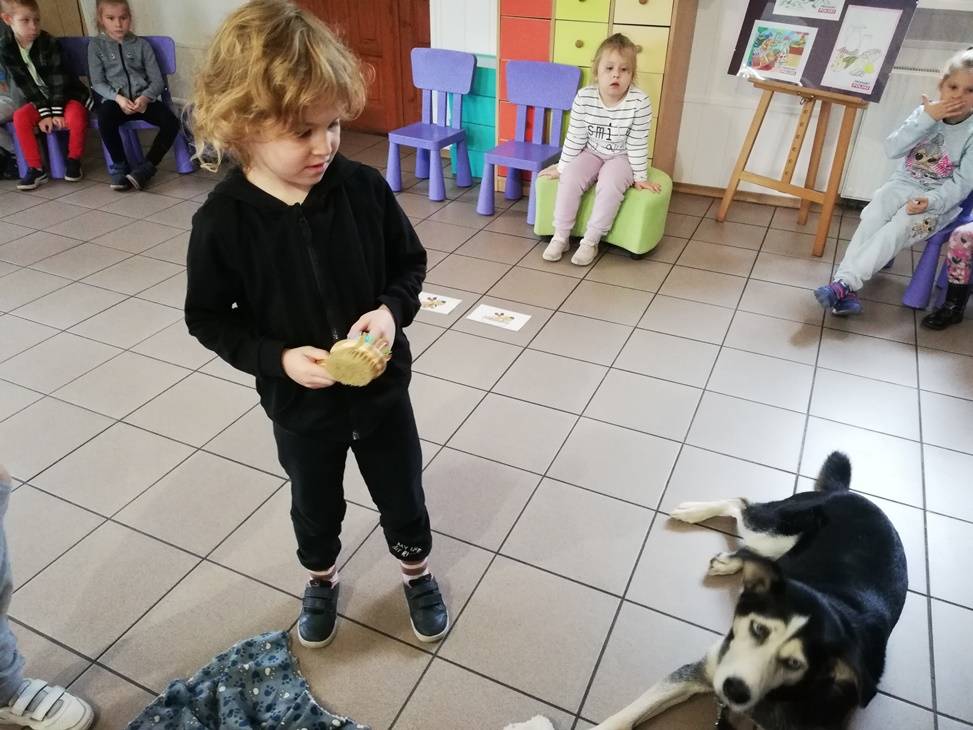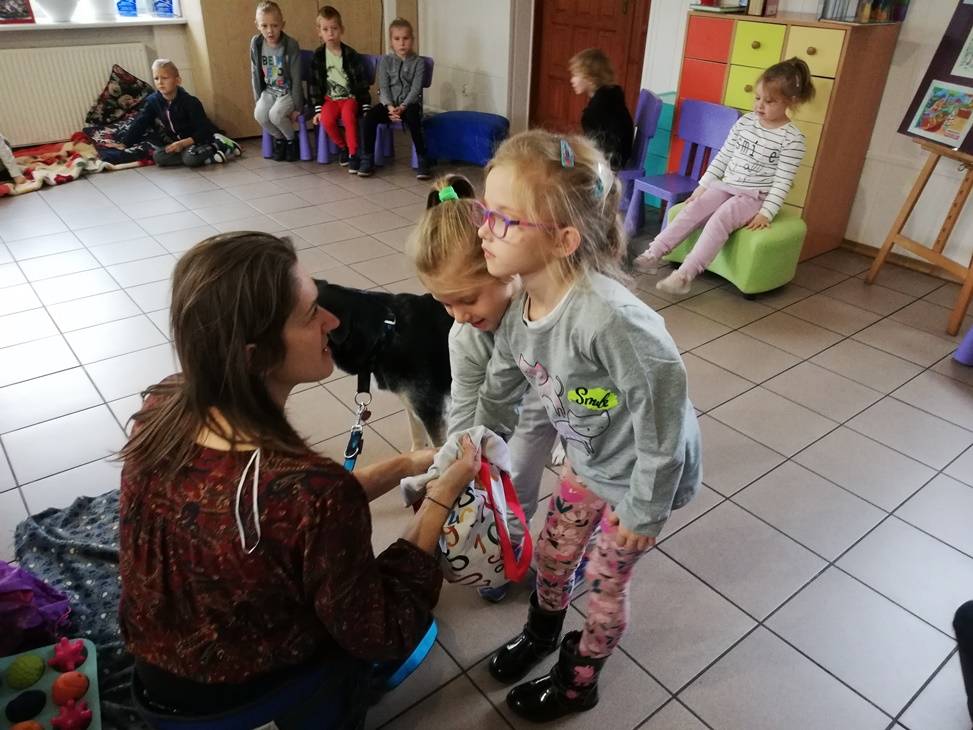 W środę, w bibliotece w Gorzkowicach odbyło się niezwykle, edukacyjne spotkanie, które przygotowałyśmy dla przedszkolaków z Przedszkola Samorządowego w Gorzkowicach. Dzieci spędziły czas z Whisperem, adoptowanym mieszańcem w typie Alaskan Husky, który kocha spotkania z ludźmi, zna wiele sztuczek, uwielbia ciągnąć rower i bawić się z najmłodszymi. Zajęcia przeprowadziła Małgorzata Krzemińska - pedagog edukacji wczesnoszkolnej i przedszkolnej, logopeda, terapeuta ręki, dogoterapeuta, przewodnik i trener psów pracujących w dogoterapii. Na początku każde dziecko mogło się przywitać z pieskiem i dać mu smakołyk, później nadszedł czas na zabawę. Przedszkolaki uczyły się przede wszystkim , jak należy prawidłowo opiekować się psami, jak postępować ze zwierzętami w różnych, trudnych sytuacjach oraz poznały zasady bezpiecznego kontaktu i zabawy z ulubionymi czworonogami.