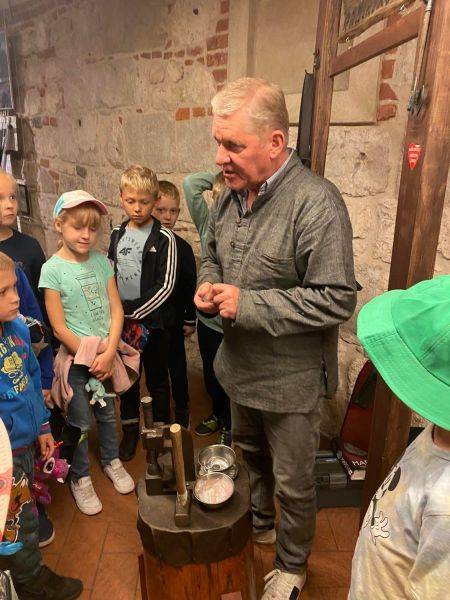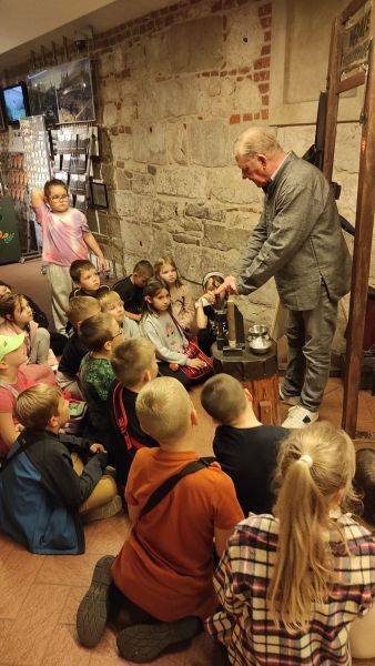 Następnie udaliśmy się z przewodnikiem na zwiedzanie Podziemnej Trasy Turystycznej, Muzeum Historycznego Miasta Krakowa - Śladami europejskiej tożsamości Krakowa. Z wielkim zainteresowaniem uczniowie obejrzeli unikatową podziemną ekspozycję muzealną znajdująca się 4 metry pod płytą Rynku Głównego. Była ona ciekawym multimedialnym widowiskiem i podróżą w czasie. Uczniowie mogli nie tylko zobaczyć, ale i dotknąć historii legendarnego miasta. Pod koniec zwiedzania Podziemnej Trasy Turystycznej podziwiali pokaz wybijania monet metodą tradycyjną. Uczniowie mogli nie tylko zobaczyć, ale i dotknąć historii legendarnego miasta.