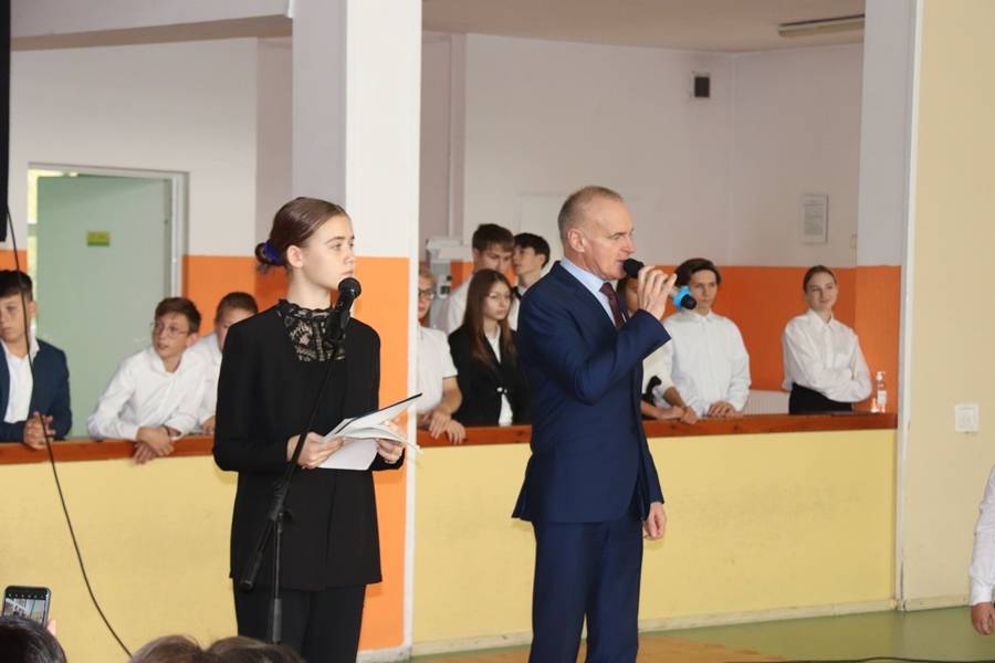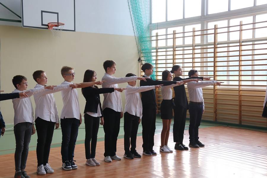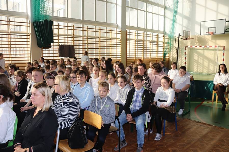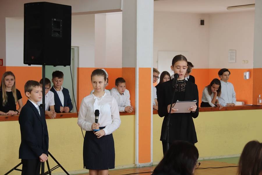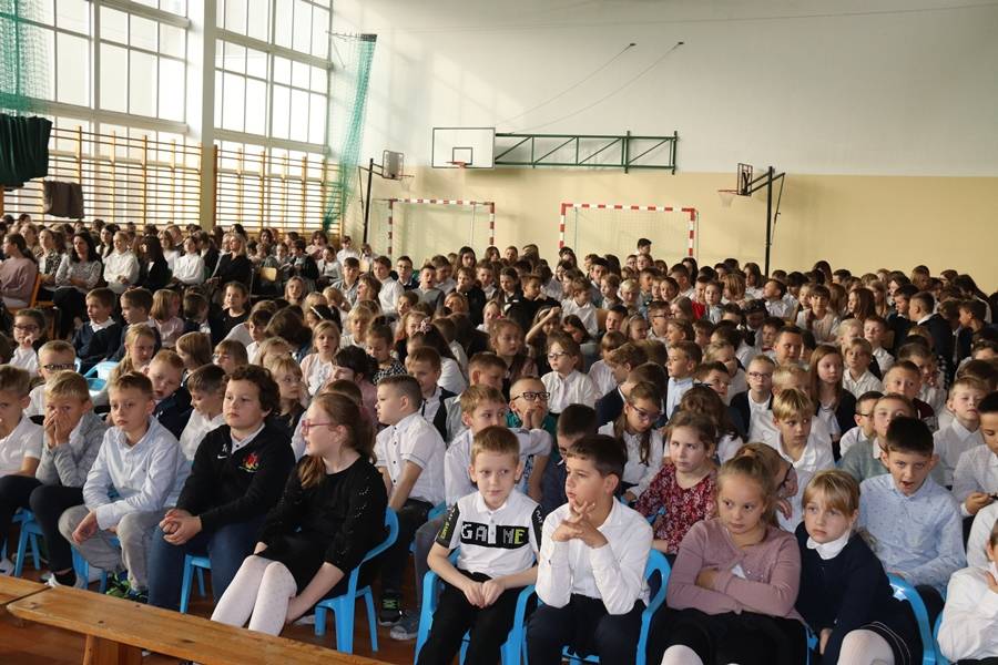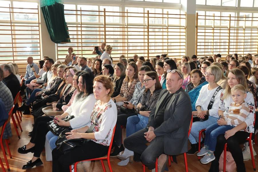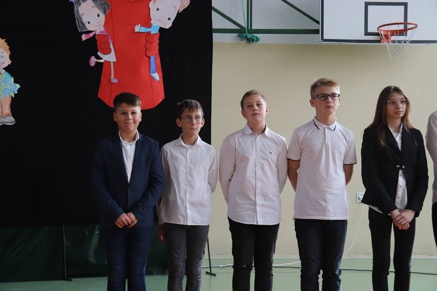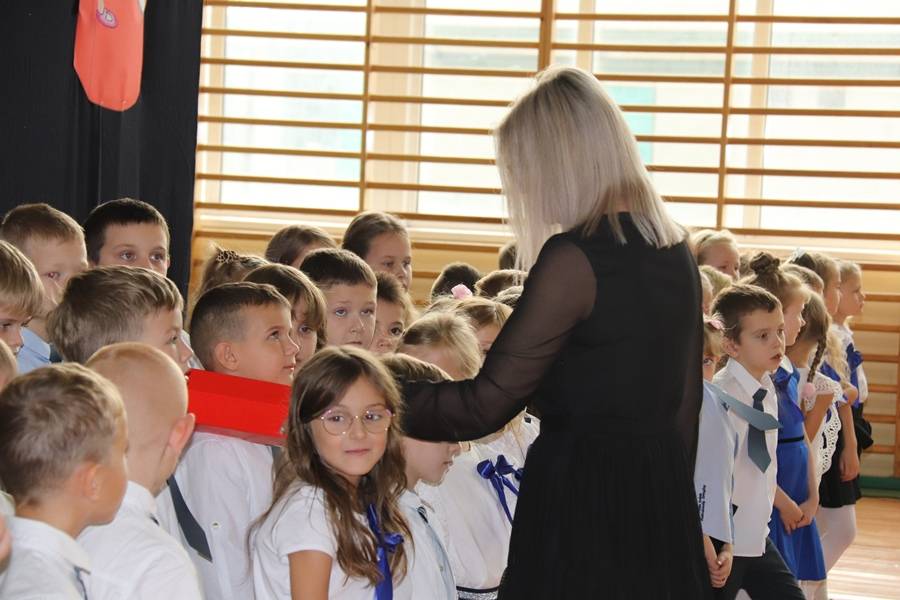 Kolejnym punktem uroczystości było zaprzysiężenie Samorządu Uczniowskiego. Gospodarze wszystkich klas w osobach: klasa VIII a - Bartosz Kiełbik, klasa VIII b - Igor Famulski klasa VIII c - Filip Szopa, klasa VIII d - Wiktoria Wędzonka, klasa VII a - Olivier Ryszka, klasa VI a - Bartosz Foksowicz, klasa VI b - Konrad Cichosz, klasa VI c - Filip Matuszczyk, klasa V a - Maciej Sikora, klasa V b - Alan Włóka, klasa IV a - Amelia Gwóźdź, klasa IV b - Piotr Łęgowiak, klasa IV c - Tymon Wlaźlak, klasa III a - Oskar Koryciński, klasa III b - Jakub Ziemba, klasa III c - Antoni Stasiak, klasa II a - Hanna Karlińska, klasa II b - Maja Krajewska, klasa II c - Oskar Sobieszek, klasa II d - Martyna Woźniak, klasa Ia - Aleksander Cichoń, klasa I b - Patryk Kordyzon, klasa I c - Pola Janiec złożyli uroczyste ślubowanie obiecując sumiennie wypełniać wszystkie obowiązki, jakie nakłada na nich szkoła, godnie reprezentować szkołę swoimi osiągnięciami