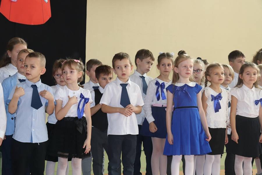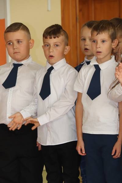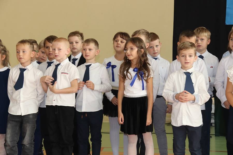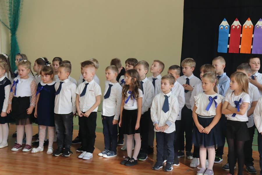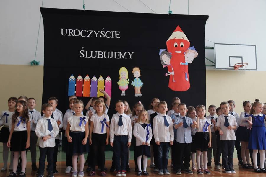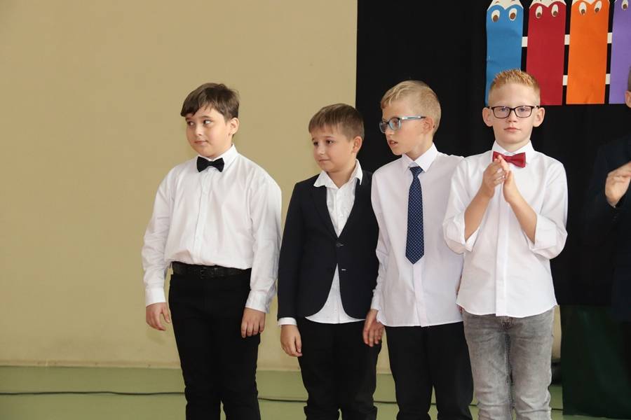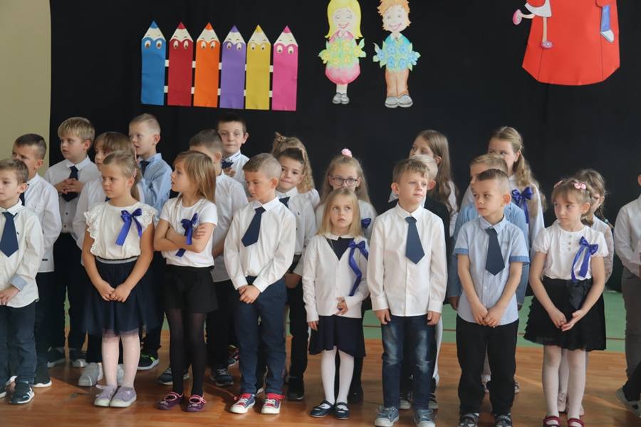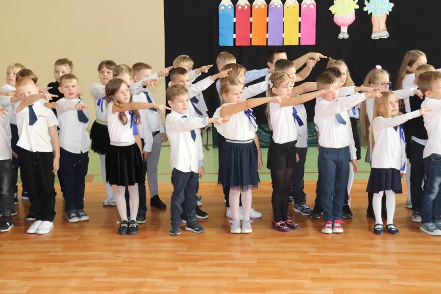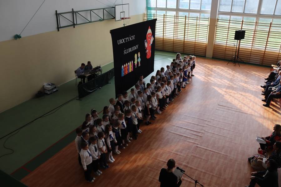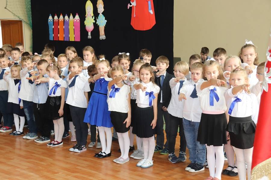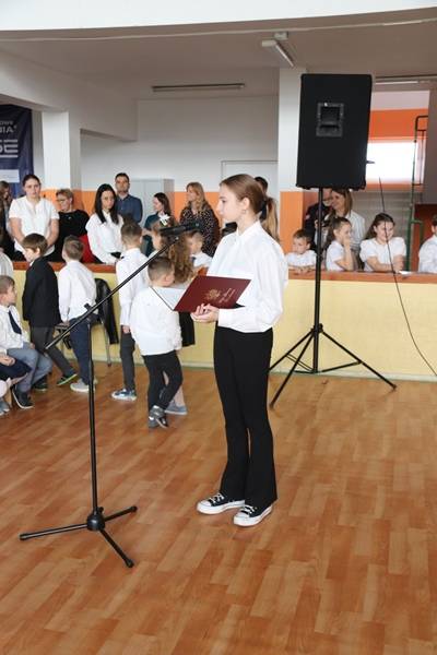 Zanim pierwszoklasiści zostali oficjalnie przyjęci do grona społeczności szkolnej, zaprezentowali krótki program artystyczny. Ślubowali na sztandar szkoły.