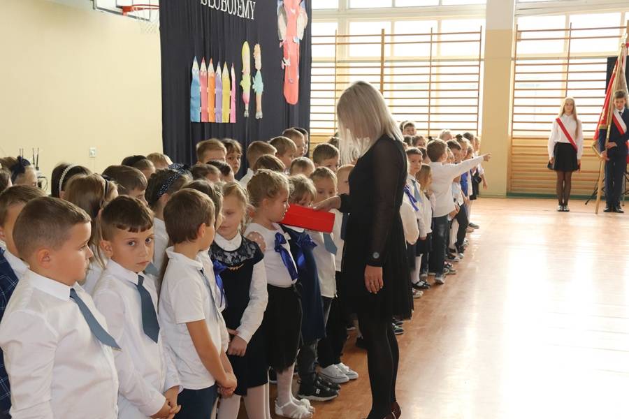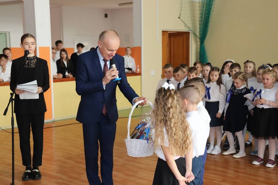 Następnie Pani Dyrektor dokonała aktu pasowania na ucznia. Dzieci z rąk Pana Wójta otrzymały upominki.