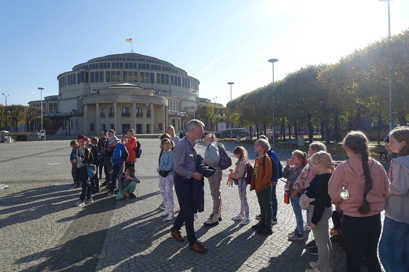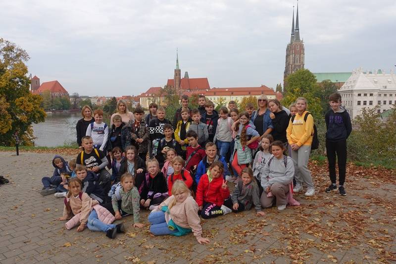 W dniu 17 października uczniowie klas IV – VIII wraz z opiekunami: p. Magdaleną Krzynówek, p.Olgą Kuśmierczyk – Kalecińską, p. Agnieszką Świstak i p. Wiesławą Zbroja uczestniczyli w trzydniowej wycieczce do Wrocławia. Po dotarciu na miejsce w pierwszej kolejności chcieliśmy obejrzeć słynną Panoramę Racławicką. Oczom naszym ukazało się niezwykłe dzieło stworzone przez zespół malarzy pod kierunkiem Jana Styki i Wojciecha Kossaka. Wyjątkowość tego miejsca polega na tym, że obraz zajmuje całą powierzchnię ścian. Stojąc na środku, miało się wrażenie uczestnictwa w tej bitwie.