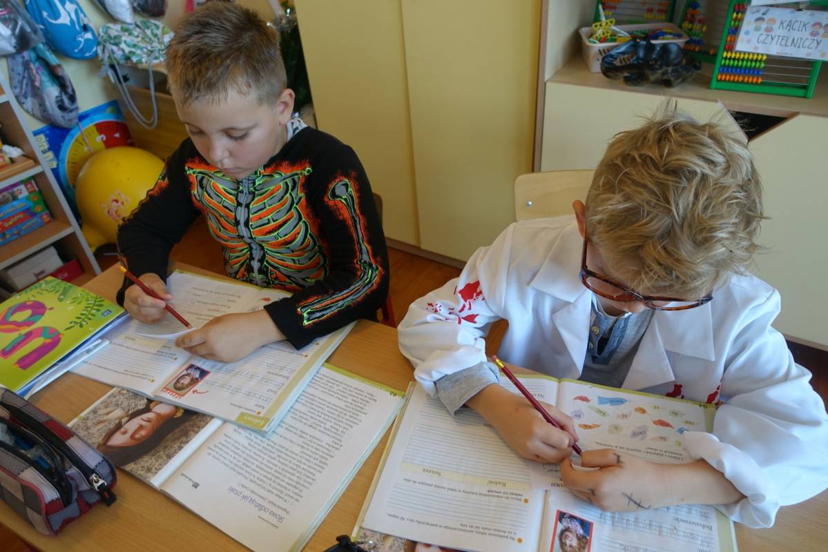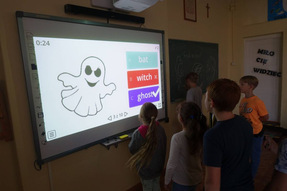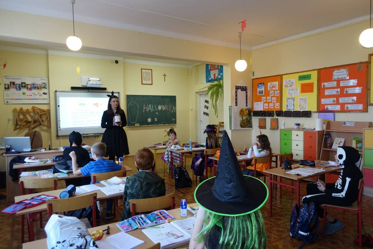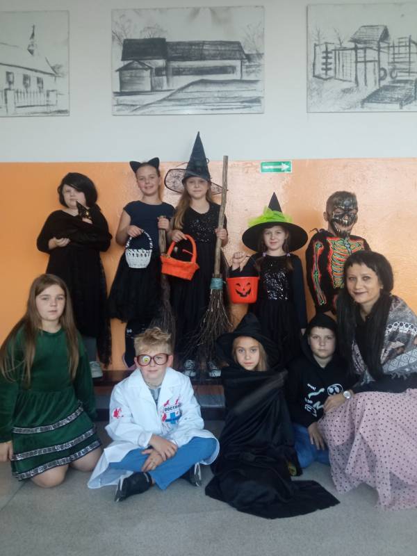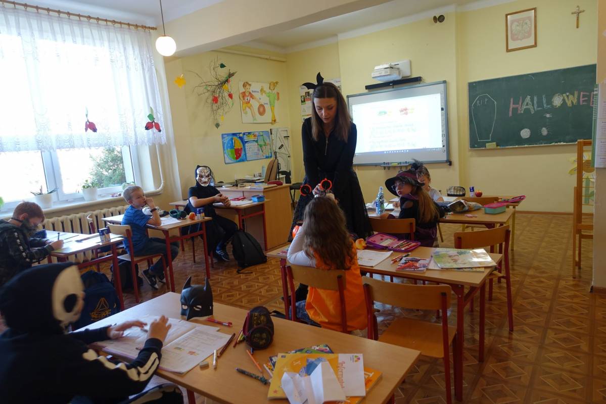 28 października 2022r. obchodziliśmy w Szkole Podstawowej w Krzemieniewicach Halloween. Jest ono celebrowane przede wszystkim w krajach anglosaskich, ale cieszy się popularnością również w Polsce. Szczególnie dzieci i młodzież kochają ten „strasznie fajny” dzień. Dlatego też na uczniów czekały tematycznie związane z tym świętem zadania, quizy, zabawy i piosenki. Nie zabrakło tradycyjnych kostiumów – na szkolnych korytarzach zaroiło się od czarownic, potworów, upiorów, superbohaterów, itp. Nieodłącznym elementem była oczywiście zabawa w „cukierek albo psikus”. Wszyscy uczniowie mogli spróbować także swoich sił w „Candy guessing game”, która polegała na oszacowaniu liczby cukierków w słoiku. Zwycięzcą w tej konkurencji został uczeń klasy V, Filip Figa. Celem obchodów Halloween było przybliżenie dzieciom tradycji oraz kultury brytyjskiej i amerykańskiej, a także wspieranie i rozwijanie zainteresowań językowych.