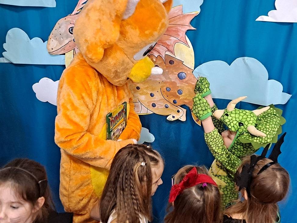 5 listopada obchodzimy Dzień Postaci z Bajek. Jest to dobry moment, aby przypomnieć sobie i przedstawić dzieciom bohaterów bajek i baśni i ich magiczny świat. Postacie z bajek w dzieciństwie są naszymi przyjaciółmi, towarzyszą nam i uczą wartości. Z okazji tego niezwykłego święta pani dyrektor Małgorzata Gadecka wraz ze swoim przyjacielem Dinusiem odwiedziła przedszkolaków z Przedszkola Chatka Puchatka. Przedszkolaki przebrały się w stroje swoich ulubieńców. Dzieci wysłuchały opowieści o dinozaurach i chętnie odpowiadały na pytania. Każdy chciał zrobić sobie zdjęcie z pluszowym przyjacielem a w nagrodę za odwagę czekała niespodzianka. Był to dzień pełen wrażeń.