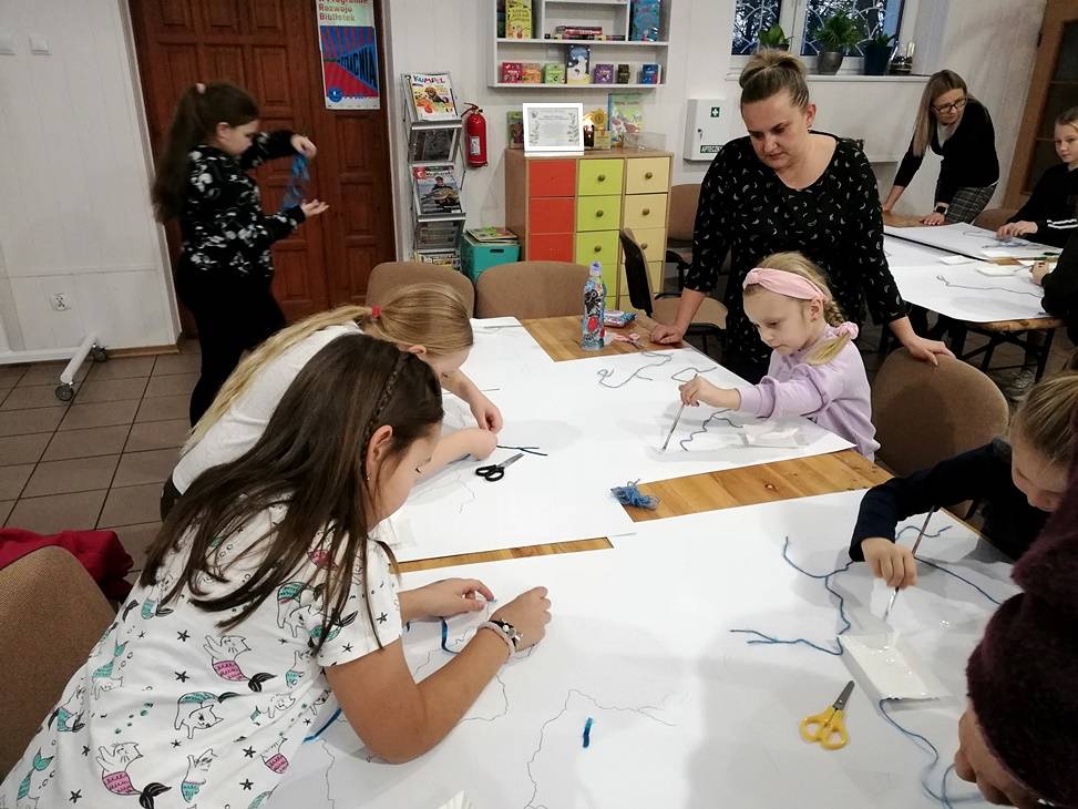 Z okazji zbliżającego się Święta Niepodległości w bibliotece w Gorzkowicach zorganizowałyśmy dla zawsze chętnych do działań plastycznych dzieci, warsztaty patriotycznej pt. "Płynie Wisła Płynie". Warsztaty były wyjątkową podróżą przez różne regiony naszego pięknego kraju. Dzieci z przygotowanych materiałów starannie wykonały mapy Polski Była to lekcja plastyki, geografii i historii w jednym.