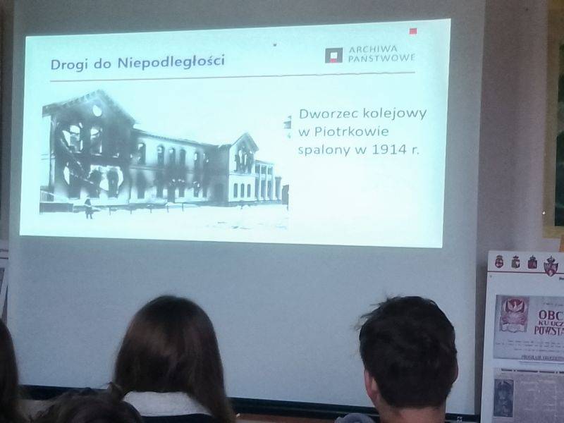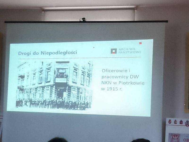 Podczas lekcji archiwalnej uczestnicy mogli obejrzeć wystawę pt. „Trudne drogi do Niepodległości” przygotowaną przez Archiwum Państwowe w Piotrkowie Trybunalskim przy wsparciu Naczelnej Dyrekcji Archiwów Państwowych. Prelekcję prowadził prof. Maciej Hubka. Przybliżając dzieje naszego terenu z czasów niepodległości, wzbogacił słowo barwnymi planszami, dokumentami, fotografiami ukazującymi polskie dążenia niepodległościowe od Insurekcji Kościuszkowskiej 1794 r, poprzez powstania narodowe w XIX w., I wojnę światową, po wojnę polsko-rosyjską 1919-1921.