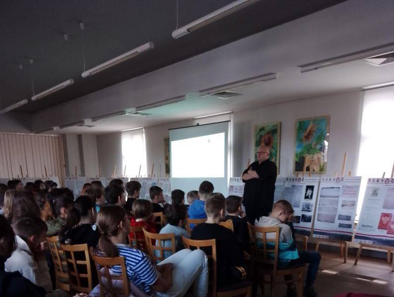 Uczniowie z zainteresowaniem i w skupieniu wysłuchali ciekawych informacji o swojej Małej Ojczyźnie.