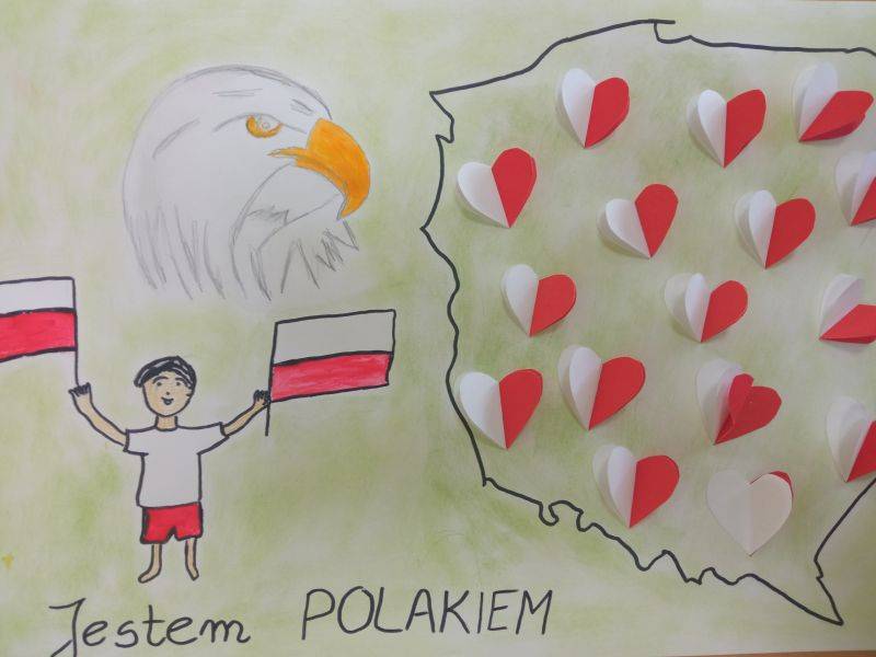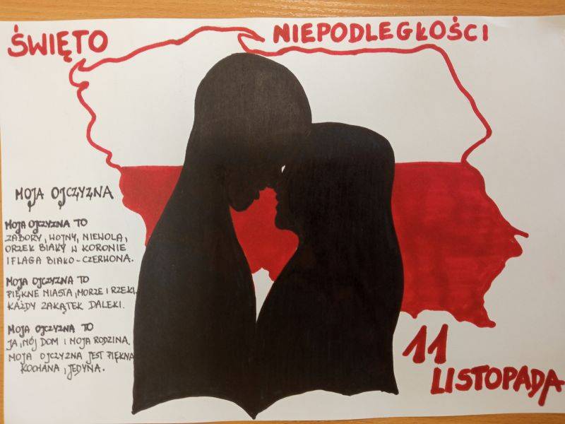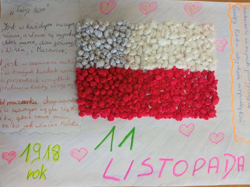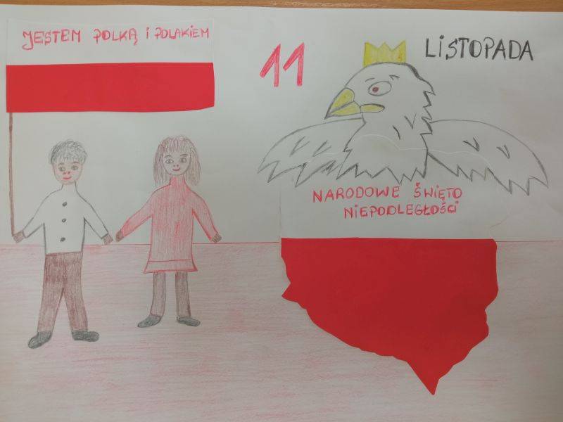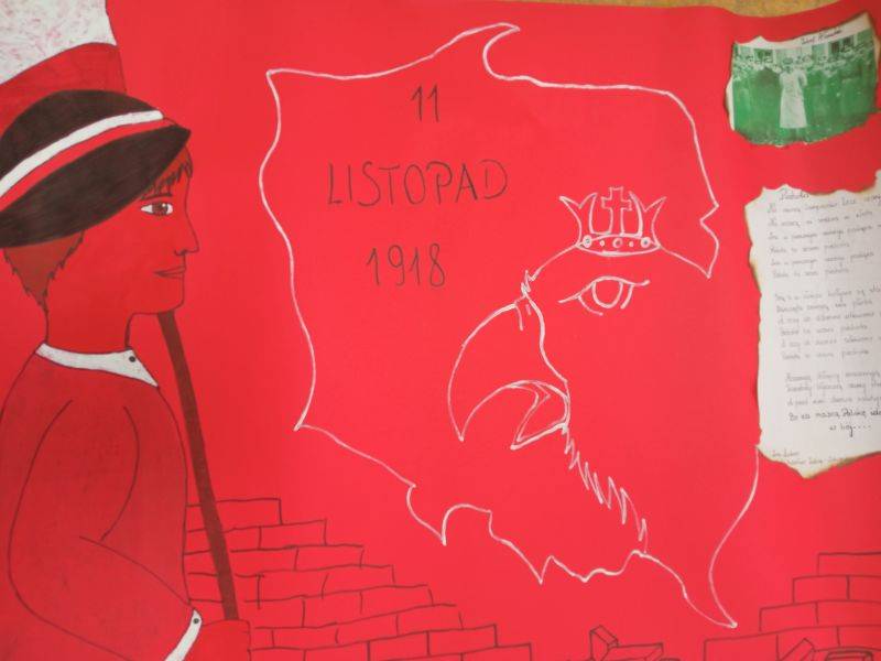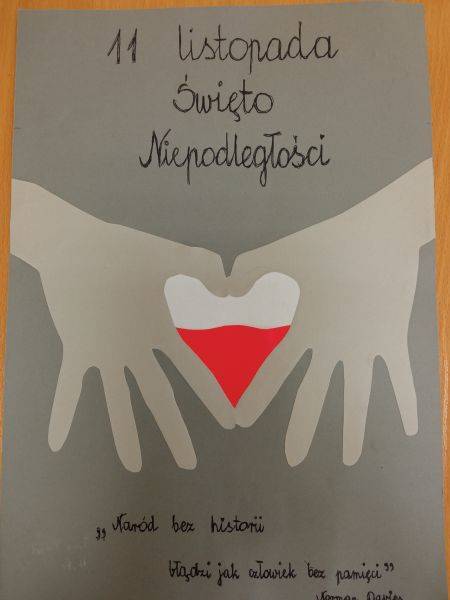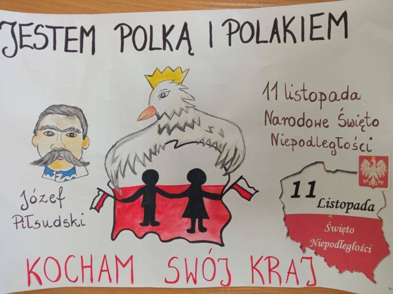 W Szkole Podstawowej im. Henryka Sienkiewicza w Gorzkowicach chętni uczniowie w związku z gminnymi obchodami 104. Rocznicy Odzyskania Niepodległości wykonali plakat na temat :