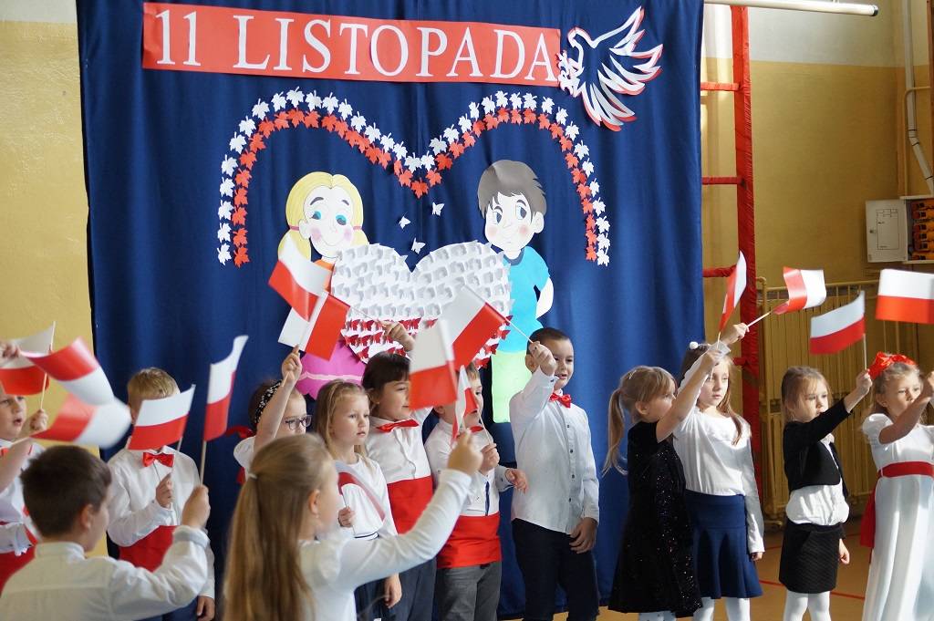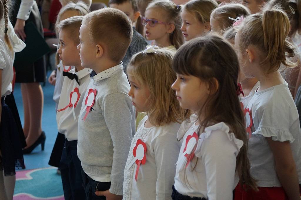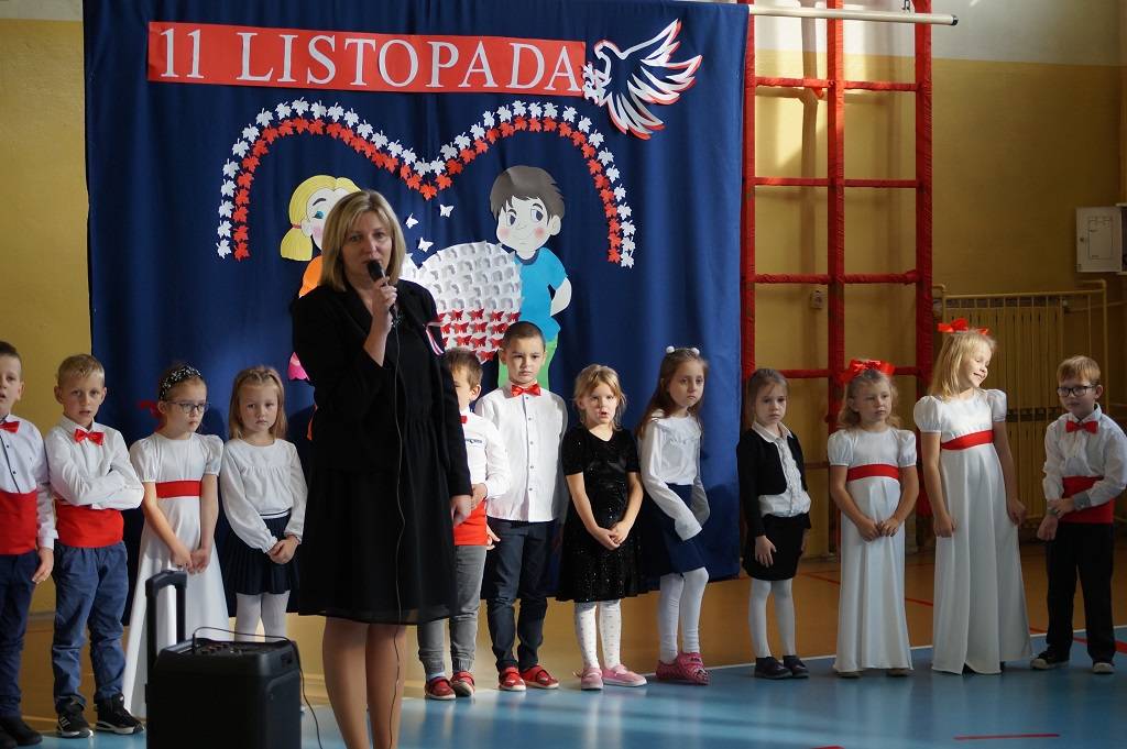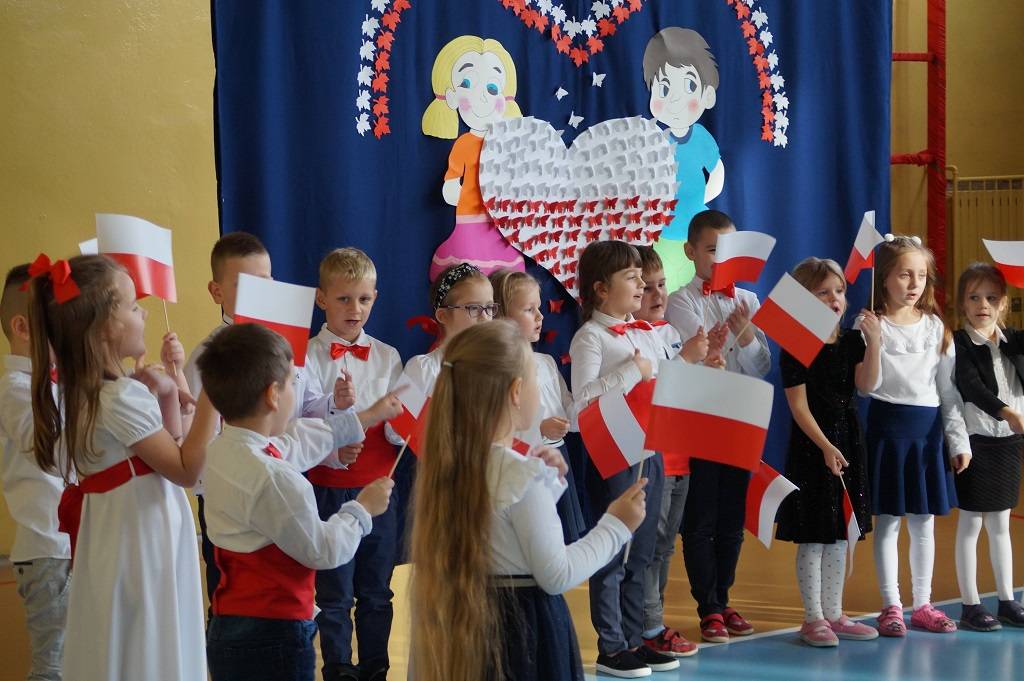 Uroczystość rozpoczęła pani Dyrektor Magdalena Rutka, która powitała zebranych gości: panią Sekretarz Gminy Gorzkowice Iwonę Kadir, pana Dyrektora Administracji Placówek Oświatowych w Gorzkowicach Daniela Słowika, panią Dyrektor Biblioteki Publicznej i Domu Kultury w Gorzkowicach Małgorzatę Gadecką, panią Dyrektor Szkoły Podstawowej w Gorzkowicach Magdalenę Treścińską - Niemczyk, panią Wicedyrektor Szkoły Podstawowej w Gorzkowicach Małgorzatę Sadurę, panią Kierownik Samorządowego Klubu Dziecięcego w Gorzkowicach Agnieszkę Sobczyk, wszystkie zebrane dzieci, oraz personel przedszkola. Następnie wszyscy wspólnie odśpiewaliśmy hymn narodowy. Podczas montażu słowno-muzycznego pt: ”Duma nas rozpiera, żeśmy Polakami”, dzieci recytowały wiersze patriotyczne opowiadające o historii Polski, śpiewały pieśni i tańczyły. Wszystkie dzieci tego dnia były ubrane na galowo, a na ich piersi widniały kotyliony w barwach narodowych.