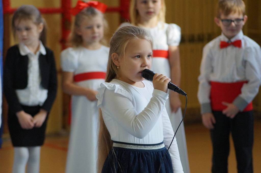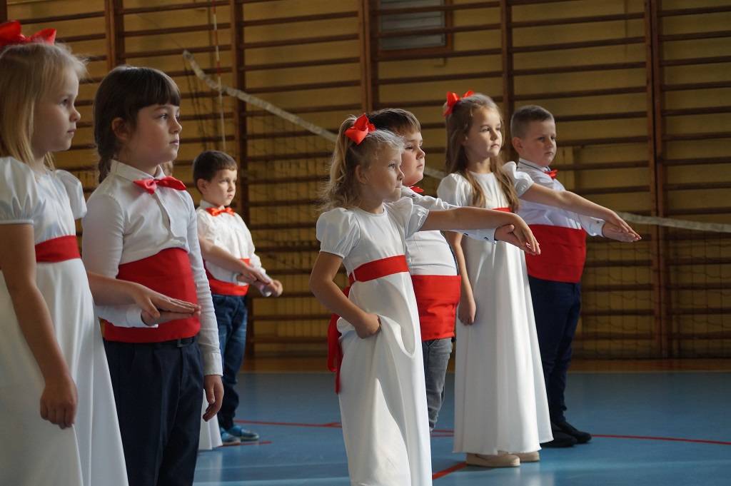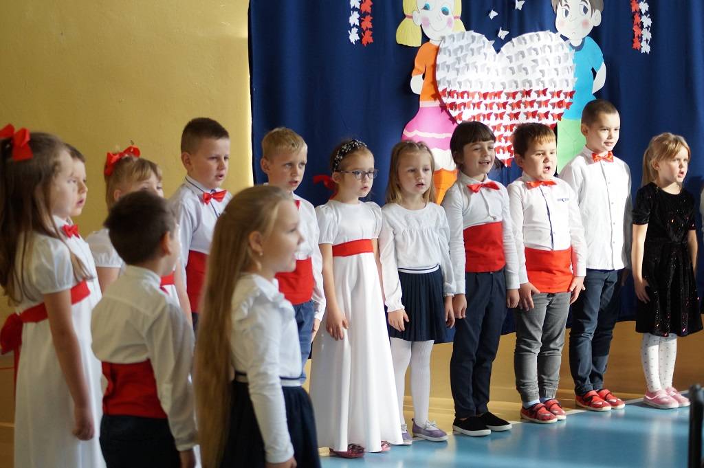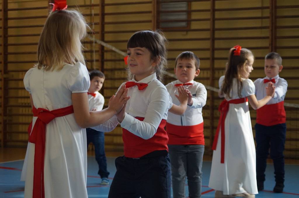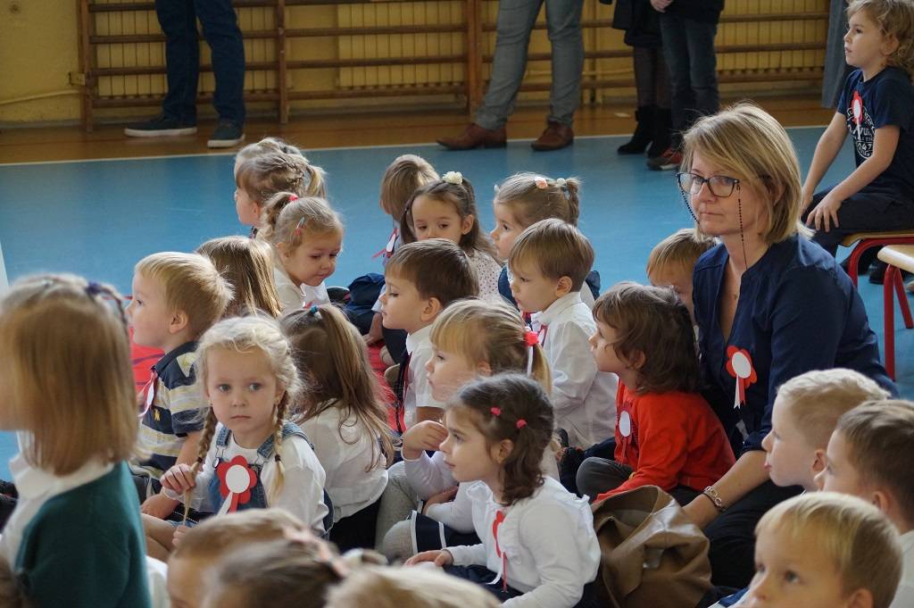 Uroczystość rozpoczęła pani Dyrektor Magdalena Rutka, która powitała zebranych gości: panią Sekretarz Gminy Gorzkowice Iwonę Kadir, pana Dyrektora Administracji Placówek Oświatowych w Gorzkowicach Daniela Słowika, panią Dyrektor Biblioteki Publicznej i Domu Kultury w Gorzkowicach Małgorzatę Gadecką, panią Dyrektor Szkoły Podstawowej w Gorzkowicach Magdalenę Treścińską - Niemczyk, panią Wicedyrektor Szkoły Podstawowej w Gorzkowicach Małgorzatę Sadurę, panią Kierownik Samorządowego Klubu Dziecięcego w Gorzkowicach Agnieszkę Sobczyk, wszystkie zebrane dzieci, oraz personel przedszkola. Następnie wszyscy wspólnie odśpiewaliśmy hymn narodowy. Podczas montażu słowno-muzycznego pt: ”Duma nas rozpiera, żeśmy Polakami”, dzieci recytowały wiersze patriotyczne opowiadające o historii Polski, śpiewały pieśni i tańczyły. Wszystkie dzieci tego dnia były ubrane na galowo, a na ich piersi widniały kotyliony w barwach narodowych.