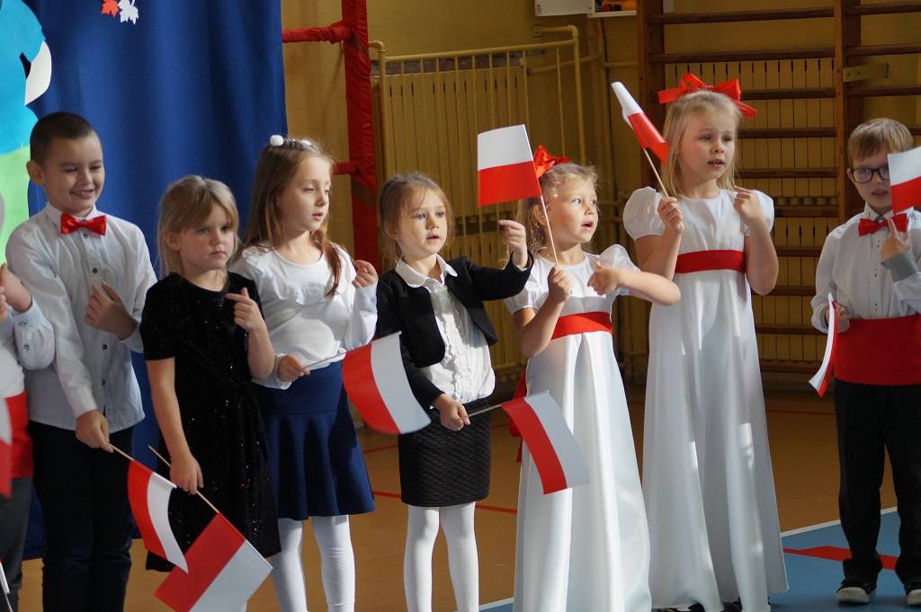 9 listopada 2022roku w Przedszkolu Samorządowym w Gorzkowicach odbyły się uroczyste obchody Narodowego Święta Niepodległości. Przygotowaniem do tego ważnego dnia był cykl zajęć w każdej grupie, których celem było kształtowanie miłości i przywiązania do kraju ojczystego, jego kultury i tradycji oraz budowanie tożsamości i wspólnoty narodowej. Przedszkolaki poznały symbole i barwy narodowe oraz historię dochodzenia Polski do wolności. Dzieci miały możliwość wysłuchania pieśni i wierszy patriotycznych oraz poznania tradycji ludowych. Kulminacją podjętych działań była akademia upamiętniająca 104 rocznicę odzyskania przez Polskę niepodległości, przygotowana przez dzieci z grupy Muchomorki.