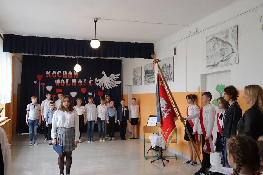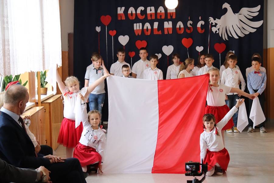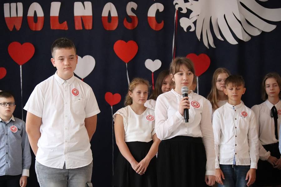 Słowa tej piosenki mogliśmy usłyszeć w Szkole Podstawowej w Krzemieniewicach podczas akademii przygotowanej z okazji 104. rocznicy odzyskania niepodległości przez Polskę.