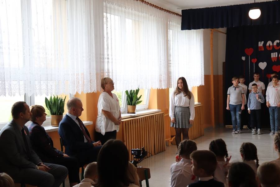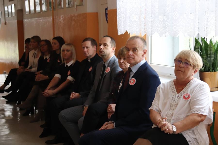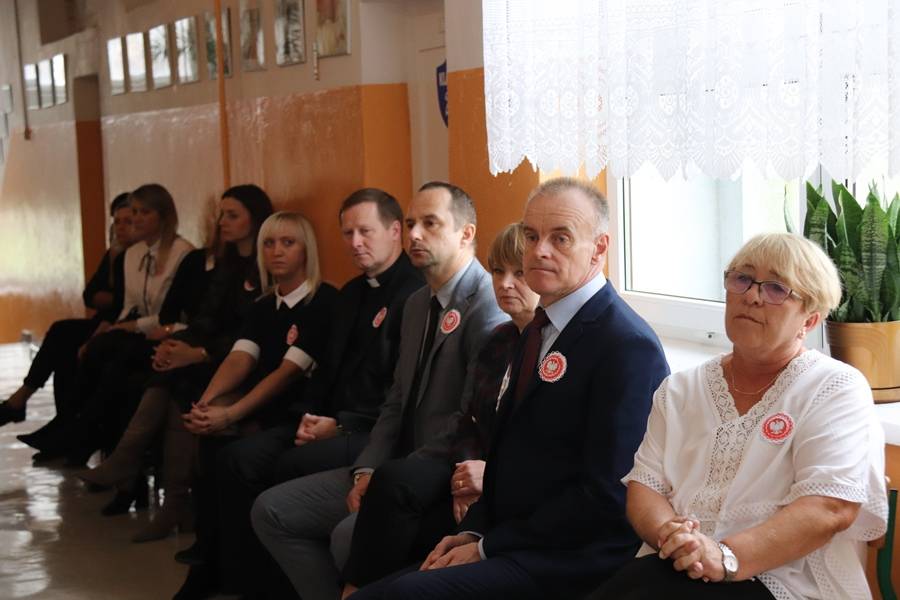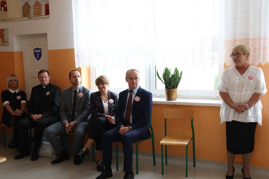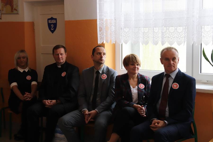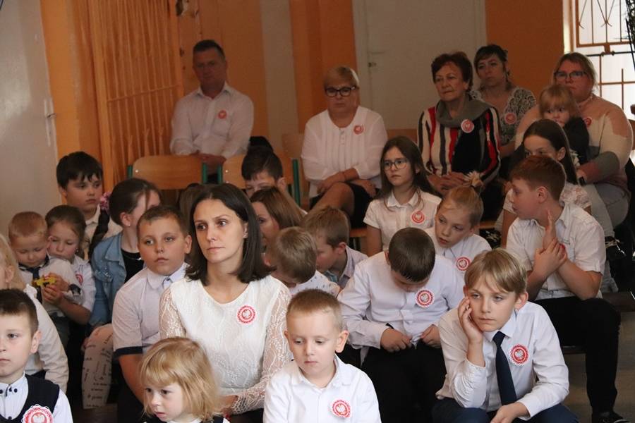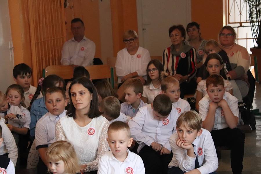 Na uroczystość przybyli zaproszeni goście: Wójt Gminy Gorzkowice Pan Alojzy Włodarczyk, Dyrektor Biblioteki Publicznej i Domu Kultury w Gorzkowicach Pani Małgorzata Gadecka, Dyrektor Administracji Placówek Oświatowych Pan Daniel Słowik oraz rodzice. Wszystkich zebranych powitała Dyrektor Szkoły Pani Elżbieta Włodarczyk.