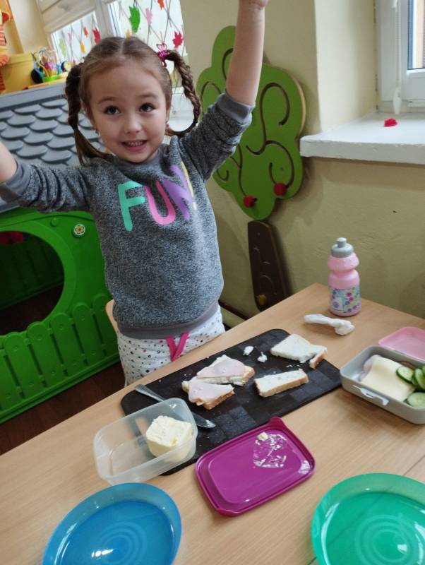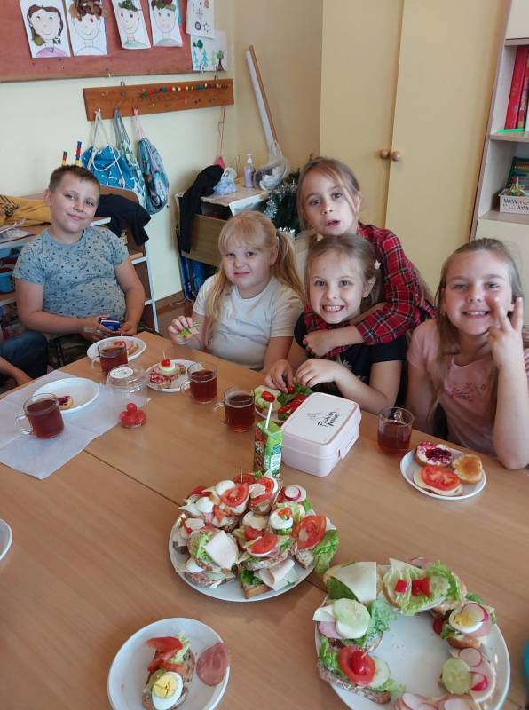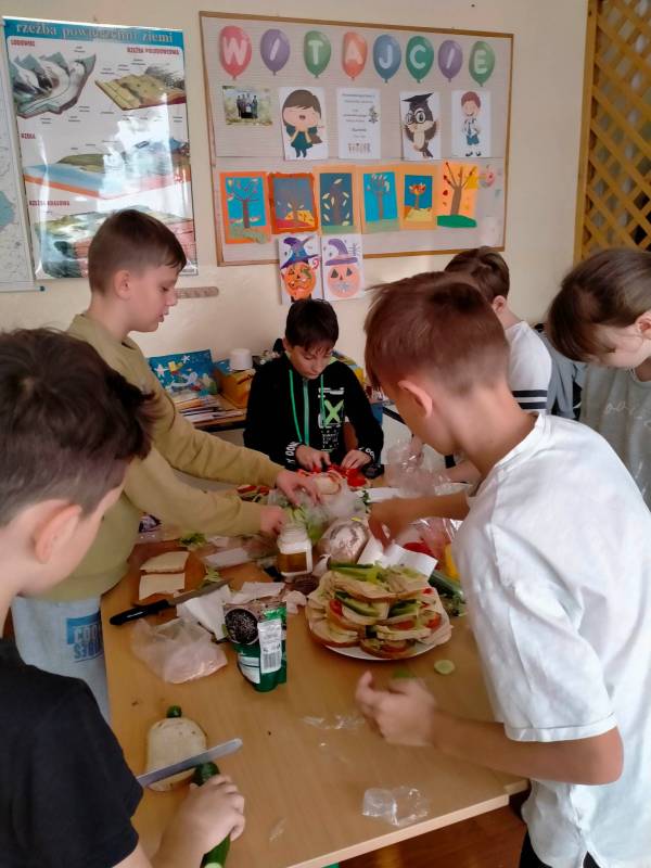 8 listopada obchodzony jest na świecie jako Dzień Zdrowego Jedzenia i Gotowania, a w Polsce - jako Dzień Zdrowego Śniadania. W tym dniu prowadzona jest akcja edukacyjna pod hasłem: „Śniadanie Daje Moc!”. Jej głównym celem jest uświadomienie rodzicom, dzieciom i nauczycielom, że śniadanie to najważniejszy posiłek w ciągu dnia. Wszyscy uczniowie z naszej szkoły przygotowali wspólne z wychowawcami smakowite kanapki. Zdrowe śniadanie poprzedzone było wizją pani dietetyk.