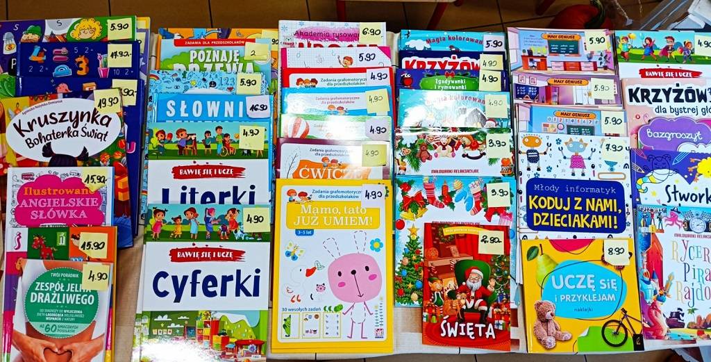 W porozumieniu z Księgarnią i Hurtownią Taniej Książki z Żychlina w ostatnim czasie odbył się w naszym przedszkolu kiermasz książki. Były to książki o różnej tematyce. Począwszy od kolorowanek i łamigłówek, poradników, bajek, baśni dla dzieci, aż po encyklopedie.