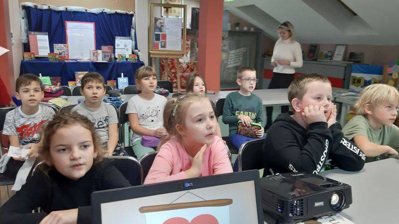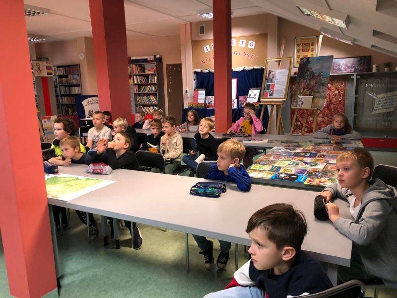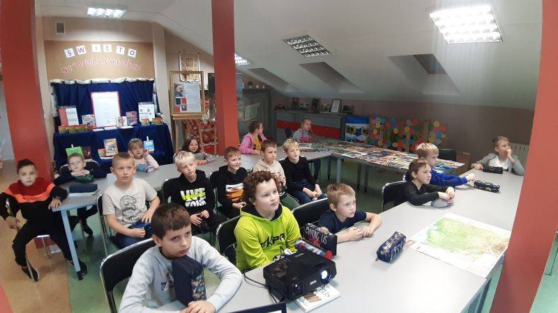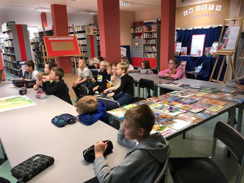 Z okazji Święta Niepodległości biblioteka szkolna zaprosiła uczniów klas drugich na lekcje patriotyzmu.