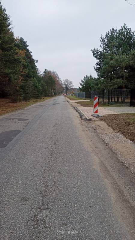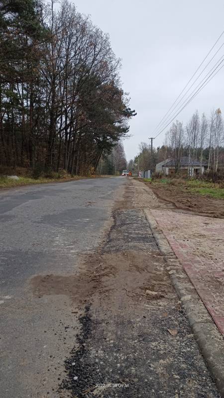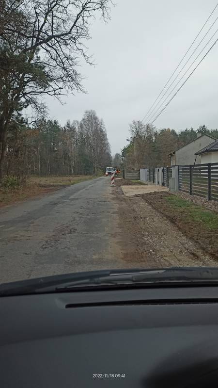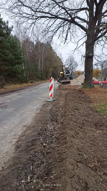 Trwają roboty budowlane w zakresie budowy zjazdów i utwardzenia pobocza w miejscowości Pieńki Gorzkowskie.