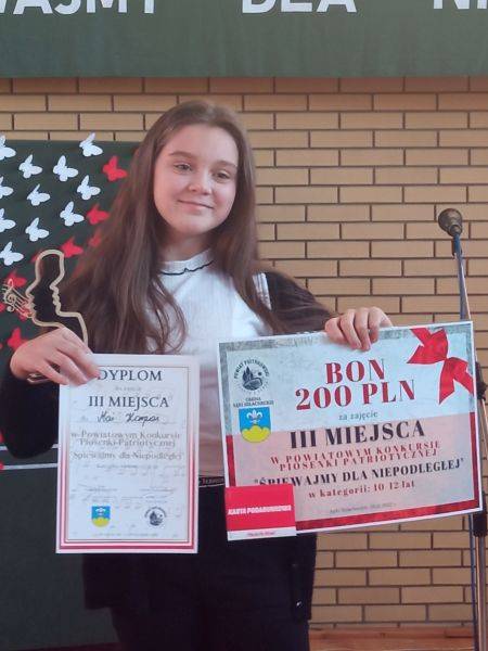 Maja Korpas kl. 6c z utworem „ Wojenko, wojenko” uczennica zdobyła III miejsce