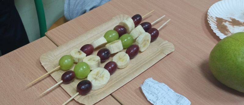 W ramach zajęć Pani Renata Ziemba przeprowadziła pogadankę na temat korzyści płynących ze spożywania owoców, warzyw, a także mleka i przetworów mlecznych.