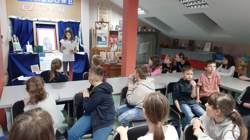 Wśród wybranych utworów znalazły się: ,,Świtezianka”, ,,Powrót taty’’ oraz ,,Pani Twardowska”. Czytanie odbywało się tradycyjnie w bibliotece. Dziękujemy uczestnikom za udział w akcji i cieszymy się, że mogliśmy zanurzyć się choć na chwilę w świat poezji romantycznej.