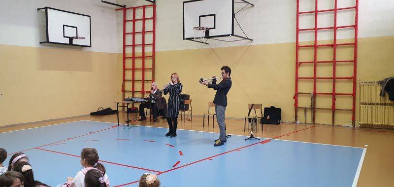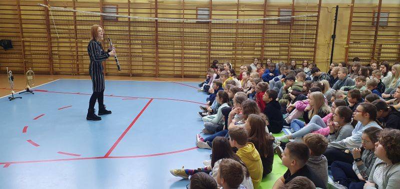 24 listopada 2022r. uczniowie Szkoły Podstawowej im. H. Sienkiewicza mieli możliwość uczestniczenia w Koncercie filharmonii. Tematem tego spotkania była muzyka filmowa oraz przyjaźń. Uczniowie wsłuchali się w dźwięki najbardziej znanych utworów muzycznych skomponowanych do filmów, m.in. "Blues Brothers" i "Przyjaciele". Ponadto muzycy zapoznali uczniów z budową instrumentów takich jak obój oraz trąbka. Na koniec przy dźwiękach pięknego, ponadczasowego utworu Stinga "Shape of My Heart" uczestnicy koncertu mogli zanurzyć się w sennych marzeniach.
