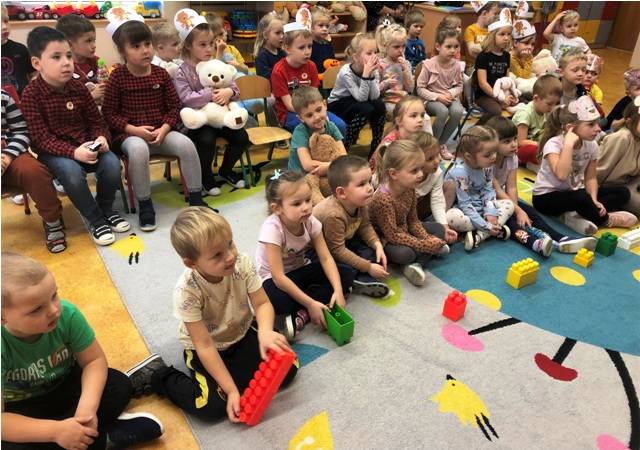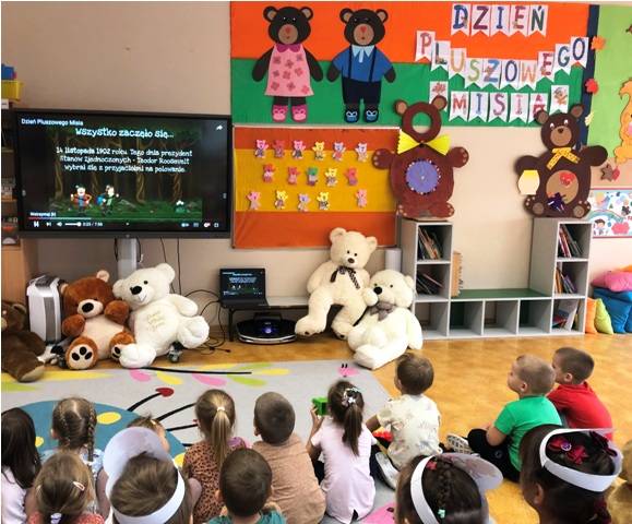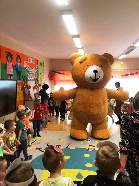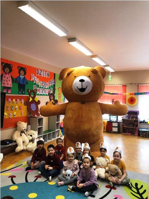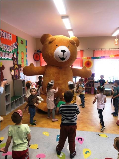 25 listopada przedszkolaki z wszystkich grup w naszym przedszkolu uczestniczyły w obchodach Światowego Dnia Pluszowego Misia. Każde dziecko przyniosło do przedszkola swojego ukochanego misia. Do misiowej krainy dzieci zostały zaproszone przez olbrzymiego misia, który odwiedził je właśnie dziś! Wszystkie wspólnie recytowały wiersze o misiach, bawiły się przy piosenkach: ”Miś” Piotra Rubika, "Dwa malutkie misie" B. Abramowicza, "Jadą, jadą misie", itp. Dzieci uczestniczyły w lekcji bibliotecznej zorganizowanej przez Bibliotekę ze Szkoły Podstawowej w Gorzkowicach, gdzie m.in. dzięki uczennicom z klasy 8d poznały historię święta, przedstawioną w formie teatru cieni. Dla dzieci przygotowano wiele atrakcji: zabawy ruchowe, plastyczne, konkursy, quizy, zgadywanki, śpiewanie piosenek, misiowe tańce.