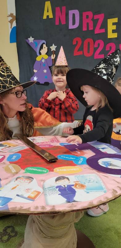 Wigilia św. Andrzeja, czyli popularne andrzejki, od bardzo dawna są tradycyjnym dniem wróżb. My również chcieliśmy poznać uroki wróżb i właśnie z tego powodu, 30 listopada wzięliśmy udział w zabawie andrzejkowej. Bawiliśmy się naprawdę wyśmienicie, a każda nowa wróżba wzbudzała w nas ogromną ciekawość. Nastrojowa muzyka i „czarodziejskie” dekoracje wprowadziły nas w świat magii. Wspólnie z wróżką wróżyliśmy oraz czarowaliśmy, by poznać to, co czeka nas w przyszłości. Mamy nadzieję, że tak wyśmienita zabawa andrzejkowa powtórzy się również w przyszłym roku i dostarczy nam tyle samo, a może nawet więcej, radosnych przeżyć.