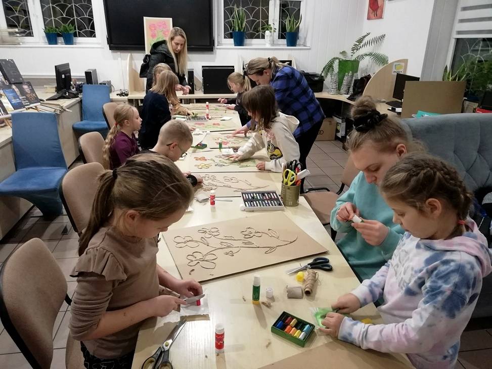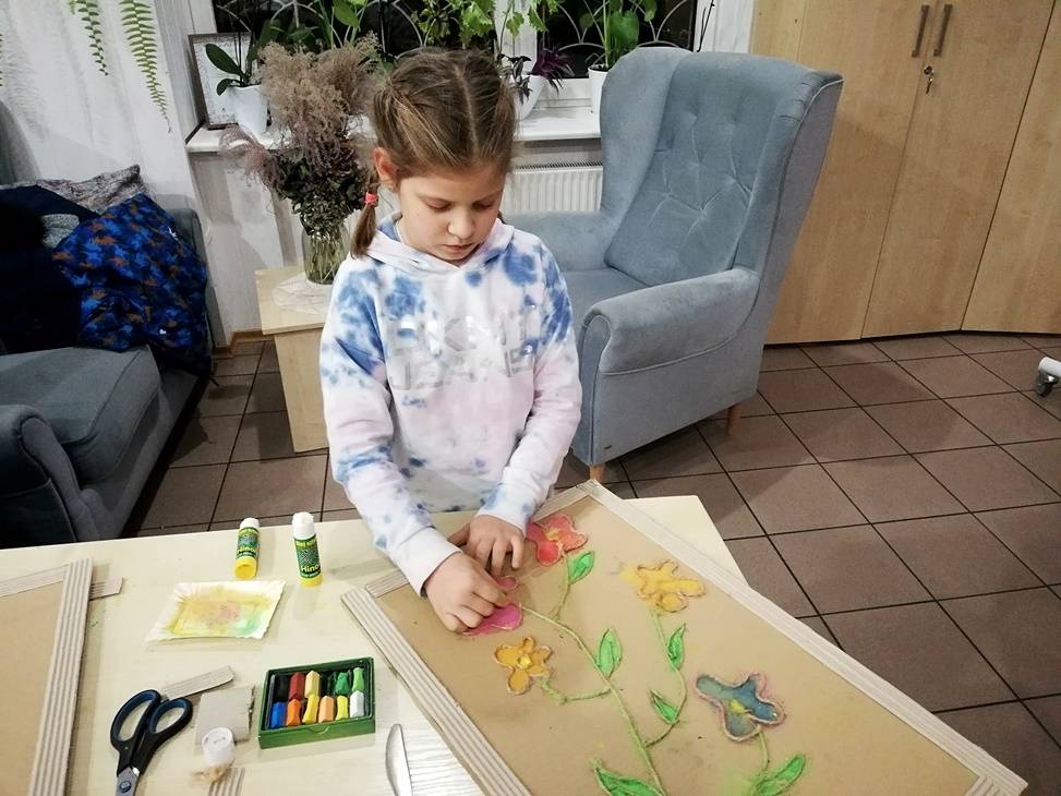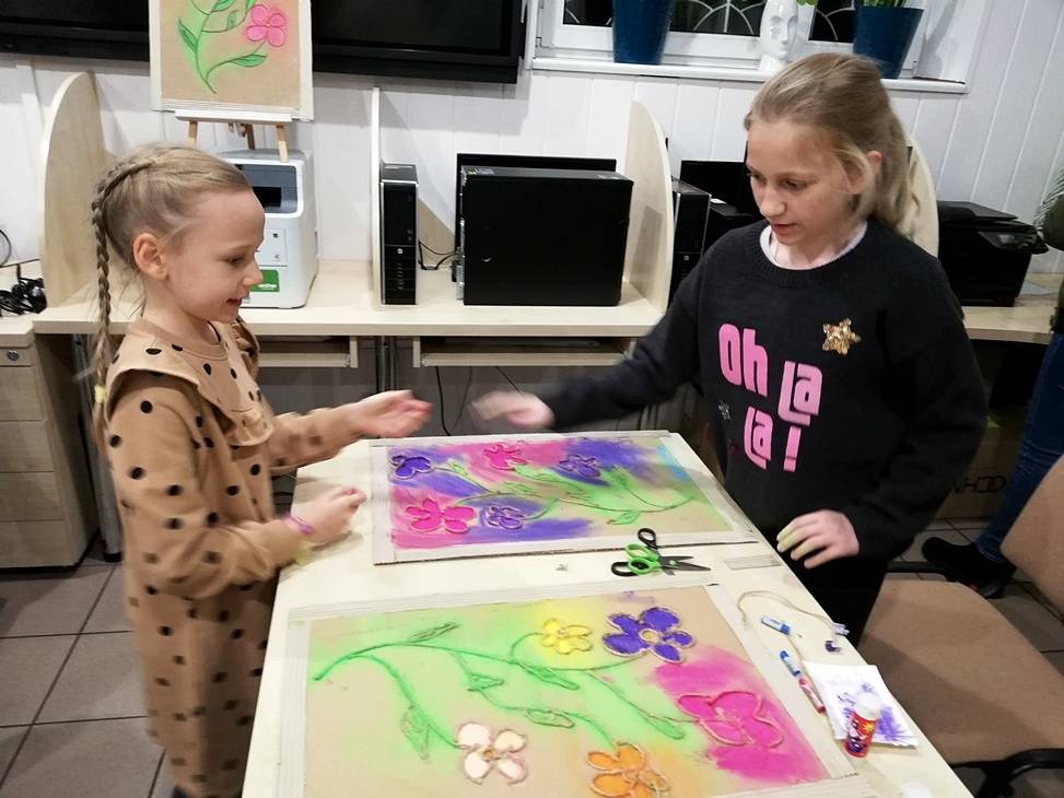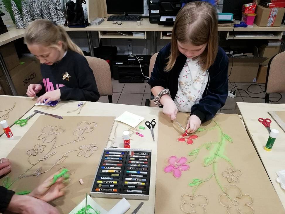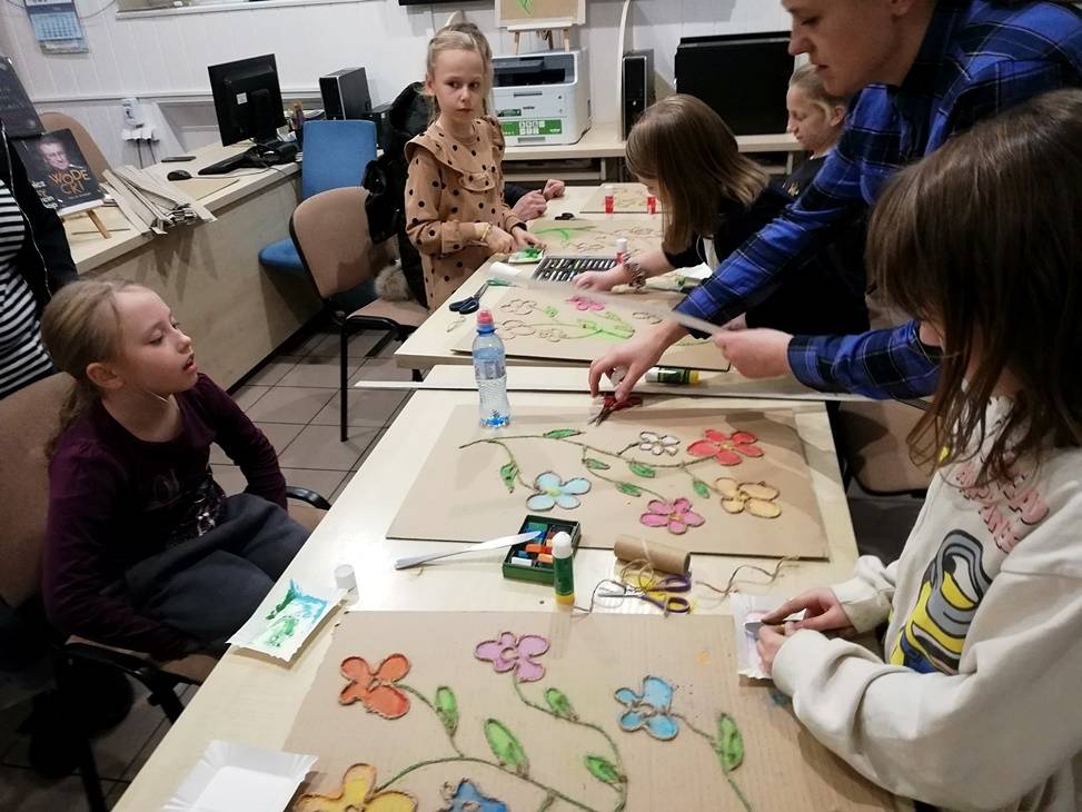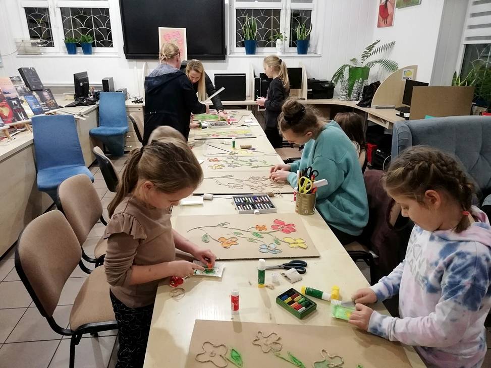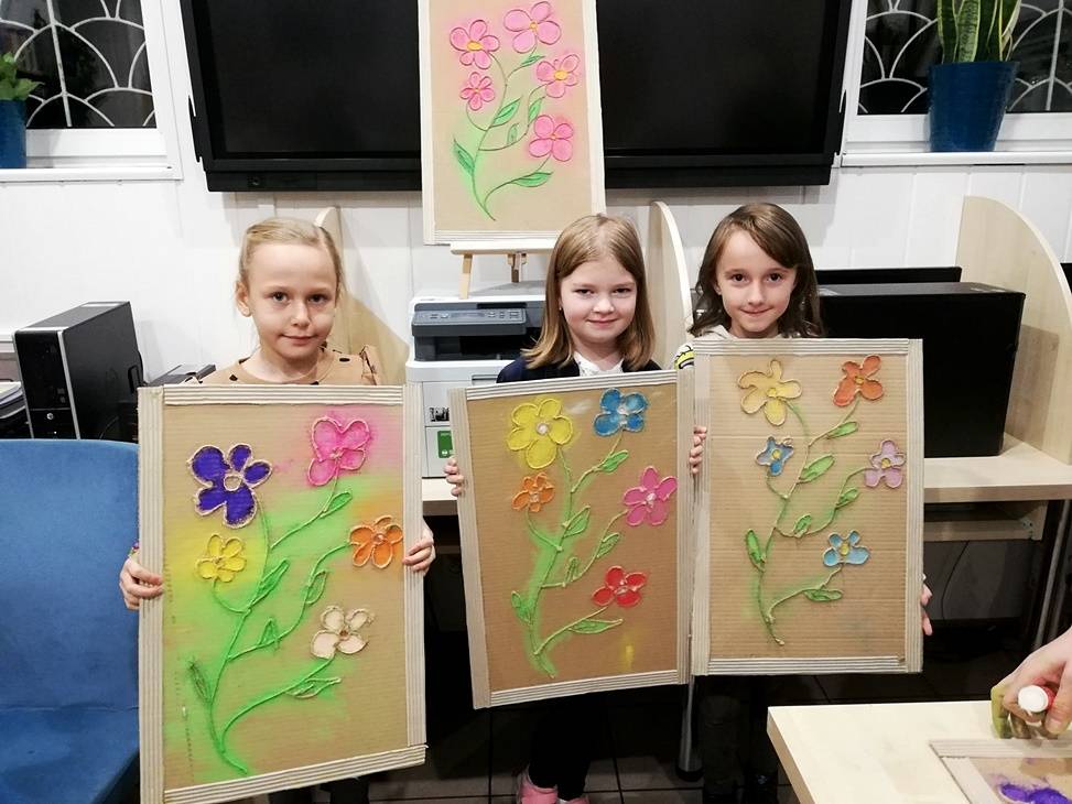 We wtorek czytelnia biblioteki w Gorzkowicach po raz kolejny zamieniła się w pracownię plastyczną, w której swoje prace tworzą dzieci, wspierane przez rodziców i bibliotekarzy. Tym razem do wykonania obrazów wykorzystaliśmy karton, sznurek i pastele. Klejenie sznurka i wypełnianie pól skruszonymi pastelami wymagało od uczestników warsztatów dużej precyzji i staranności. Całości dopełniła rama z tektury falistej. Kolorowe obrazy są odzwierciedleniem pasji i talentu dzieci. Na kolejne, mikołajkowe warsztaty zapraszamy już 6 grudnia, o godz.16.00.
