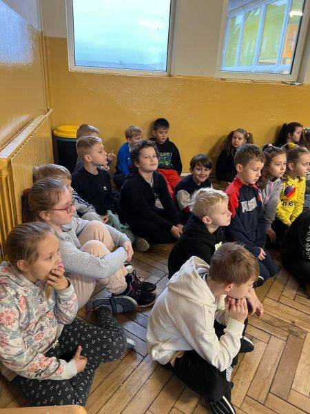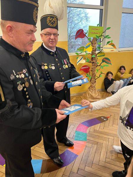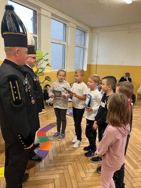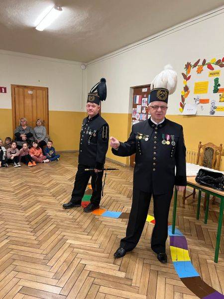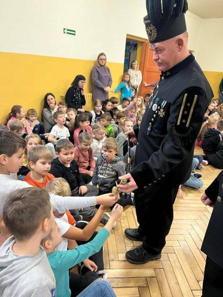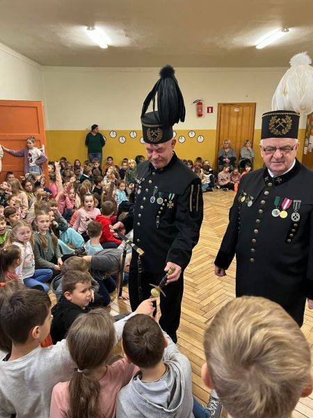 Panowie opowiedzieli o ciężkiej i niebezpiecznej pracy w kopalni, szczegółowo opisali strój górniczy, przedstawili symbolikę piór na czapce oraz symbolikę górniczego godła. Uczniowie dowiedzieli się, w jaki sposób wydobywany jest węgiel brunatny oraz jak bardzo jest nam potrzebny w codziennym życiu. Mieli również okazję zapytać górników o interesujące ich sprawy, wydarzenia z życia kopalni i ciekawostki związane z górniczą pracą.