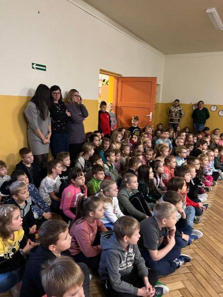 Na zakończenie uczniowie złożyli życzenia i wręczyli górnikom kartki. Goście natomiast obdarowali wszystkie dzieci słodyczami.