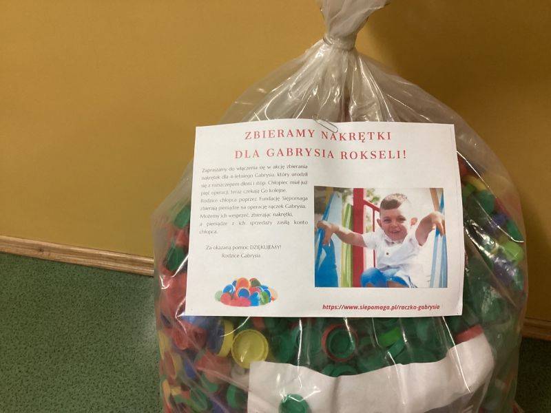Rozpoczęta na początku listopada w Szkole Podstawowej w Gorzkowicach zbiórka nakrętek w klasach została zakończona. Uzyskane ze sprzedaży plastikowych elementów pieniądze przeznaczone będą na pokrycie kosztów leczenia, rehabilitacji oraz niezbędnego sprzętu dla Gabrysia Rokseli, chłopca który urodził się z rozszczepem dłoni i stóp. Celem akcji było ukazanie dzieciom i młodzieży jak ważne jest niesienie pomocy oraz uwrażliwienie ich na potrzeby innych ludzi.