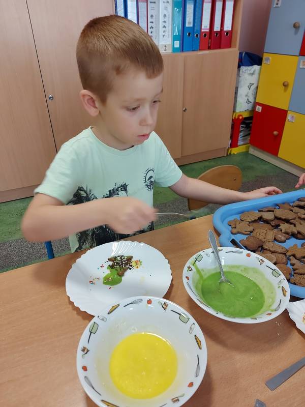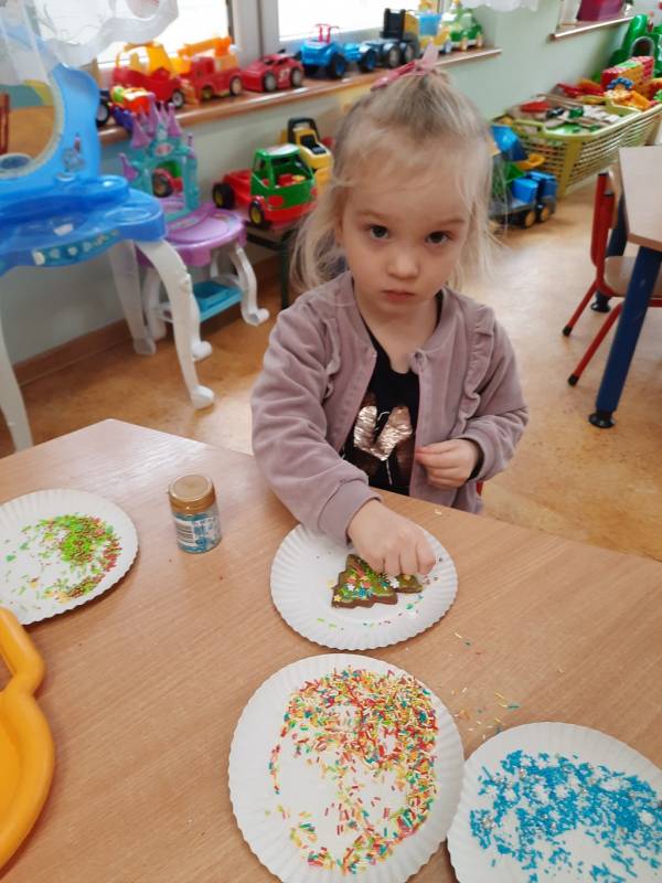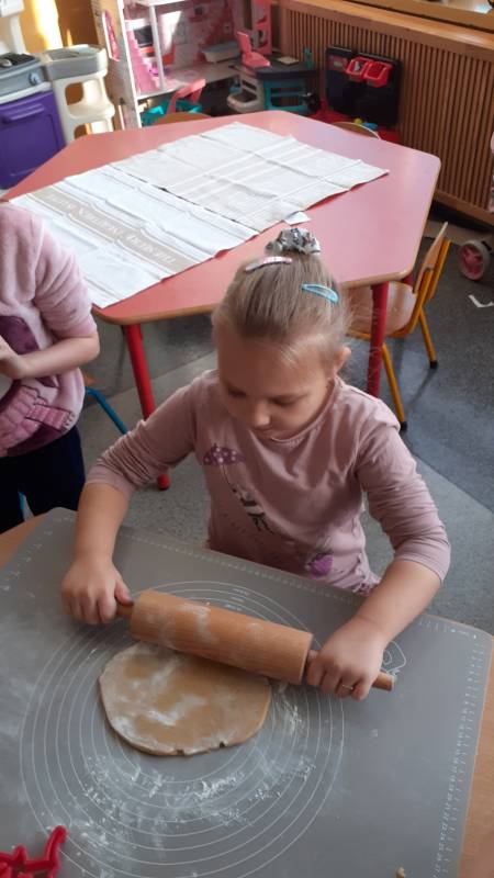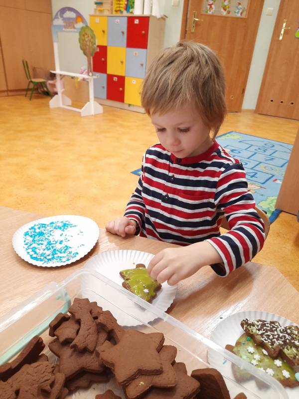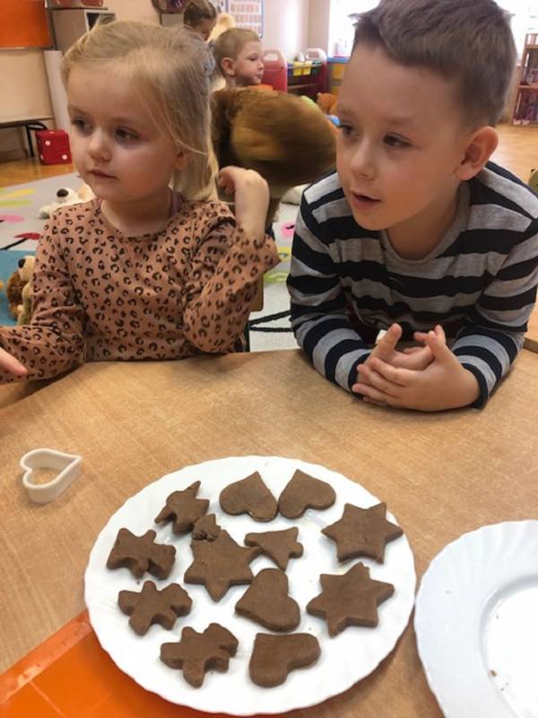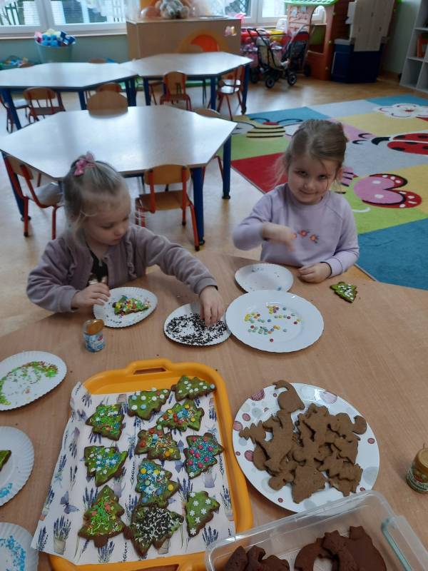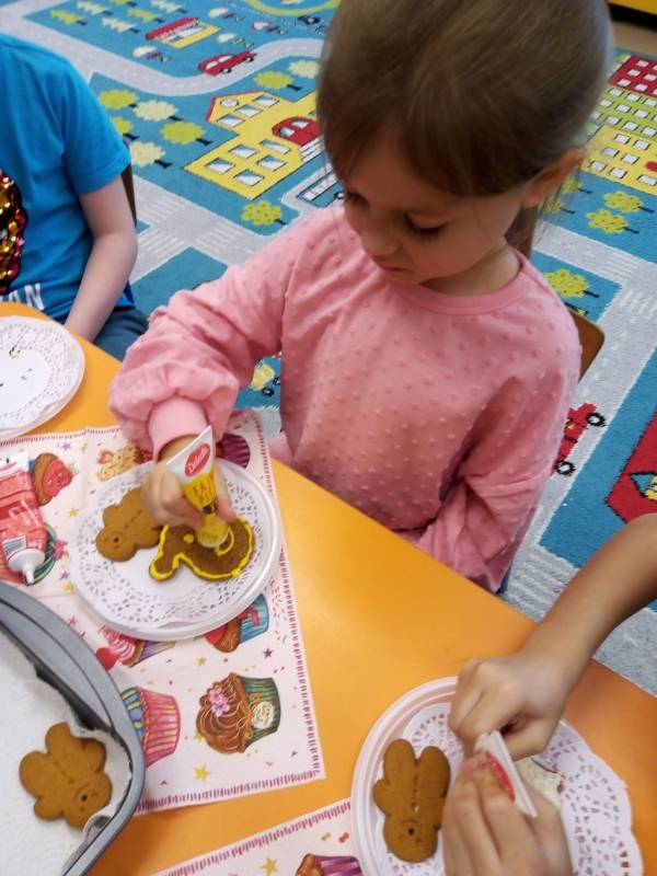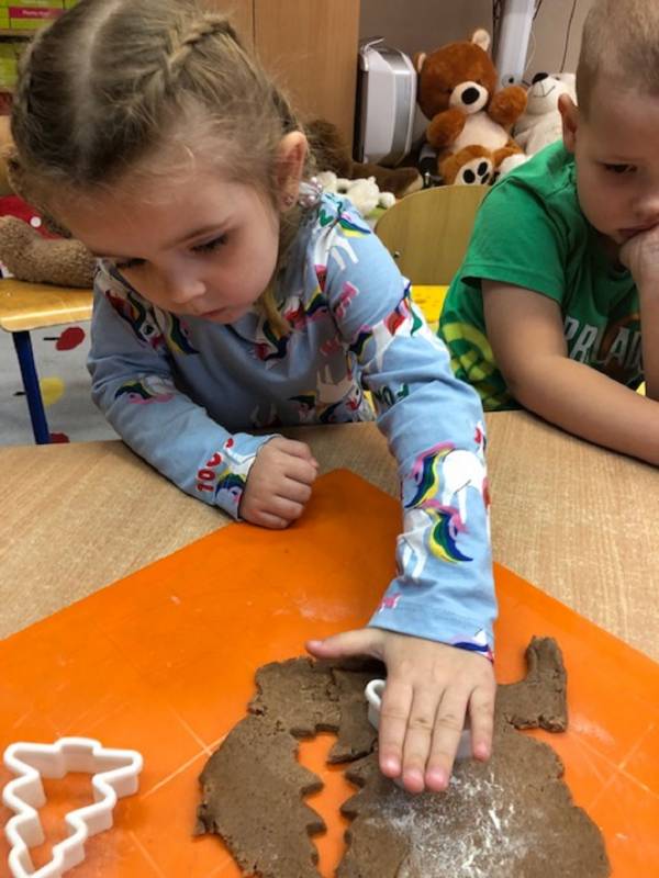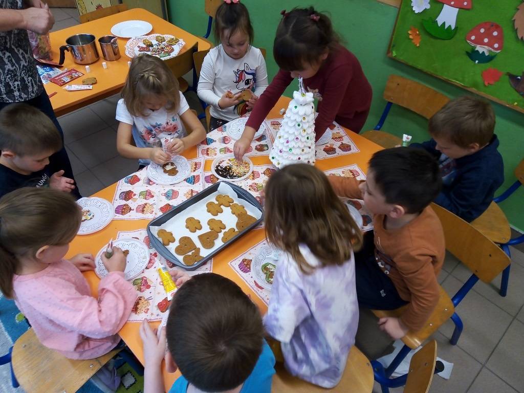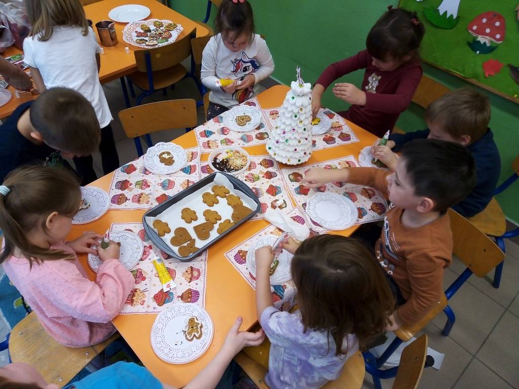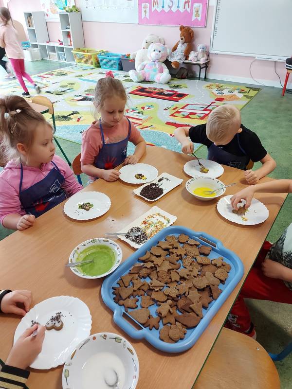 Święta tuż, tuż… czas więc na pieczenie świątecznych pierników. W ubiegłym tygodniu w Przedszkolu Samorządowym w Gorzkowicach przez cały tydzień unosił się zapach przypraw korzennych. Przedszkolaki wraz z nauczycielkami, zgodnie z przedświąteczną tradycją upiekły pyszne świąteczne pierniczki. Praca z przygotowaniem wypieków szła sprawnie i bez trudu. Przedszkolaki uczestniczyły w wykrawaniu wybranych kształtów pierników: choinek, gwiazdek, bałwanków, aniołków. Następnie słodkie ciasteczka piekły się w przedszkolnej kuchni. Po przedszkolu zaczął unosić się wspaniały zapach pieczonych pierniczków, który wprawił wszystkich w świąteczny nastrój. Gdy pierniczki były już gotowe dzieci przystąpiły do ich dekorowania lukrowymi pisakami i barwnymi posypkami. Zabawa była doskonała, a pierniczki wyszły przepiękne. Każdy z pierników był zupełnie inny. Po udekorowaniu, każde z dzieci miało okazję skosztować swojego dzieła. Takie działania sprawiły dzieciom wiele miłych i atrakcyjnych przeżyć
