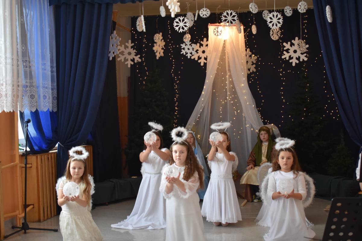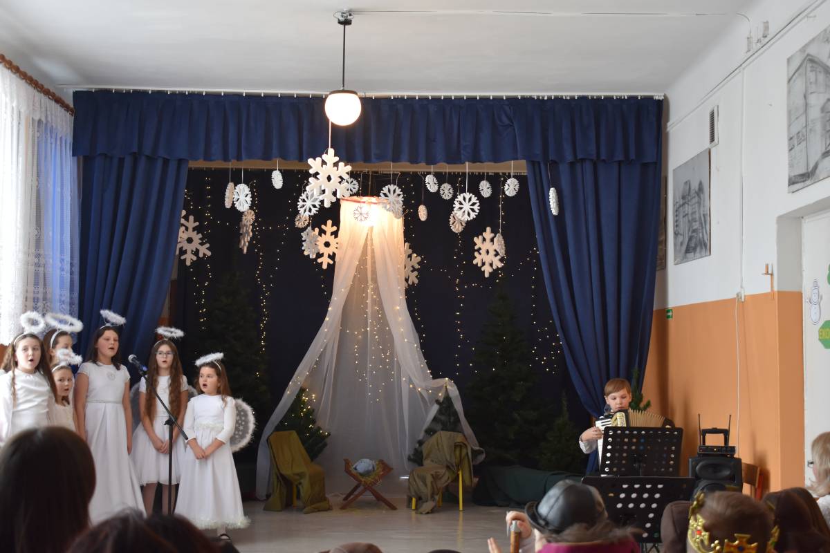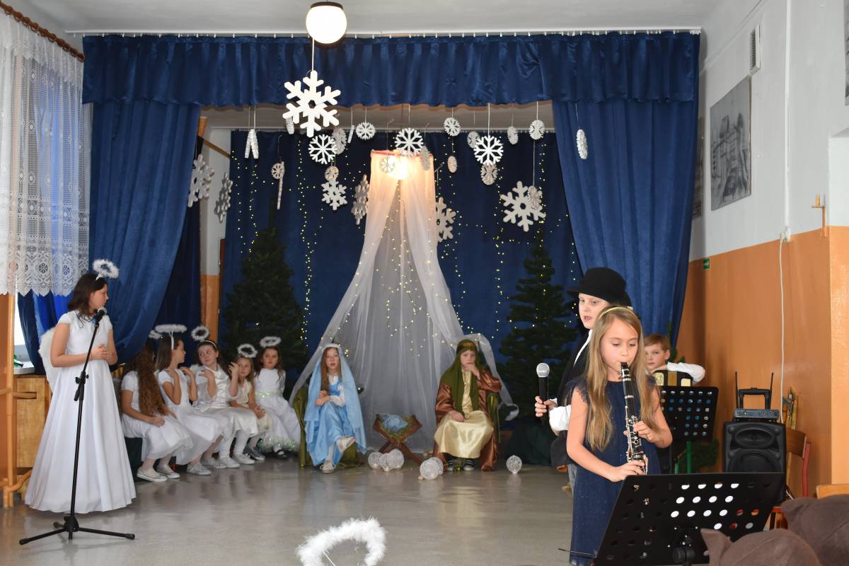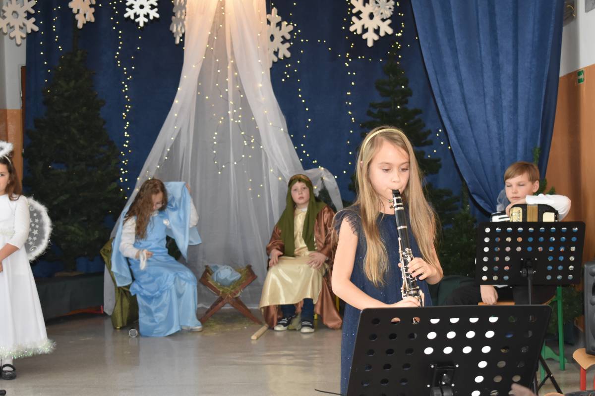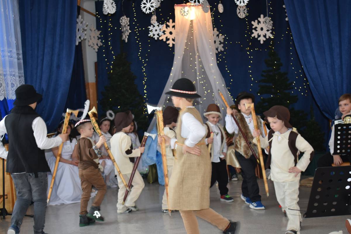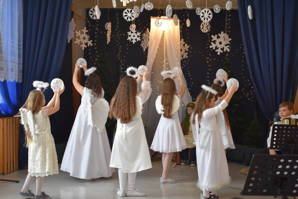 Młodzi artyści przedstawili historię sprzed ponad dwóch tysięcy lat uświetnioną pastorałkami, grą na klarnecie i akordeonie, tańcem aniołów i pasterzy.