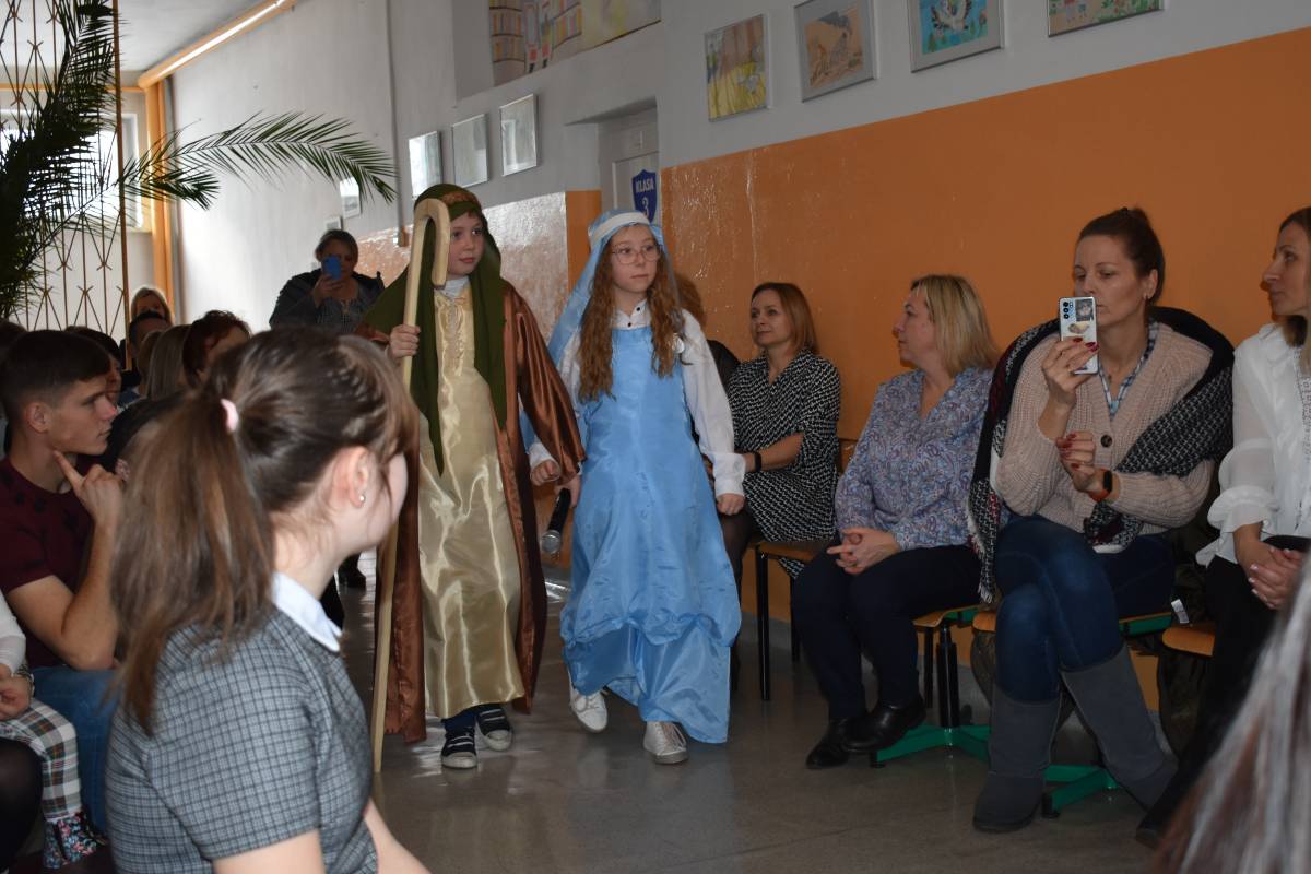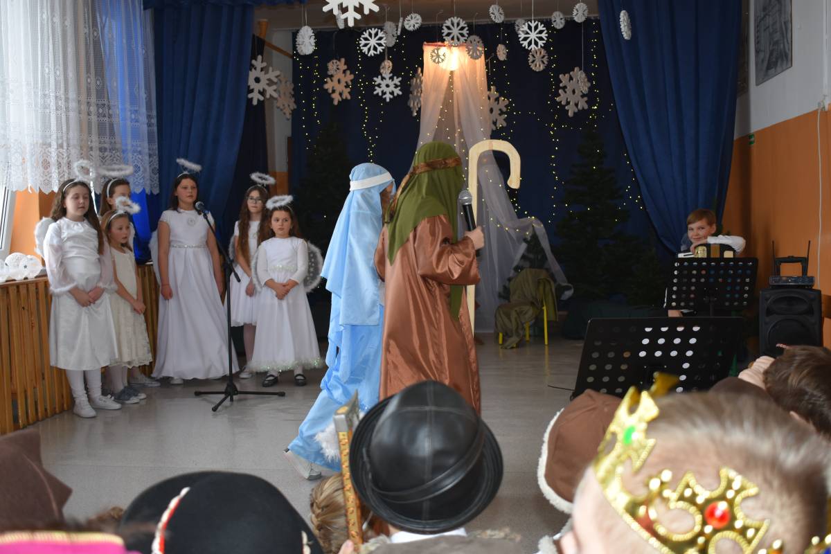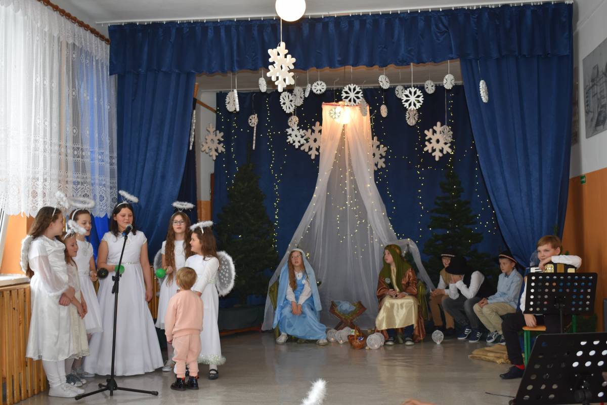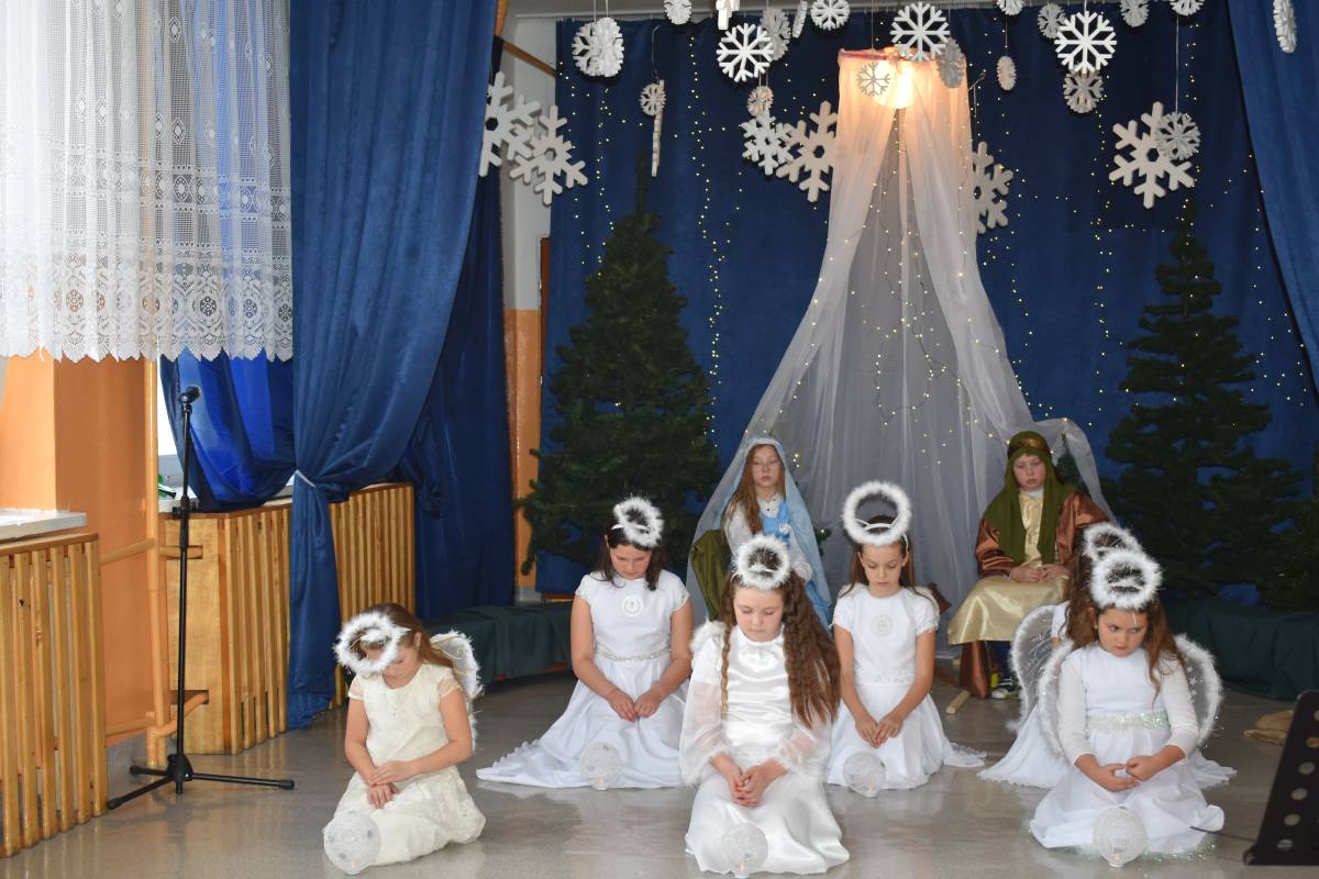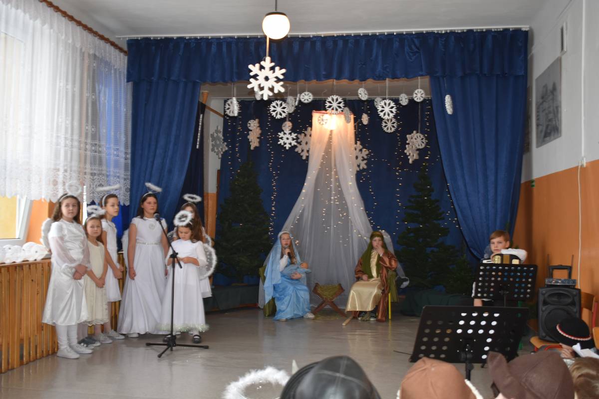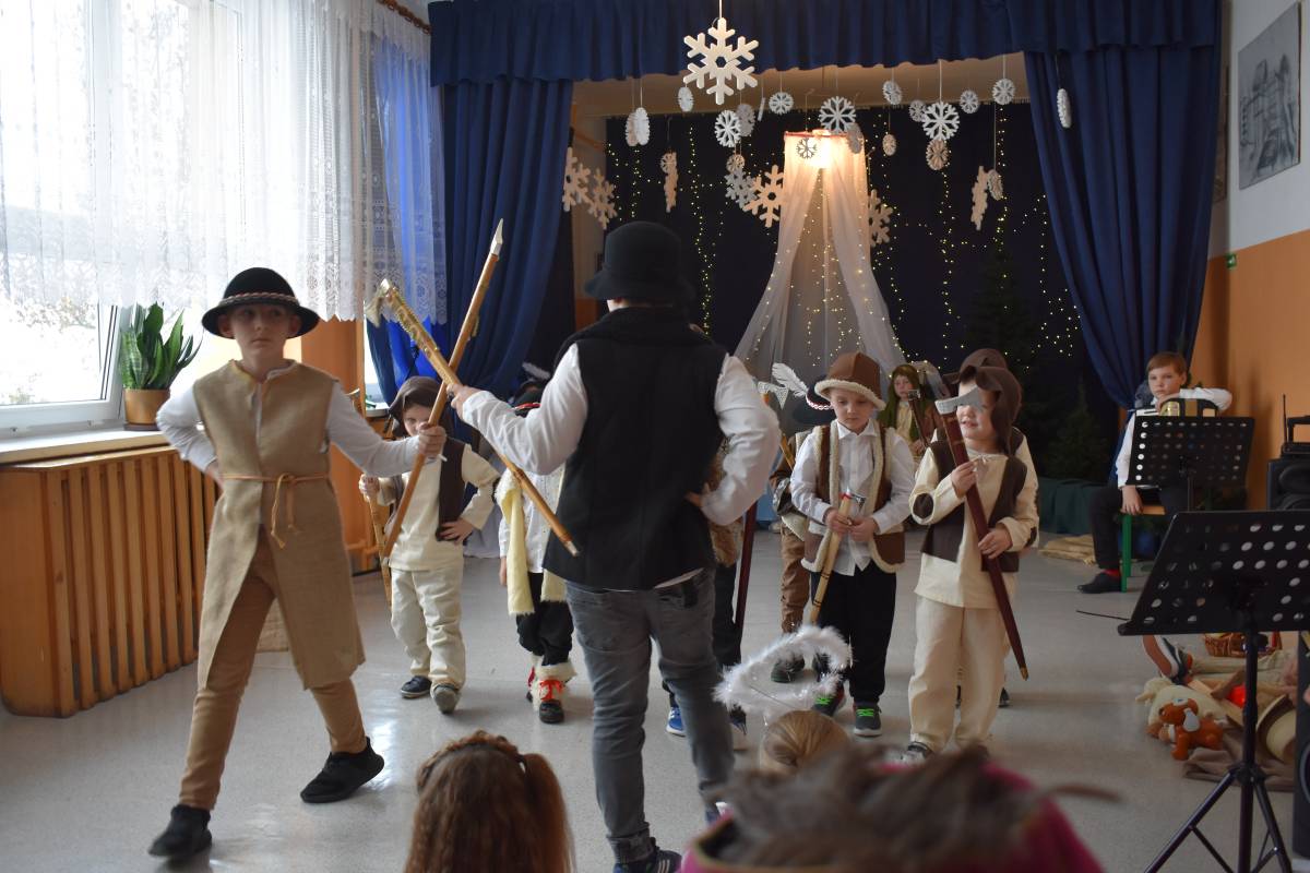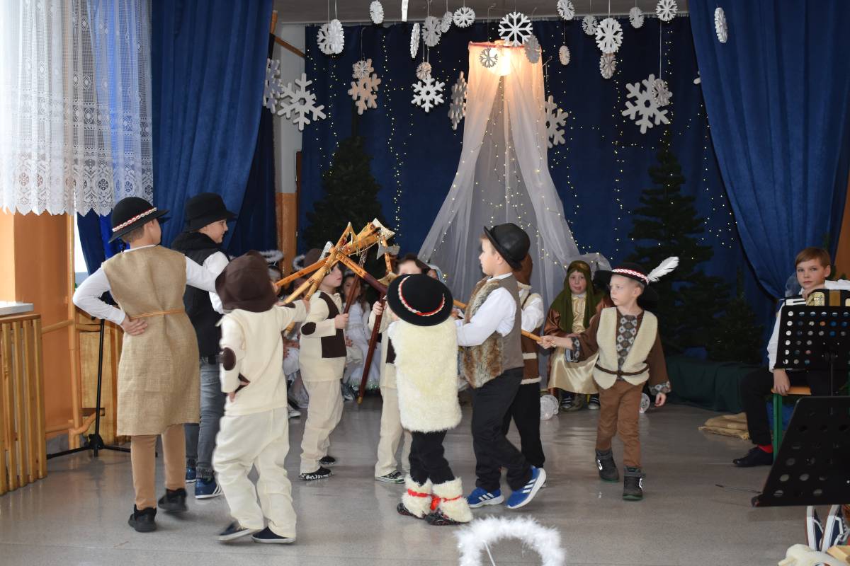 Młodzi artyści przedstawili historię sprzed ponad dwóch tysięcy lat uświetnioną pastorałkami, grą na klarnecie i akordeonie, tańcem aniołów i pasterzy.
