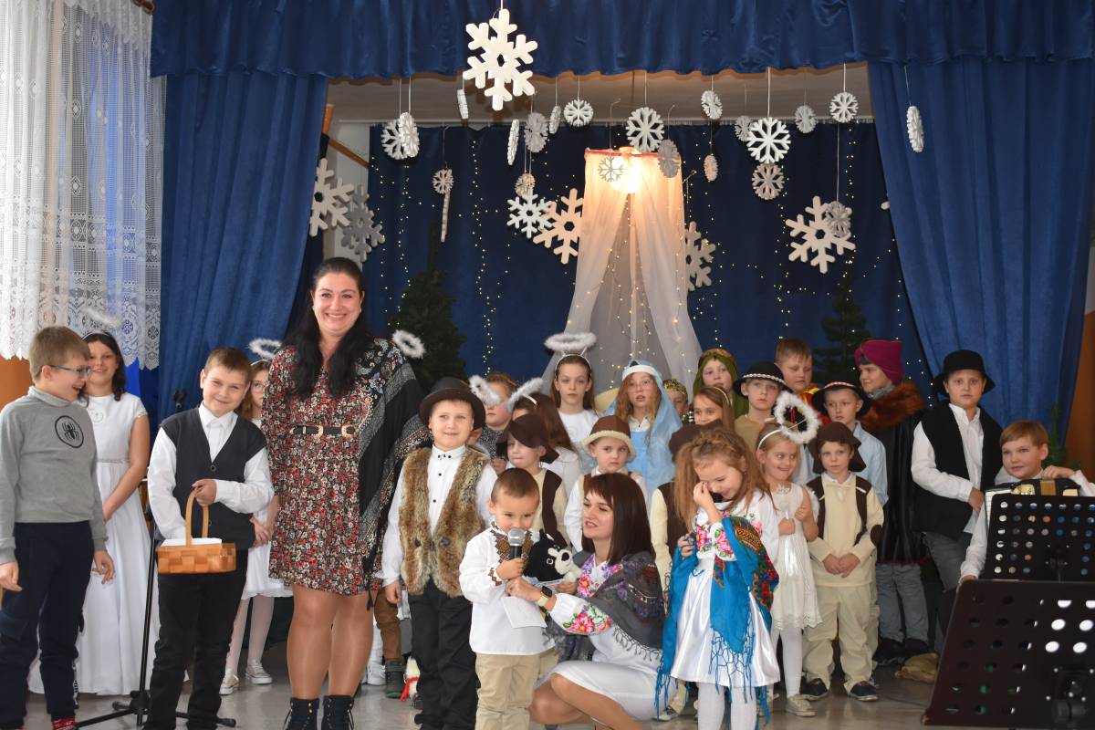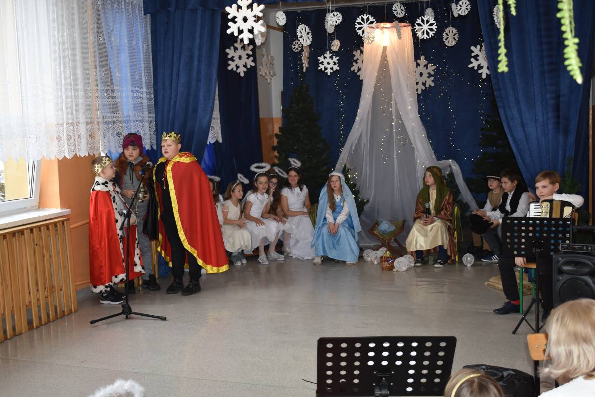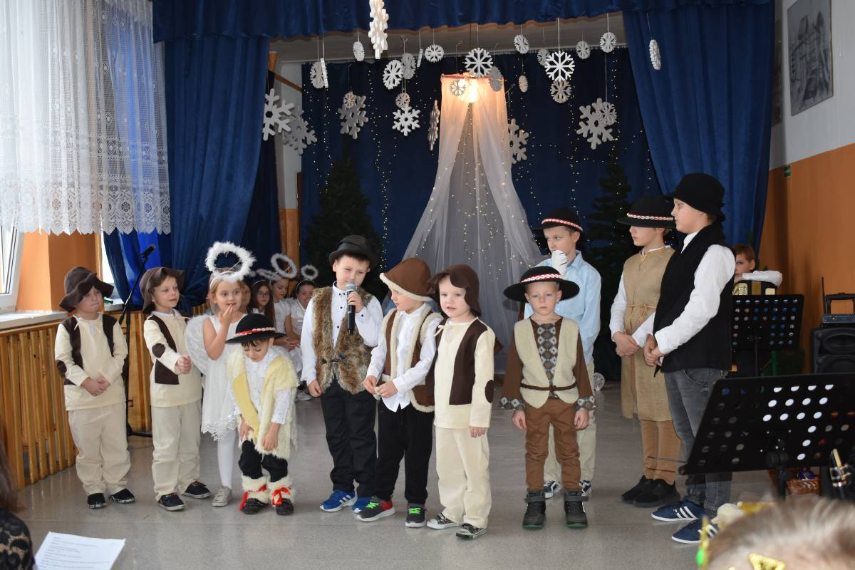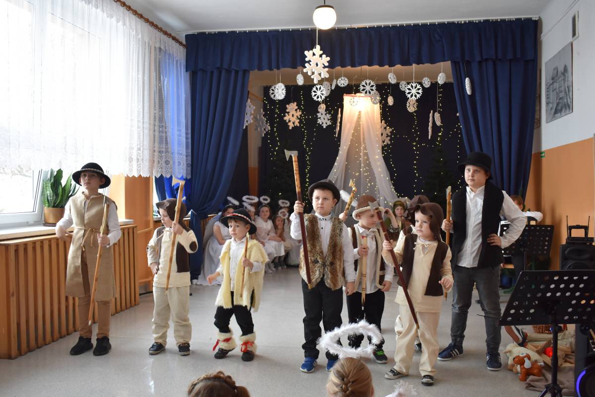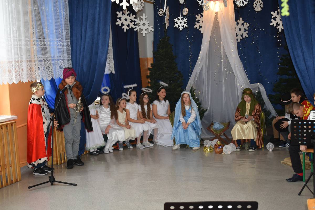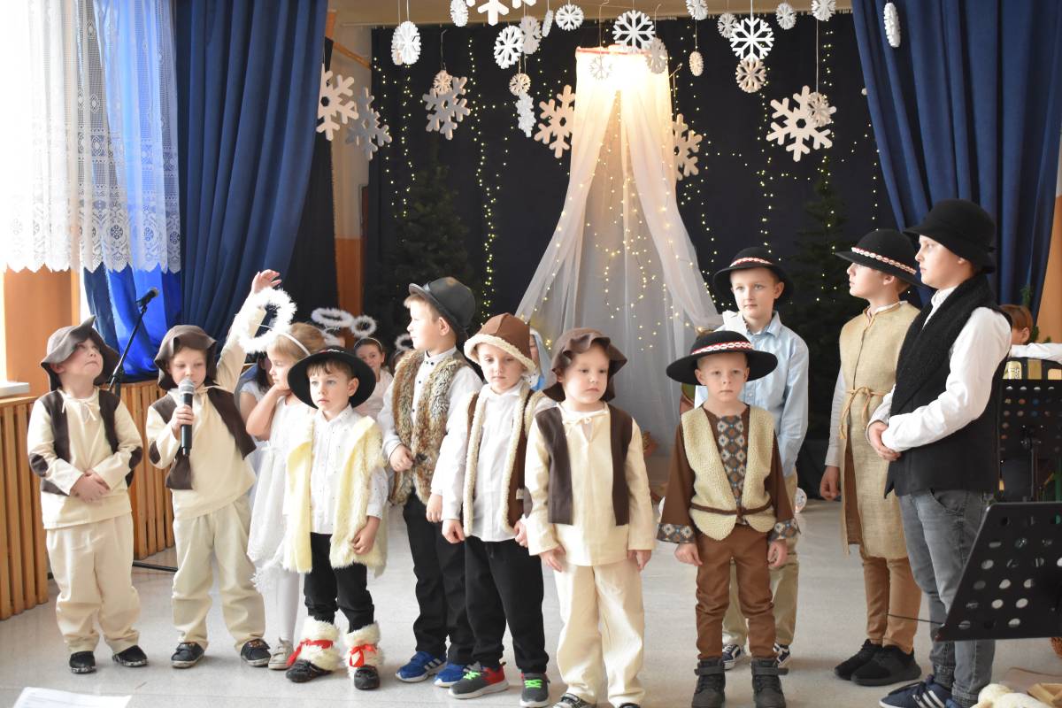 Przedstawienie było wyjątkowe. Mali aktorzy, we wspaniałych strojach prezentowali się doskonale. Dzieci przebrane w kostiumy postaci z Jasełek recytowały teksty i interpretowały w sposób aktorski swoje role. Sala wypełniona była aniołkami, które śpiewały kolędy, pastorałki i wspaniale recytowały przygotowane wierszyki. Do szopki przybyli też pastuszkowie oraz dzieci z różnych stron świata, które przyniosły Dzieciątku dary. Nasi artyści śpiewali pastorałki i kolędy, wykonywali układy taneczno-ruchowe. Całej tej uroczystości towarzyszyła przepiękna gama kolęd i pastorałek różnych wykonawców. Na koniec dzieci złożyły życzenia Bożonarodzeniowe.