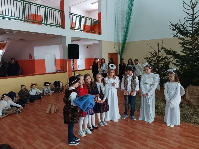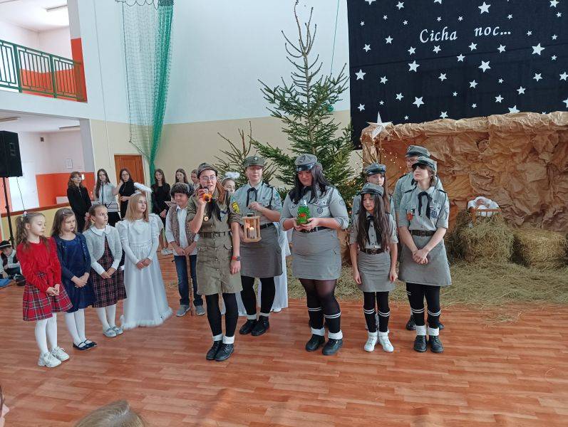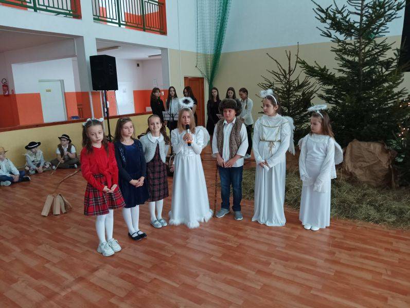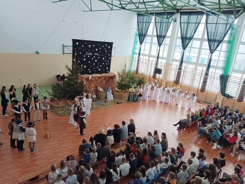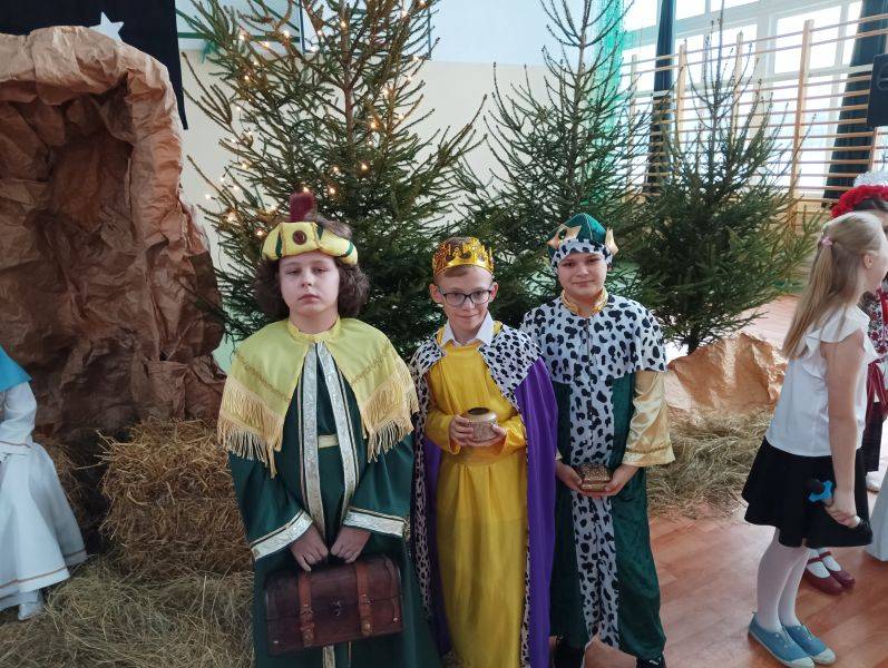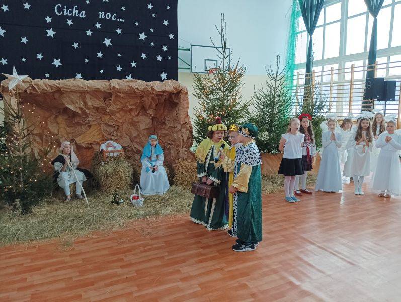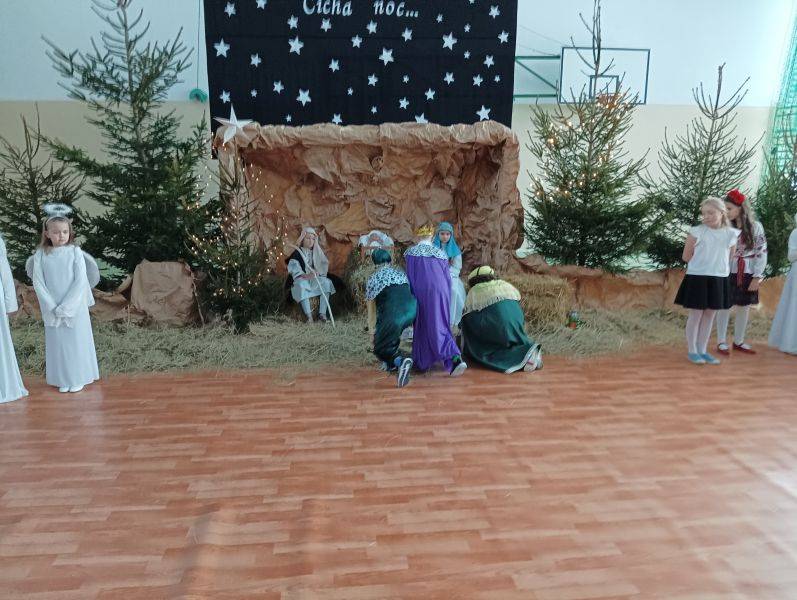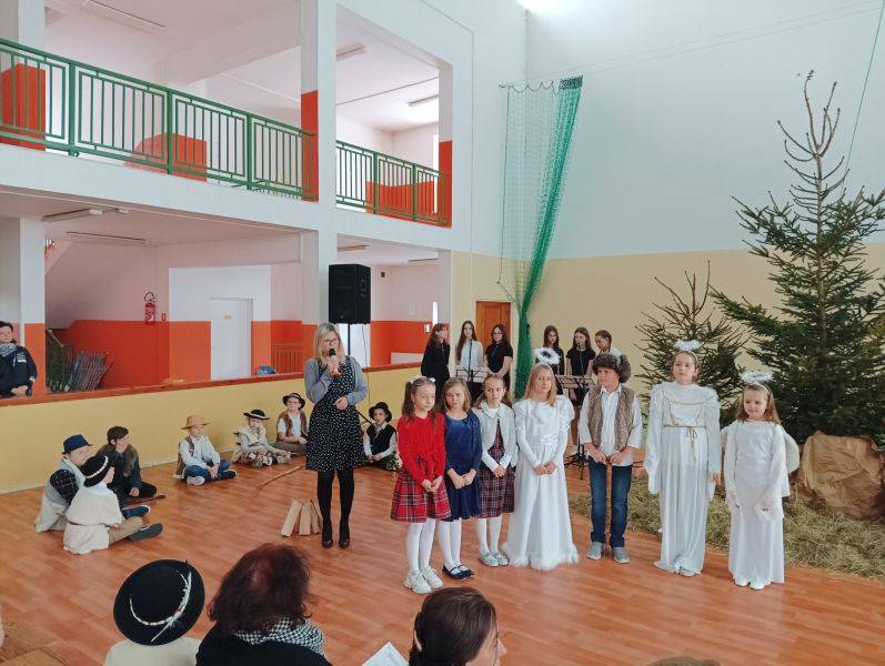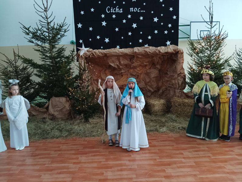 To jeden z piękniejszych fragmentów Jasełek, które przygotowane zostały w Szkole Podstawowej w Gorzkowicach. Wśród wigilijnych potraw, zapachu świerkowej choinki i udekorowanym stole, zasiądźmy wszyscy razem, wdzięczni za obecność najbliższych. Niech smutki i troski zastąpi radość z oczekiwania na narodziny Jezusa Chrystusa. W ten magiczny czas wprowadzili nas uczniowie najstarszych klas przedziału I – III, którzy z pełną powagą odwzorowali najważniejszy moment dla ludzkości – przyjście na świat małego Dzieciątka, które zbawia świat od ponad dwóch tysiącleci. W uroczystości wzięli udział zaproszeni goście: Sekretarz Gminy Gorzkowice pani Iwona Kadir, Komendant Komisariatu Policji w Gorzkowicach pan Stanisław Kiełbik, Dyrektor Przedszkola Samorządowego pani Magdalena Rutka, Kierownik Samorządowego Klubu Dziecięcego pani Agnieszka Sobczyk, Proboszcz Parafii Gorzkowice ksiądz Ryszard Bryłka, Dyrektor Biblioteki Publicznej i Domu Kultury pani Małgorzata Gadecka, Zastępca Przewodniczącego Rady Rodziców pani Wioletta Alama oraz Sekretarz Rady Rodziców pani Anna Gawińska. Za przygotowanie przedstawienia serdeczne podziękowania ślemy wychowawcom klas trzecich: pani Annie Stankiewicz, pani Annie Szydziak, pani Lidii Stanios oraz pani Renacie Ziembie i pani Izabeli Jachimczak.